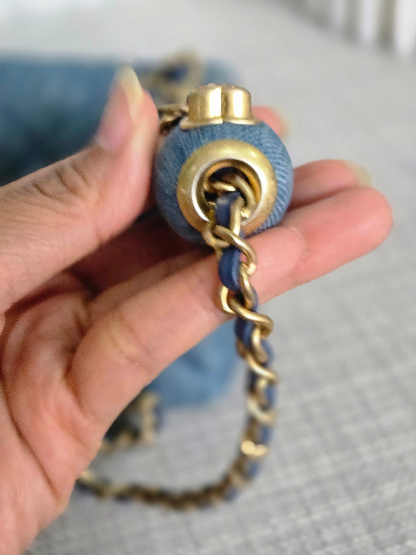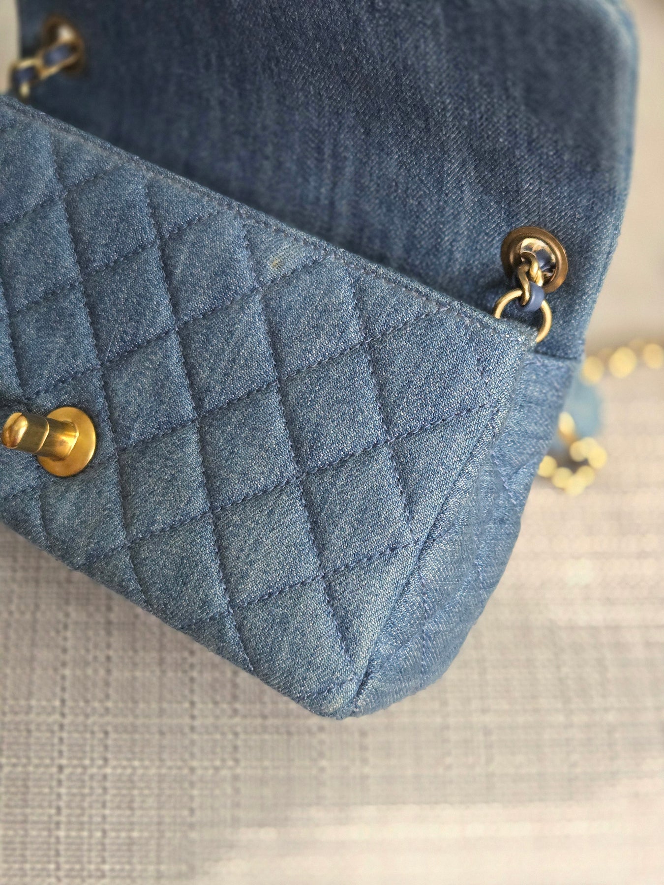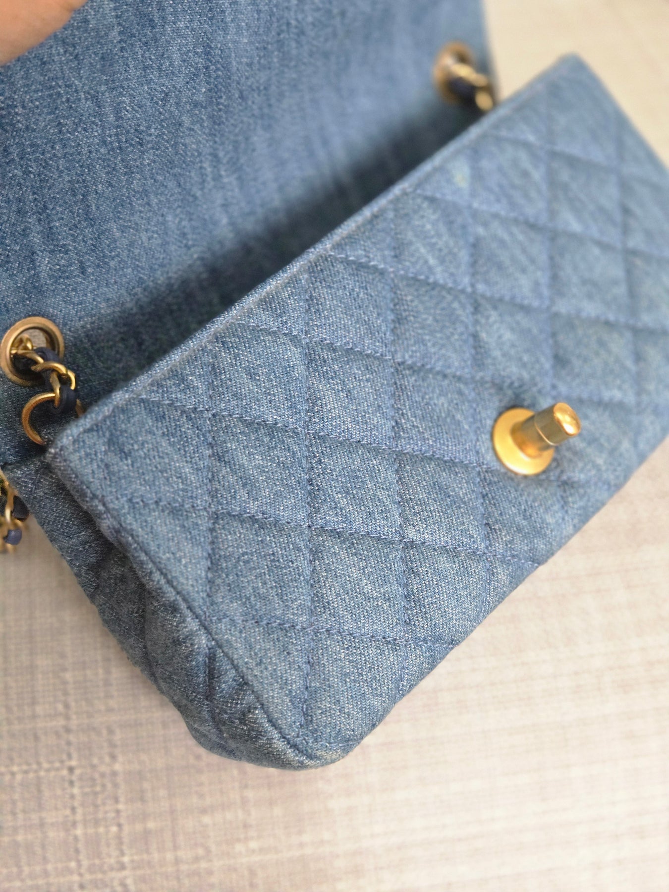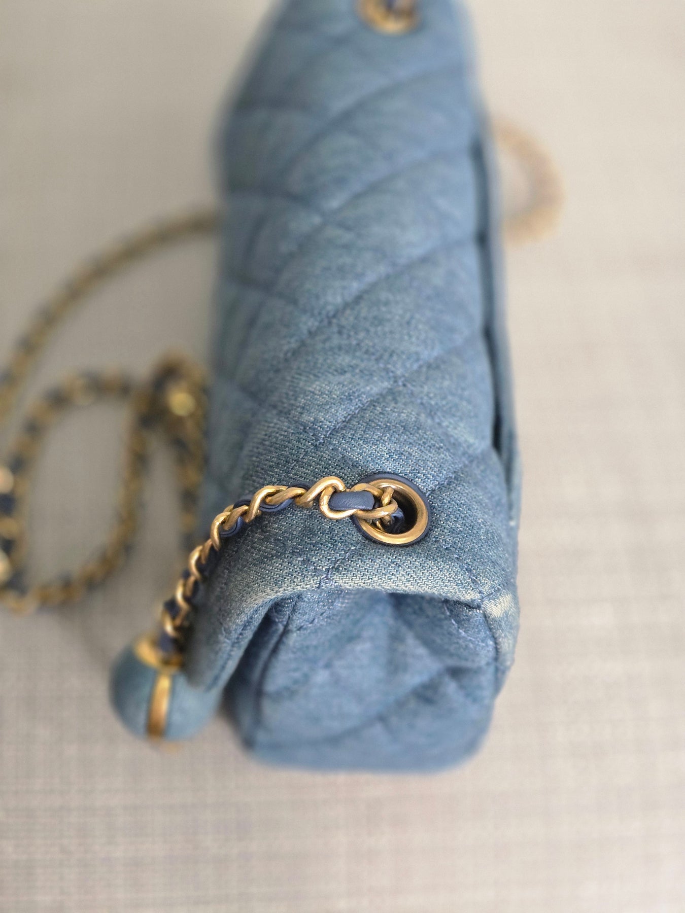 CHANEL 23C 2022/2023 Cruise collection Denim Pearl Crush Adjustable Chain Mini Rectangular Flap Bag with Aged GHW
