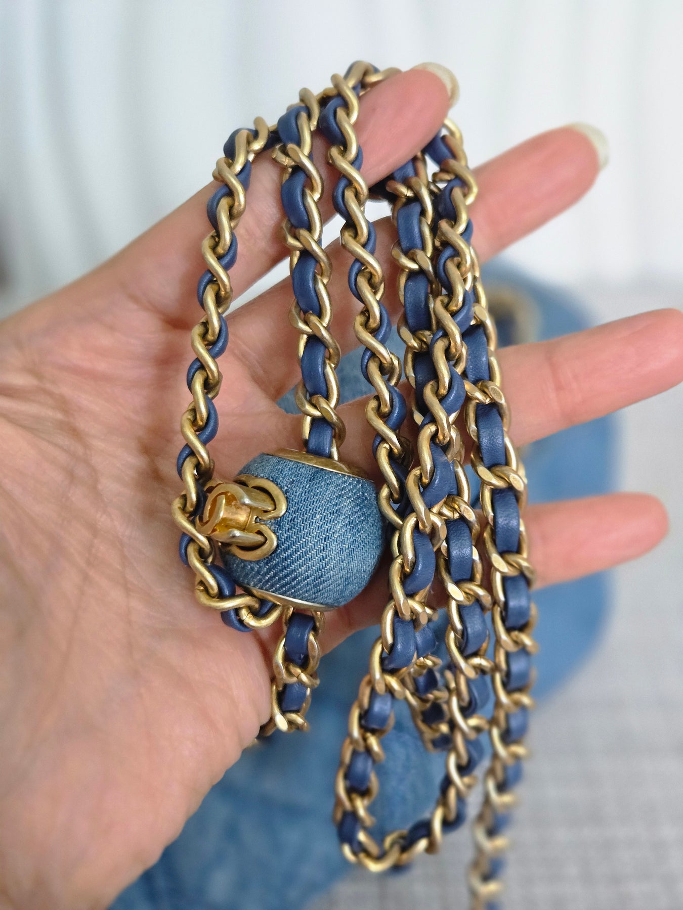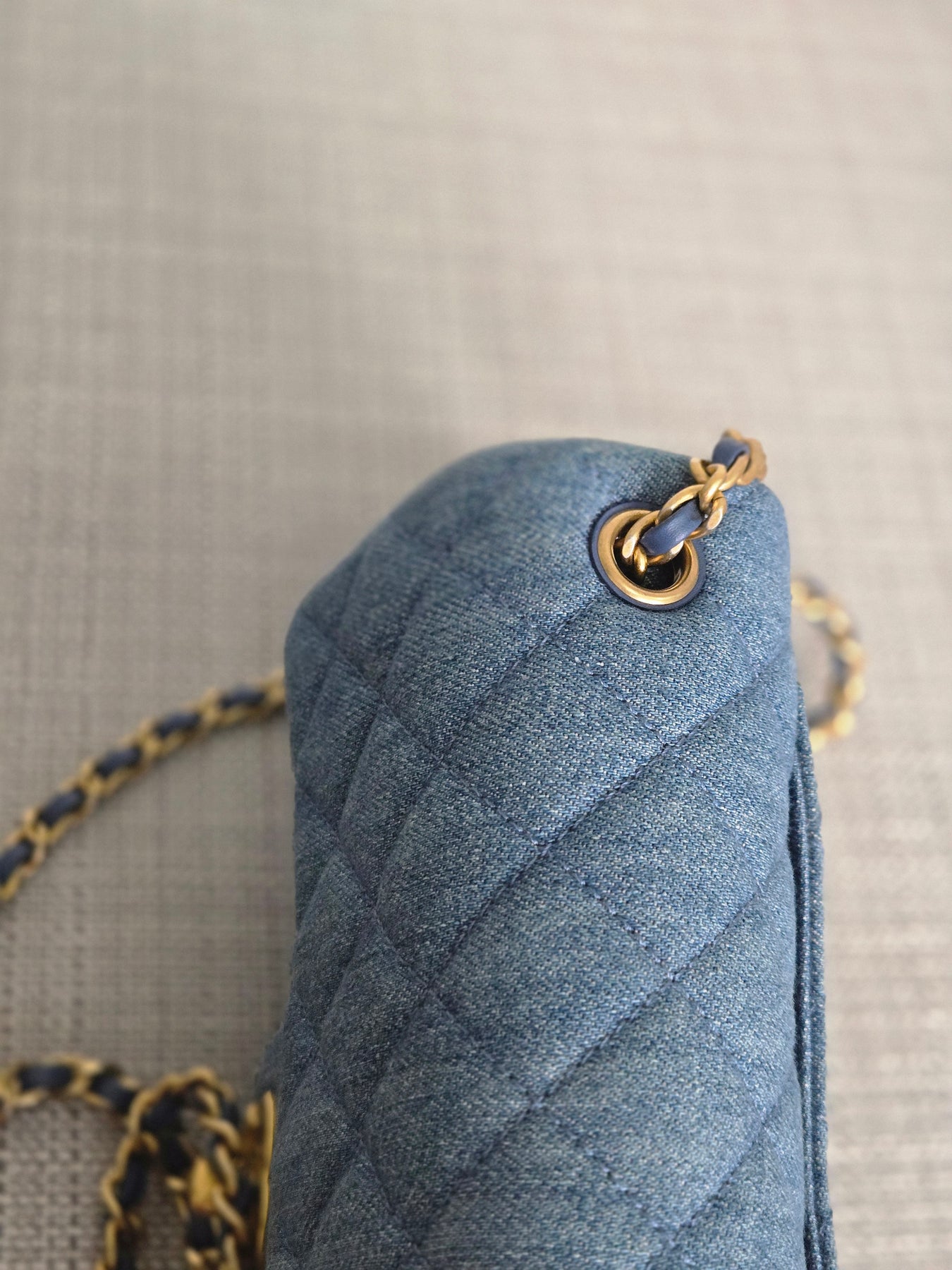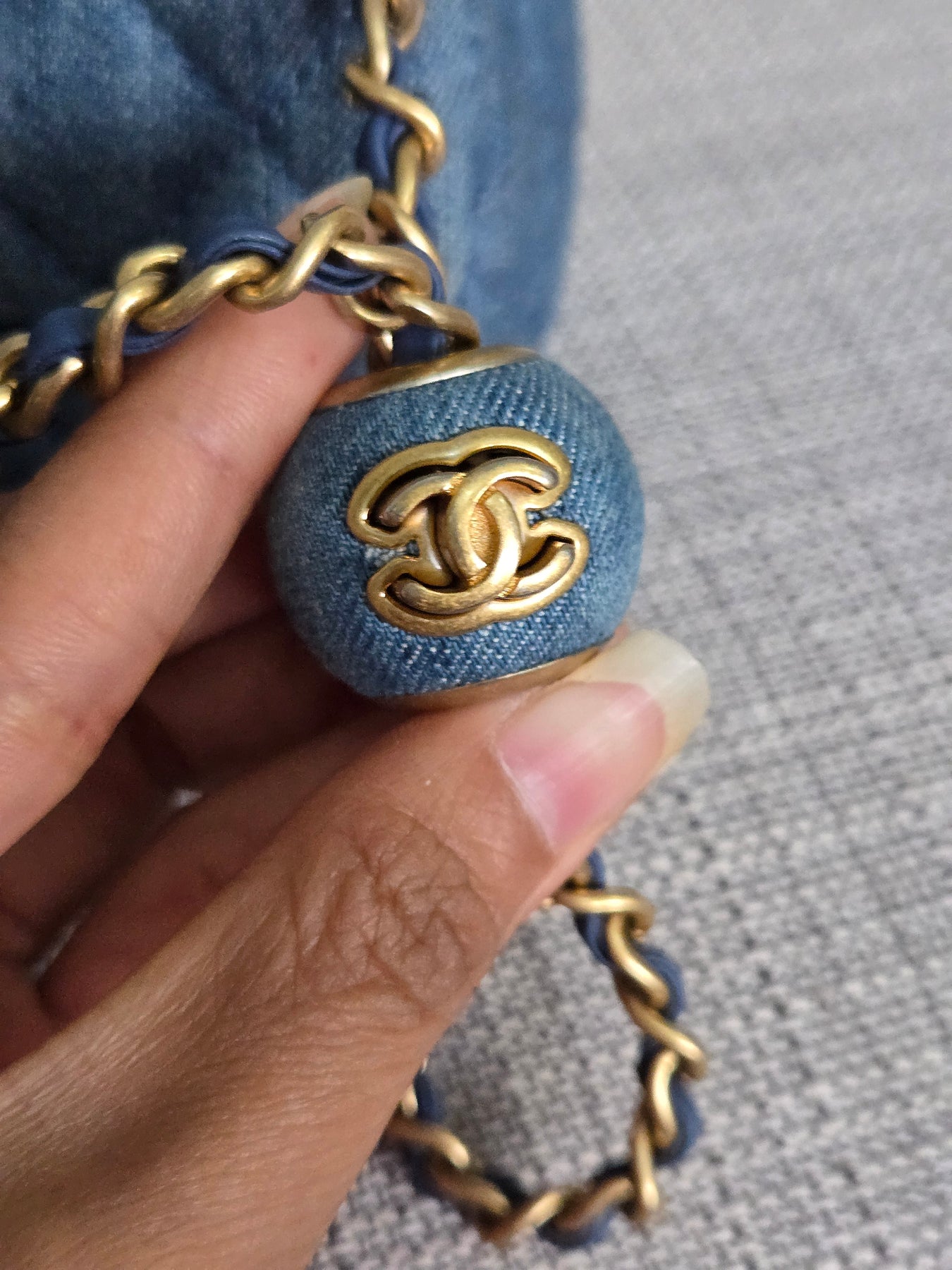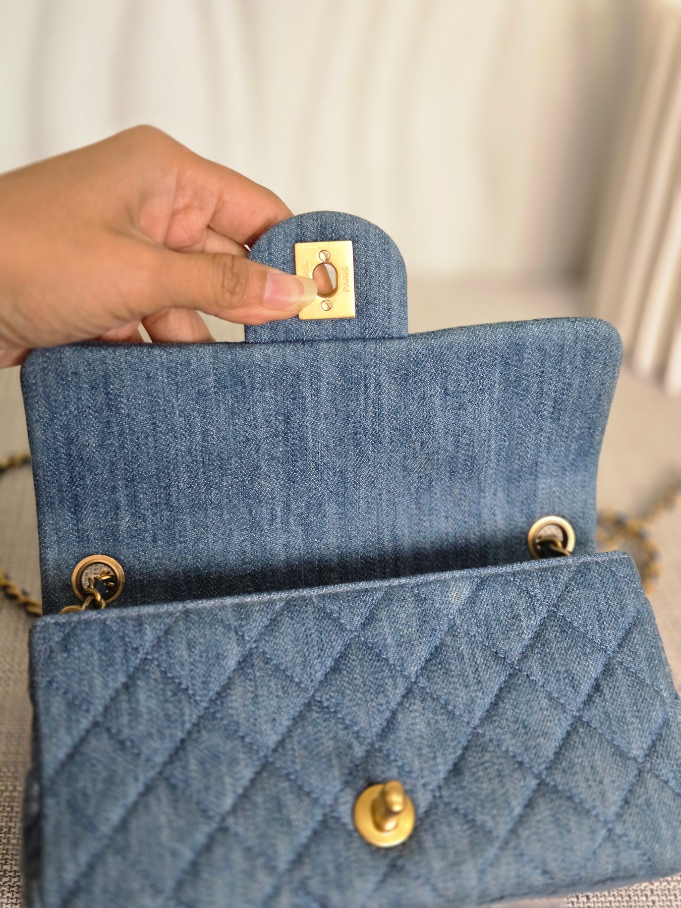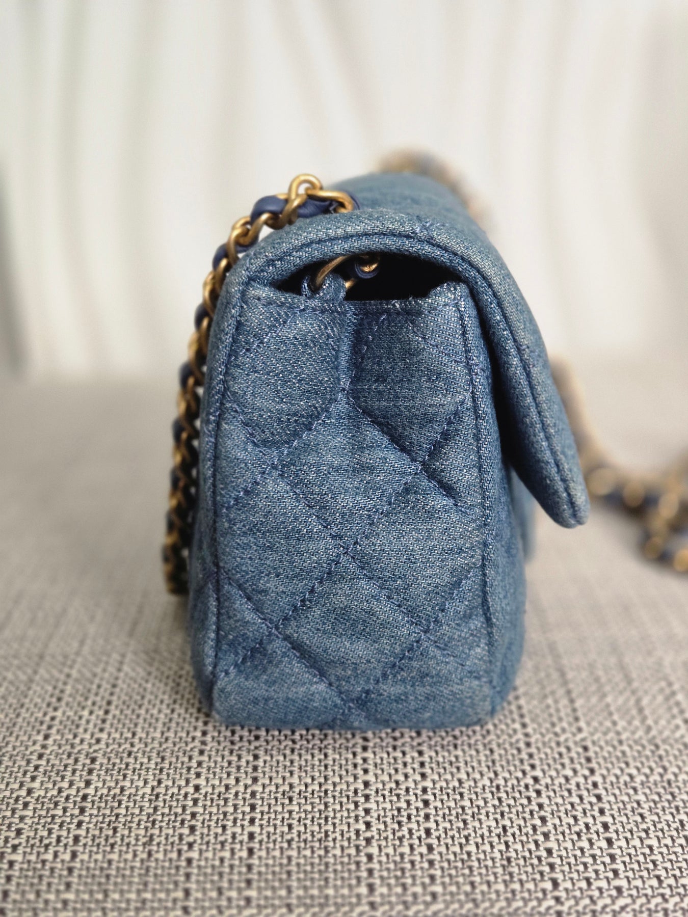 CHANEL 23C 2022/2023 Cruise collection Denim Pearl Crush Adjustable Chain Mini Rectangular Flap Bag with Aged GHW