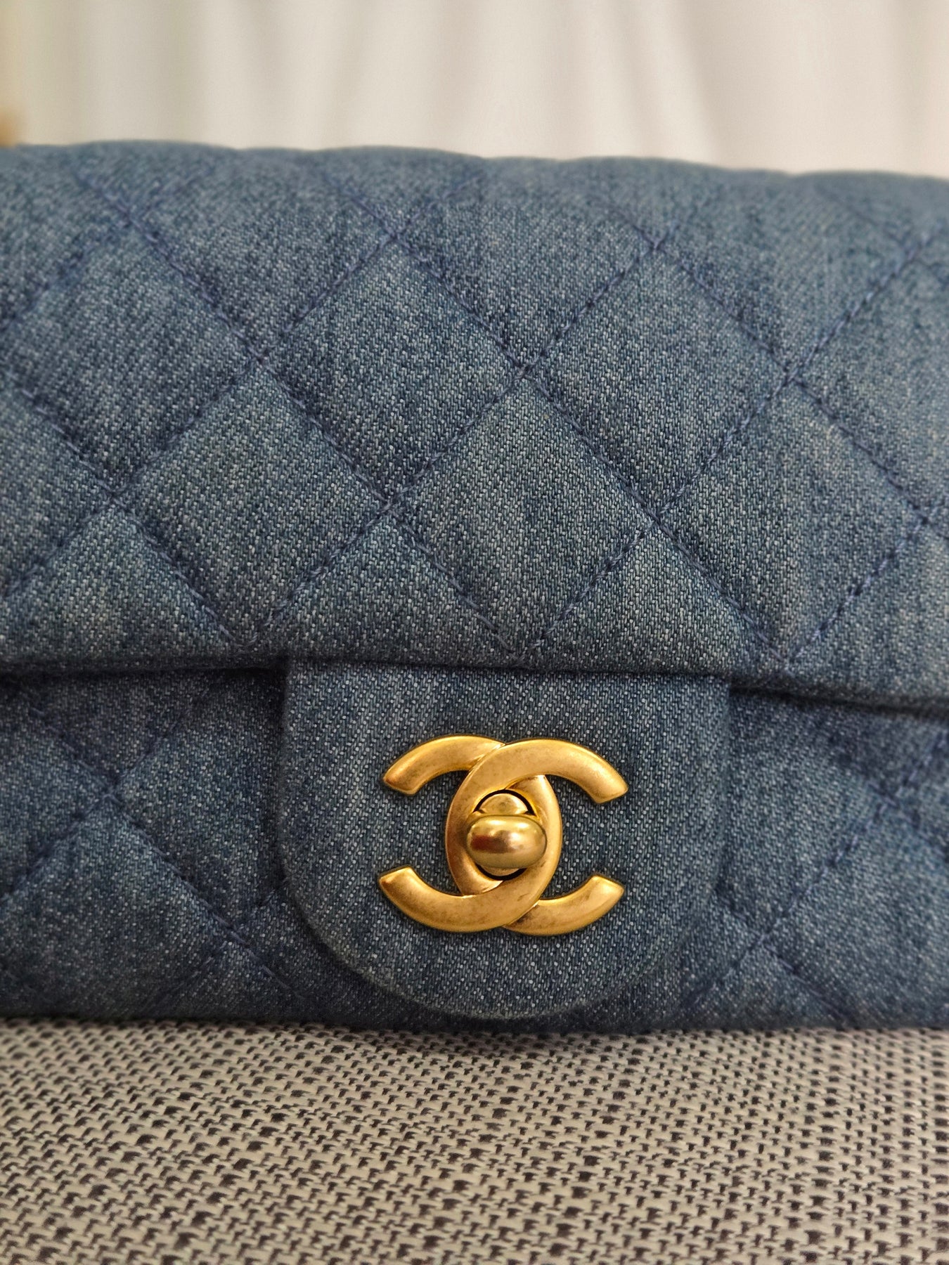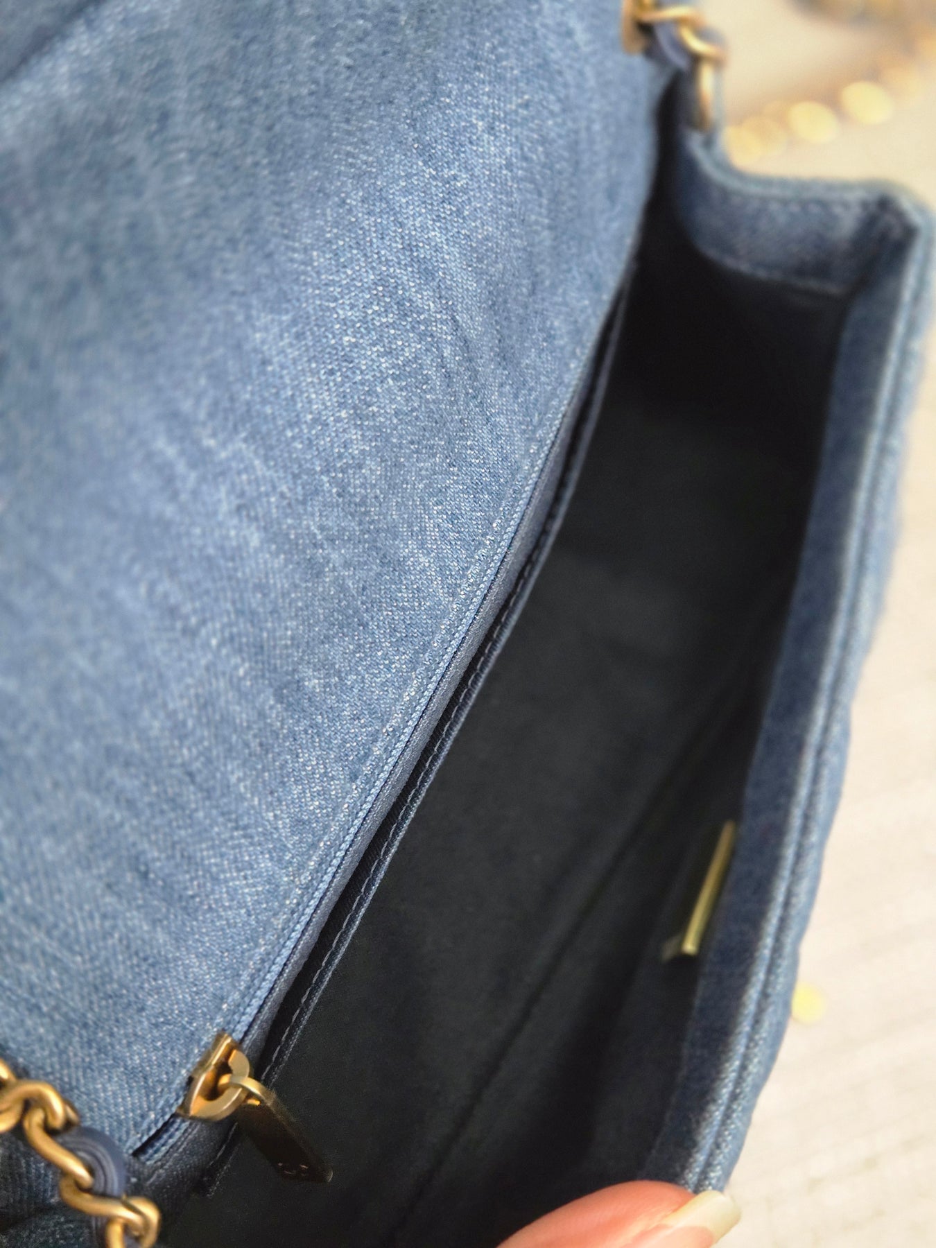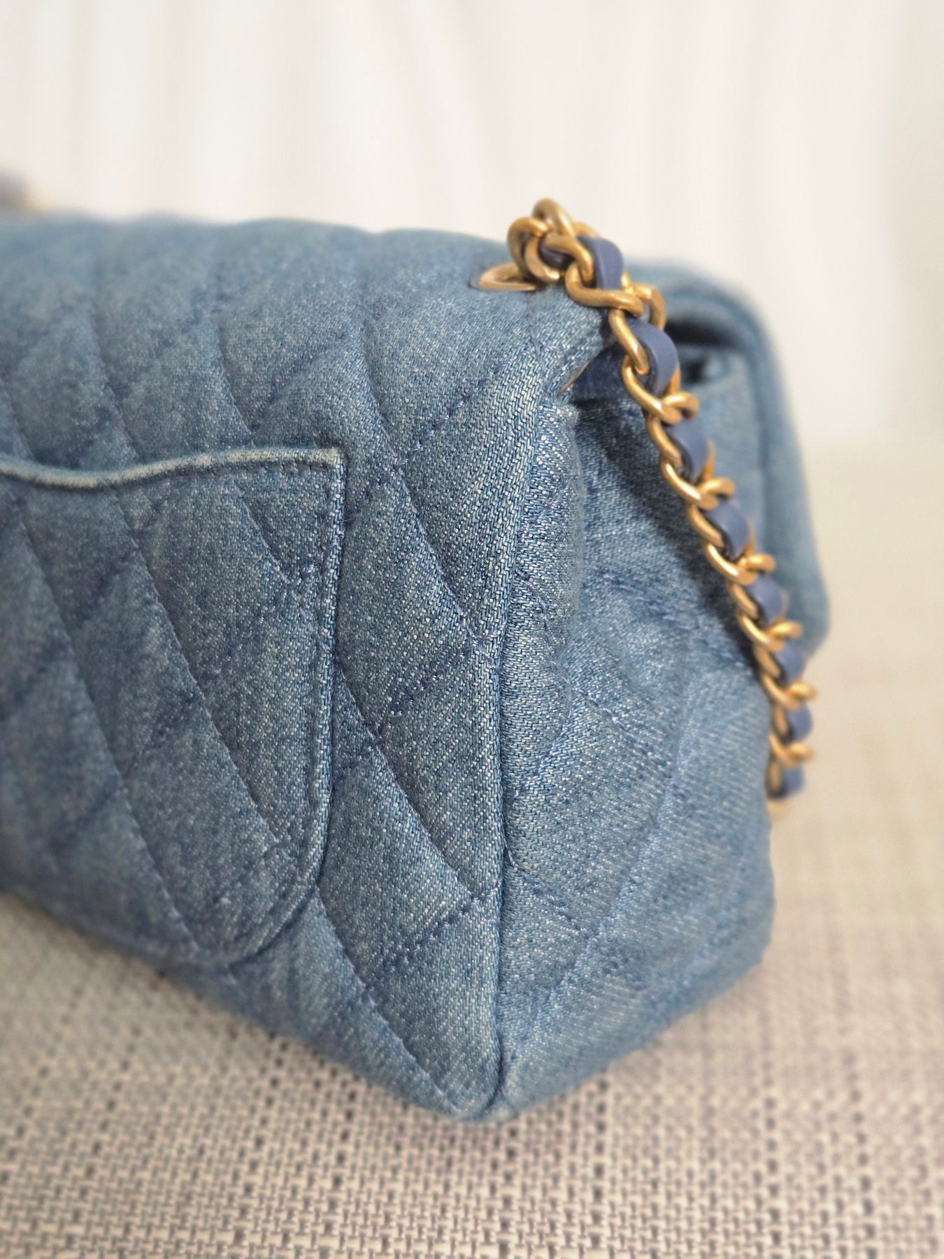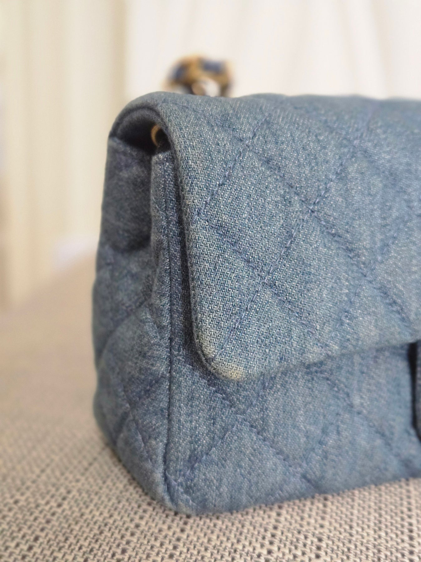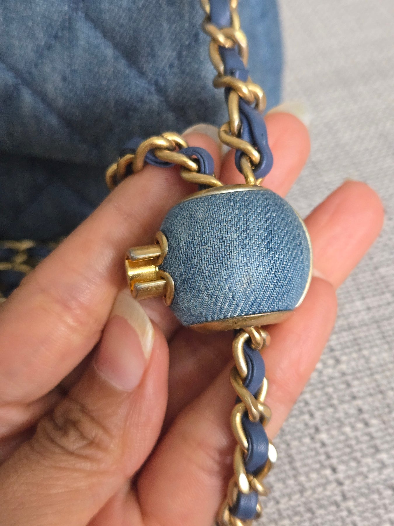 CHANEL 23C 2022/2023 Cruise collection Denim Pearl Crush Adjustable Chain Mini Rectangular Flap Bag with Aged GHW