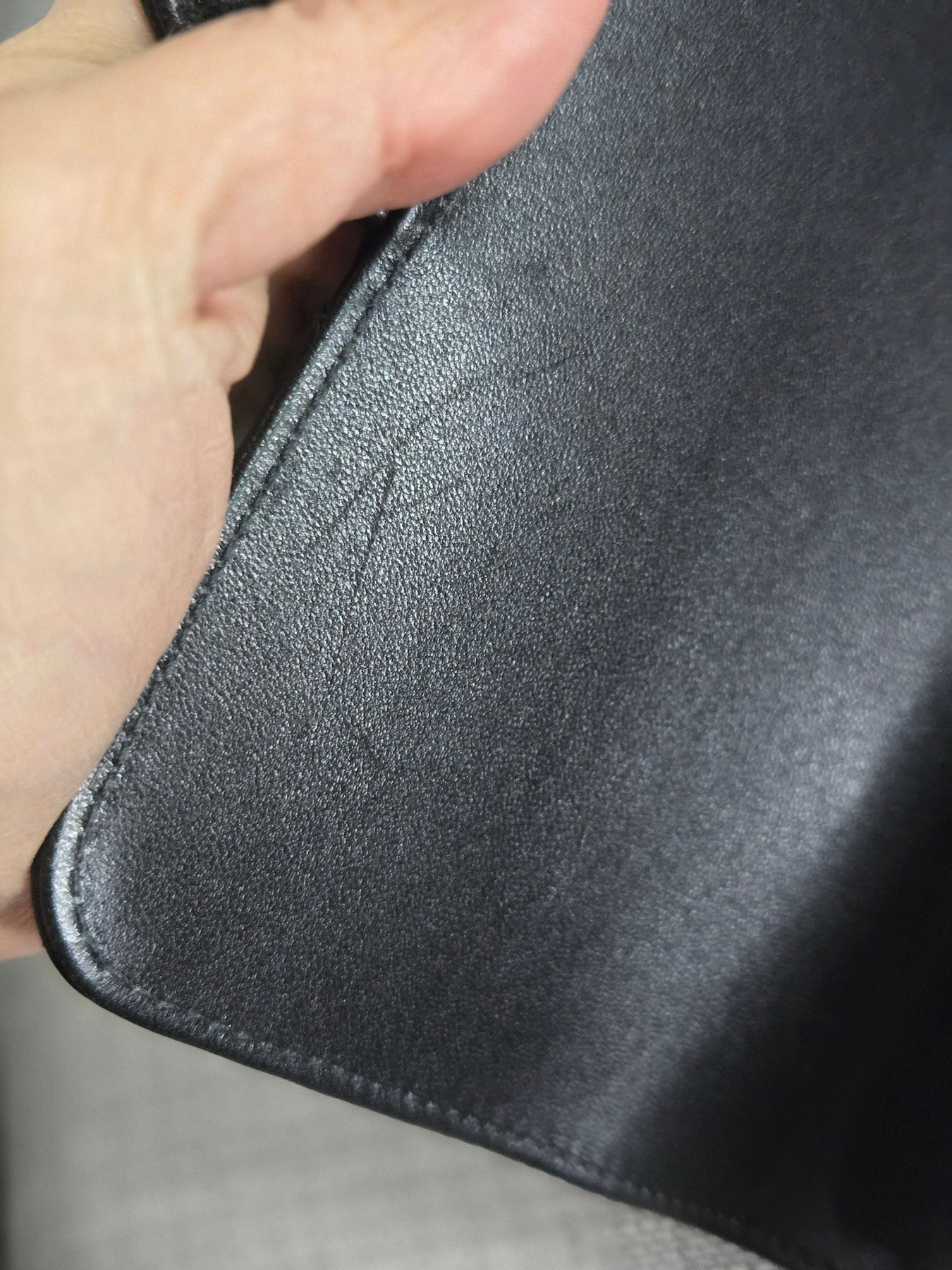 Pre owned excellent condition. Mild superficial nail scratches inside the flap.