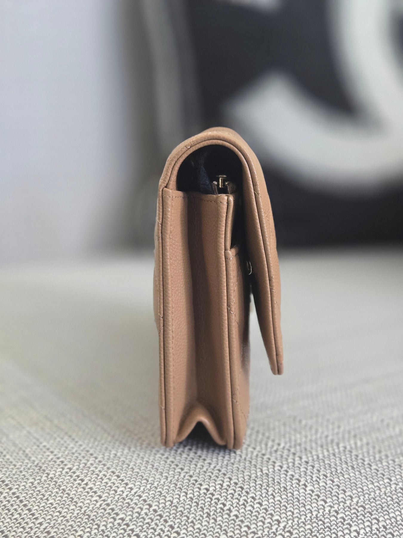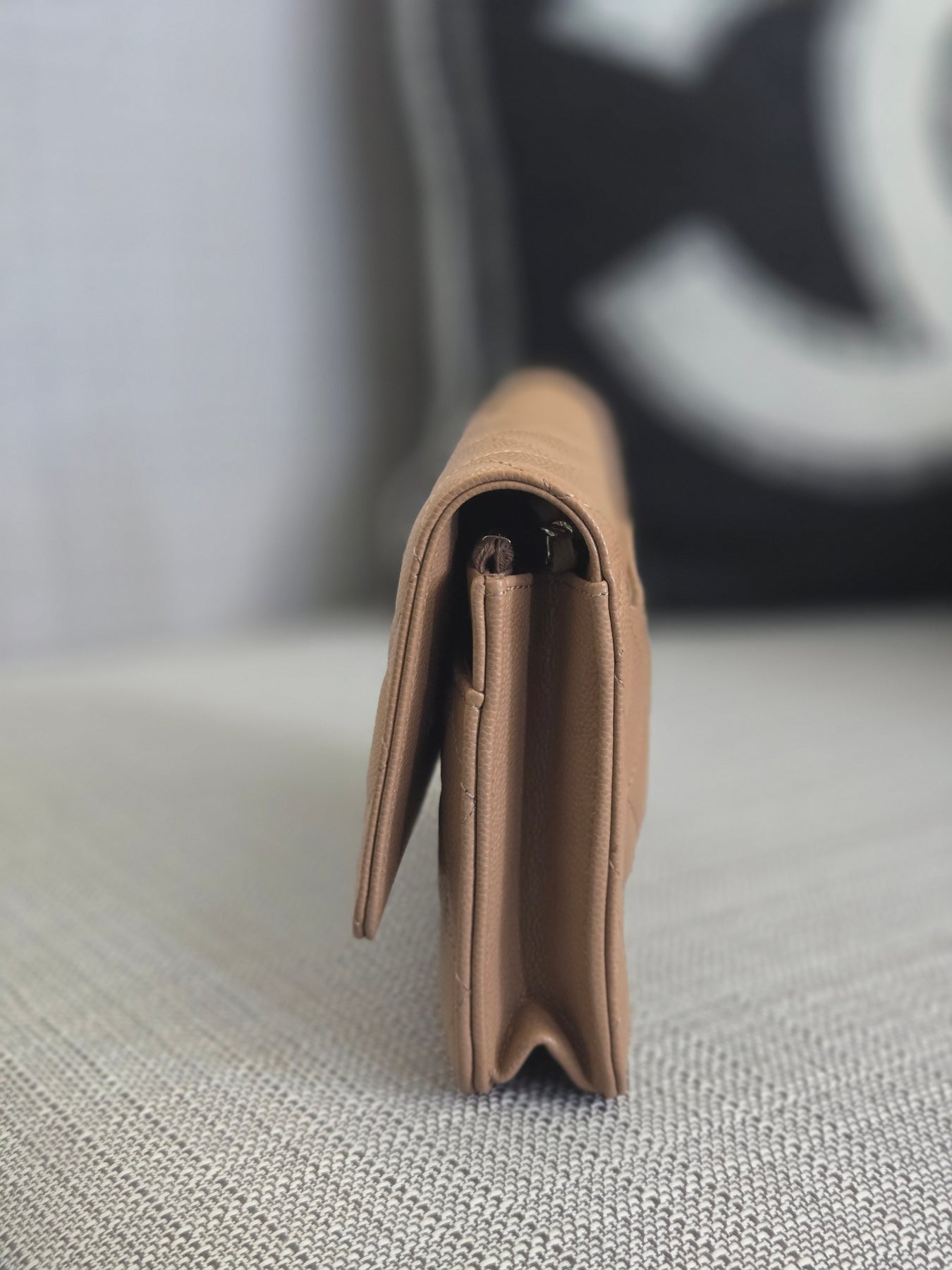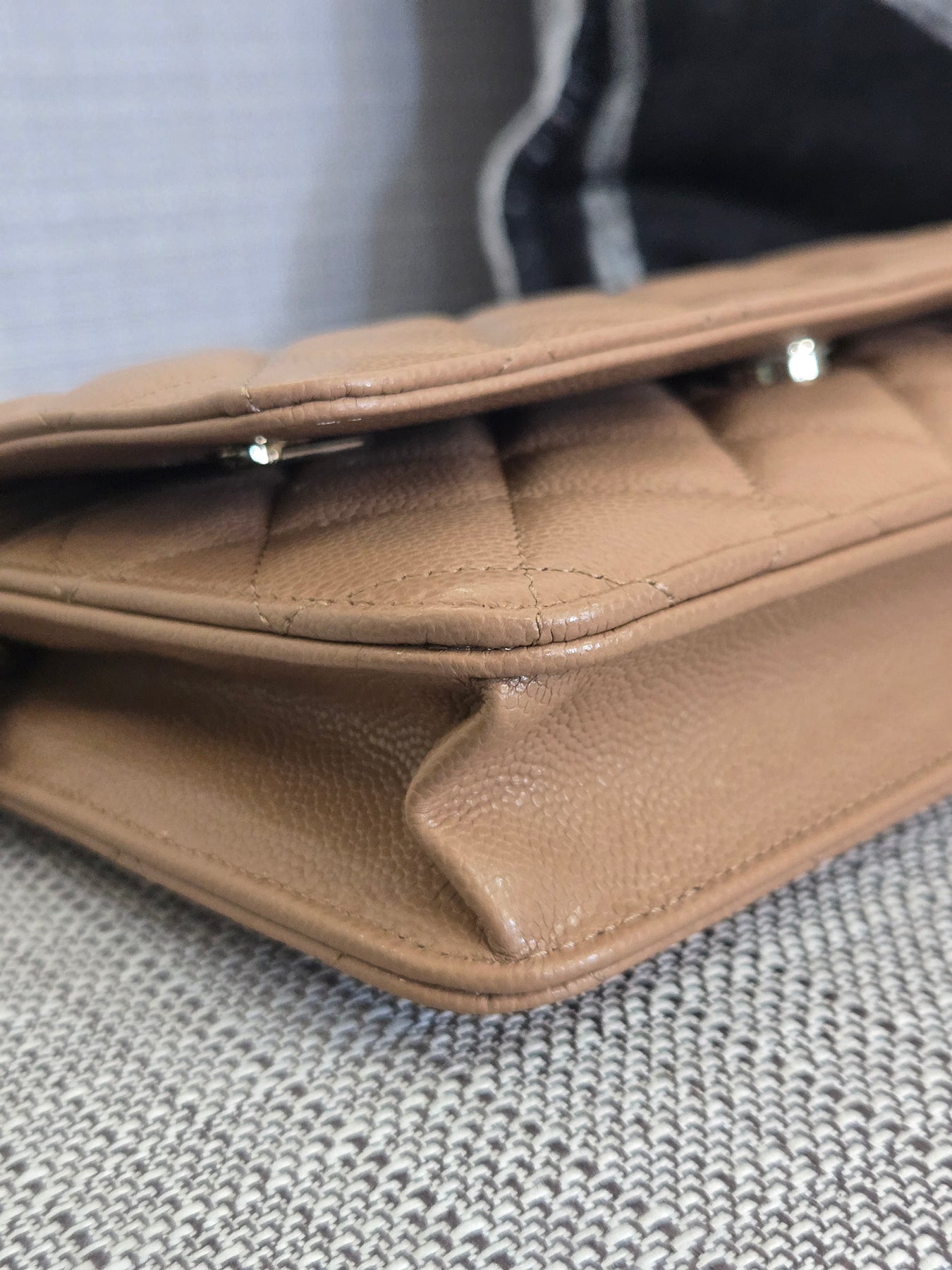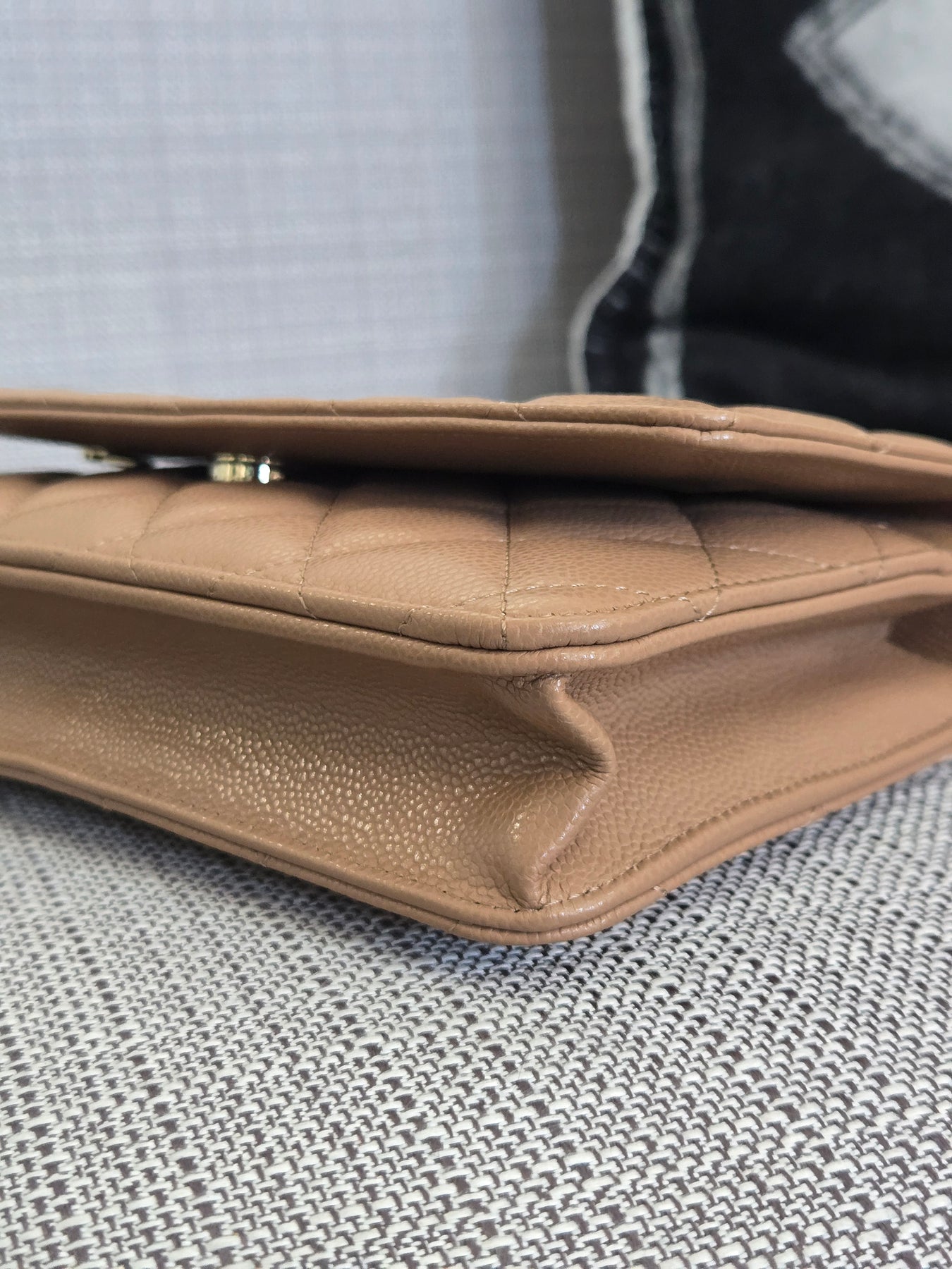 Chanel Dark Beige Caviar Champagne GHW Classic Wallet on Chain (WOC) 2023