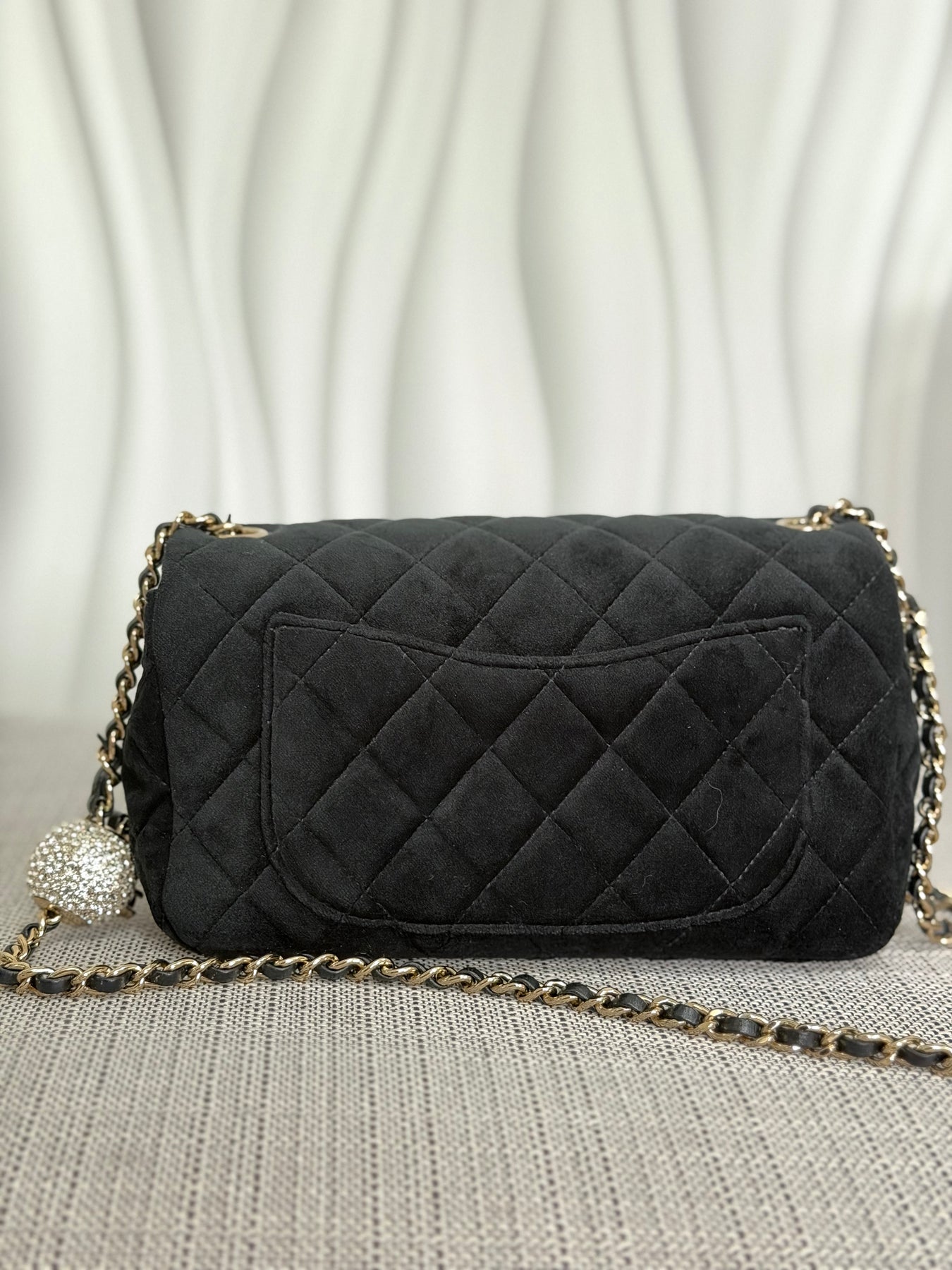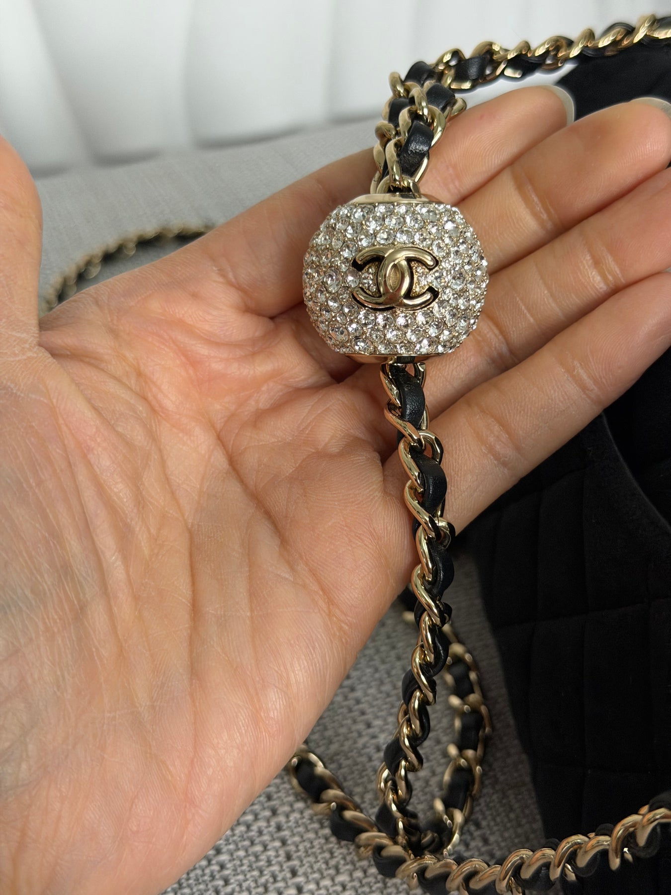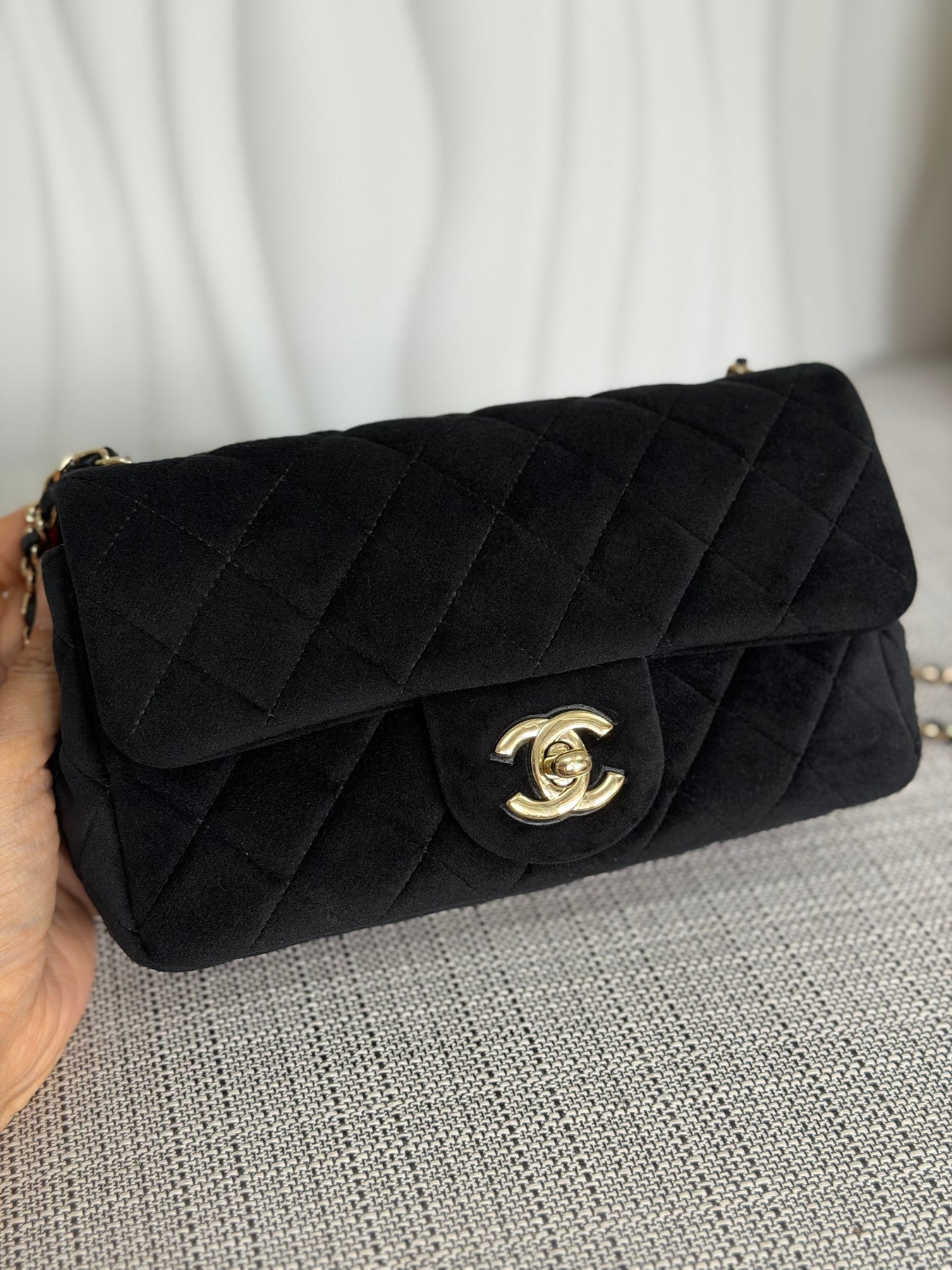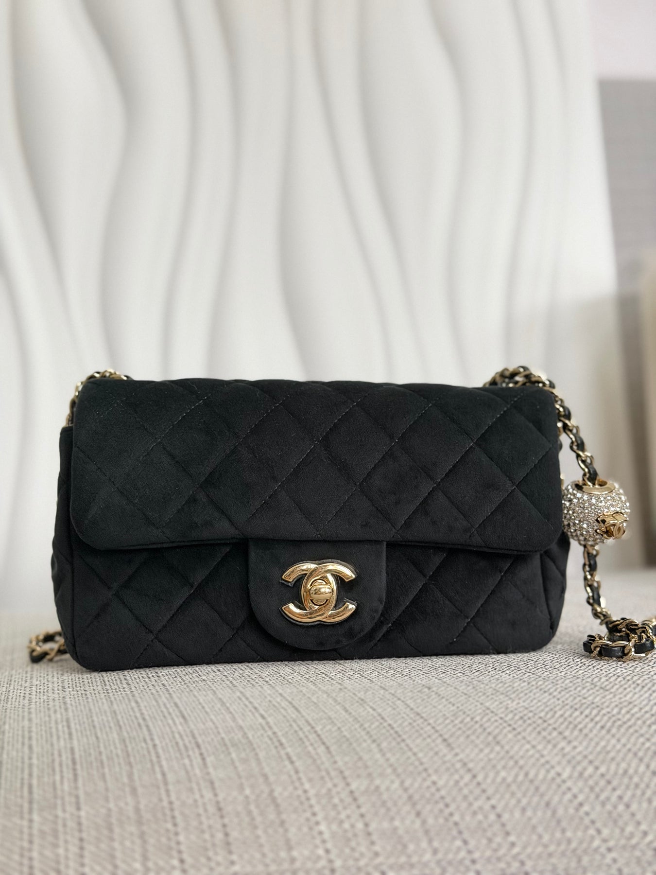 CHANEL series 30 2020 20K collection Black Velvet Crystal Pearl Crush Adjustable Strap LGHW Mini Rectangular Flap Bag