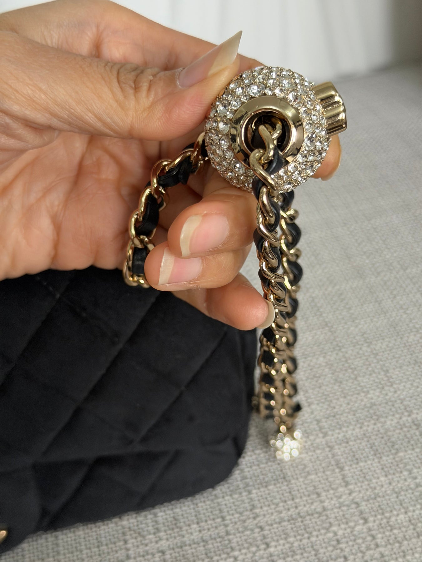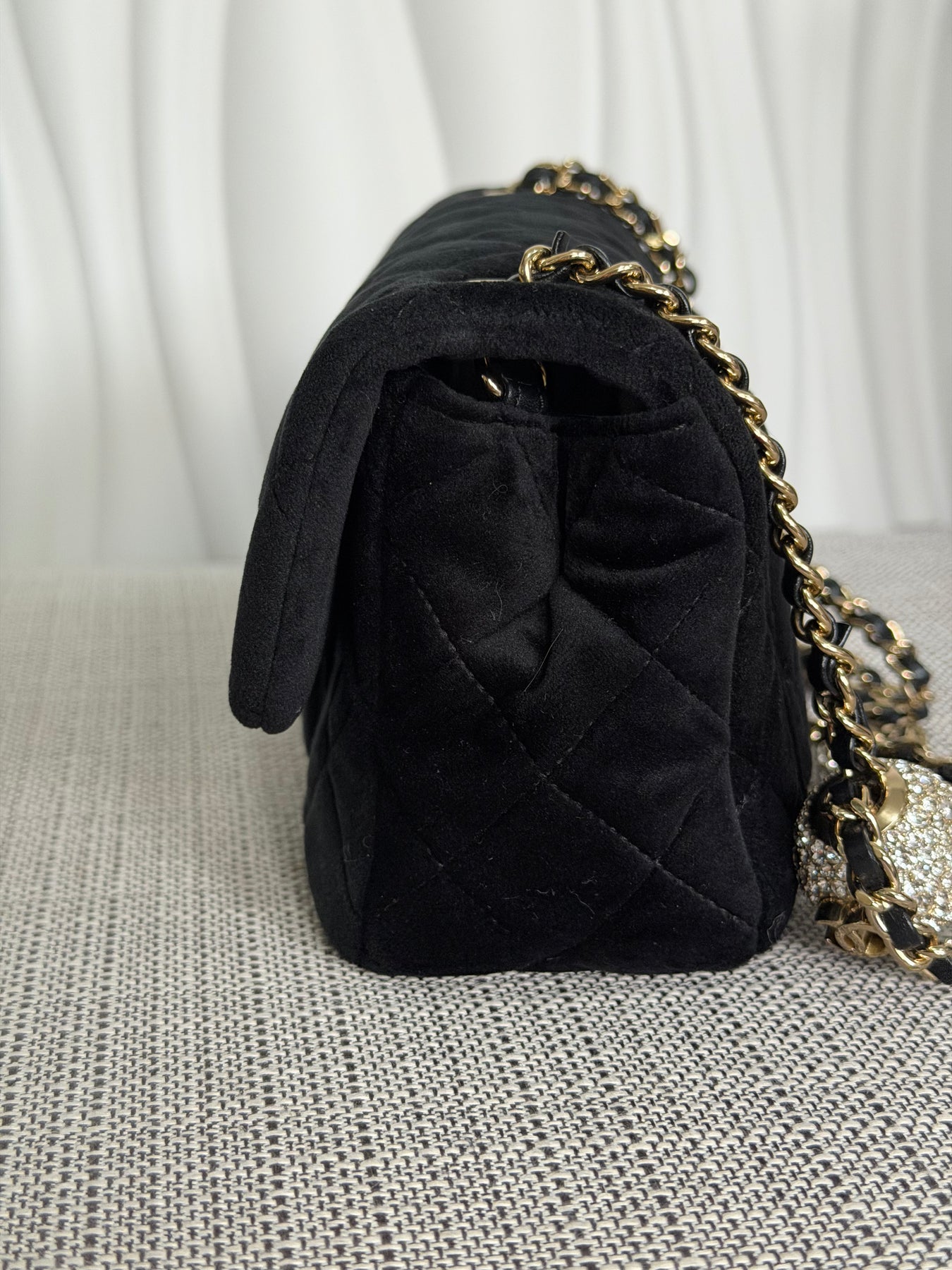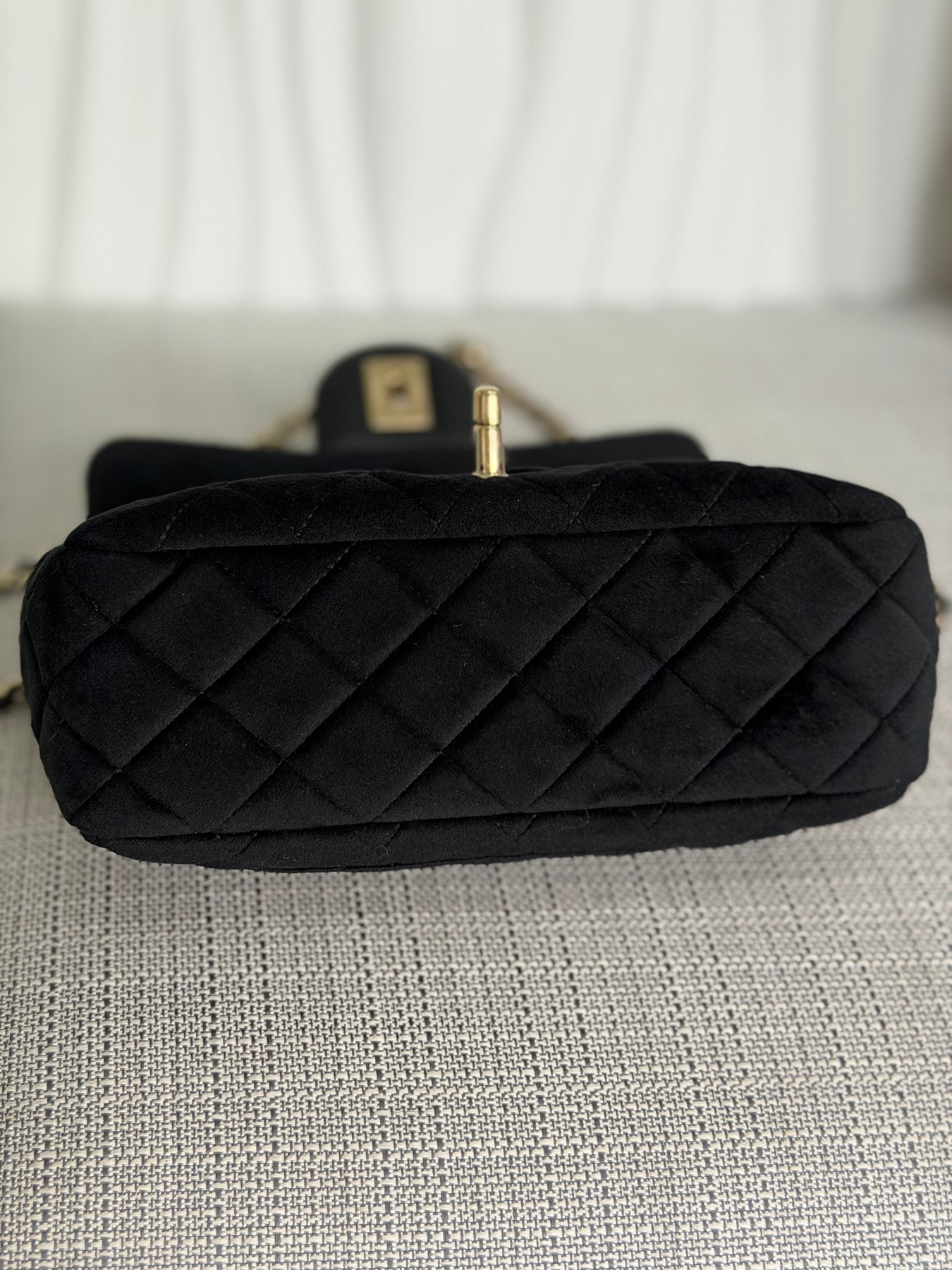 CHANEL series 30 2020 20K collection Black Velvet Crystal Pearl Crush Adjustable Strap LGHW Mini Rectangular Flap Bag