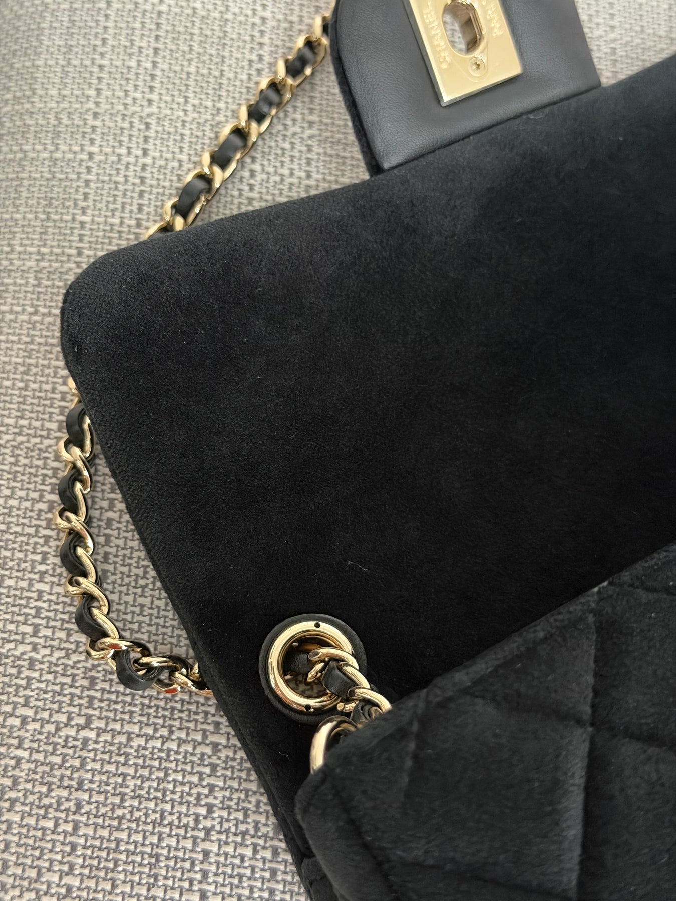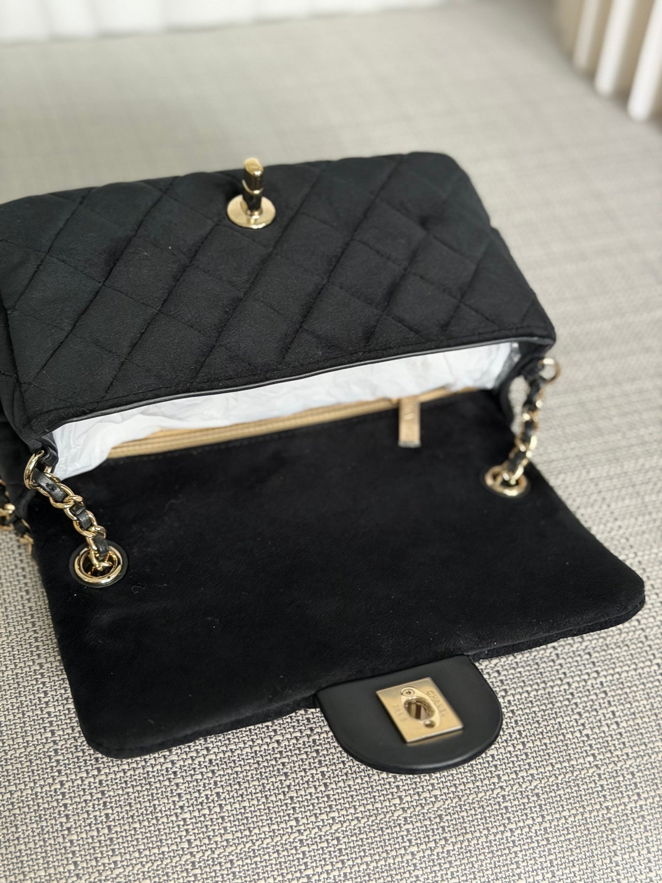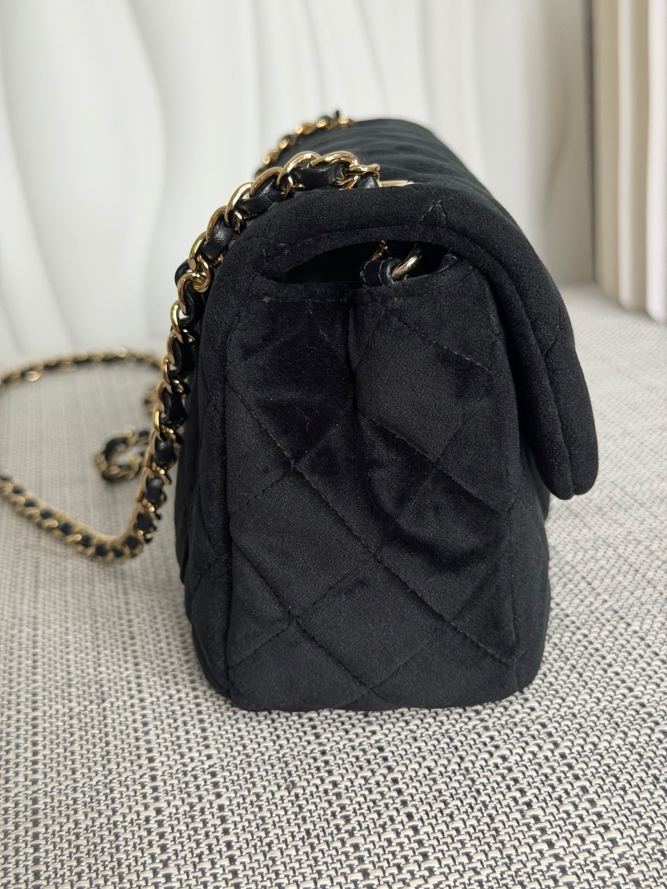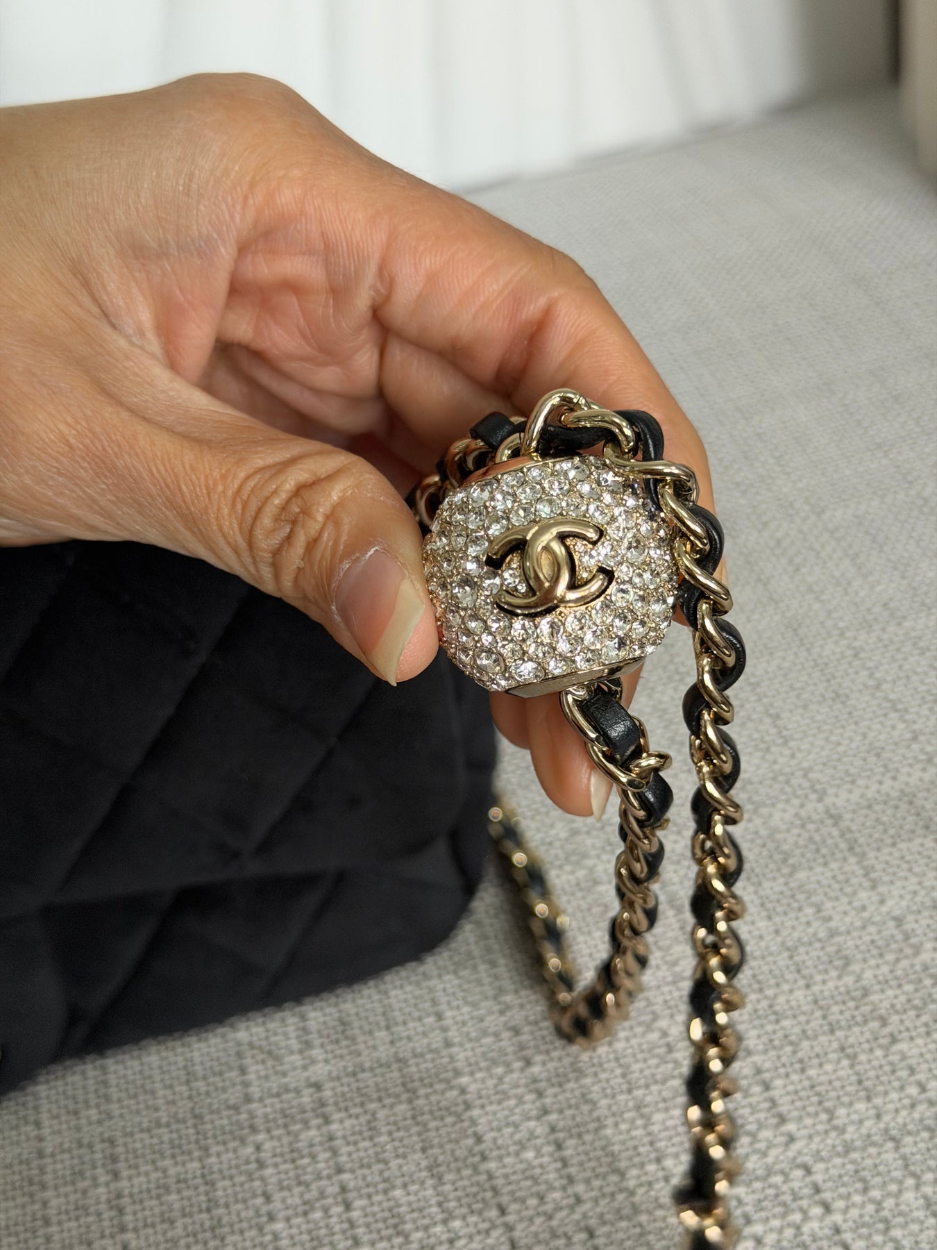CHANEL series 30 2020 20K collection Black Velvet Crystal Pearl Crush Adjustable Strap LGHW Mini Rectangular Flap Bag