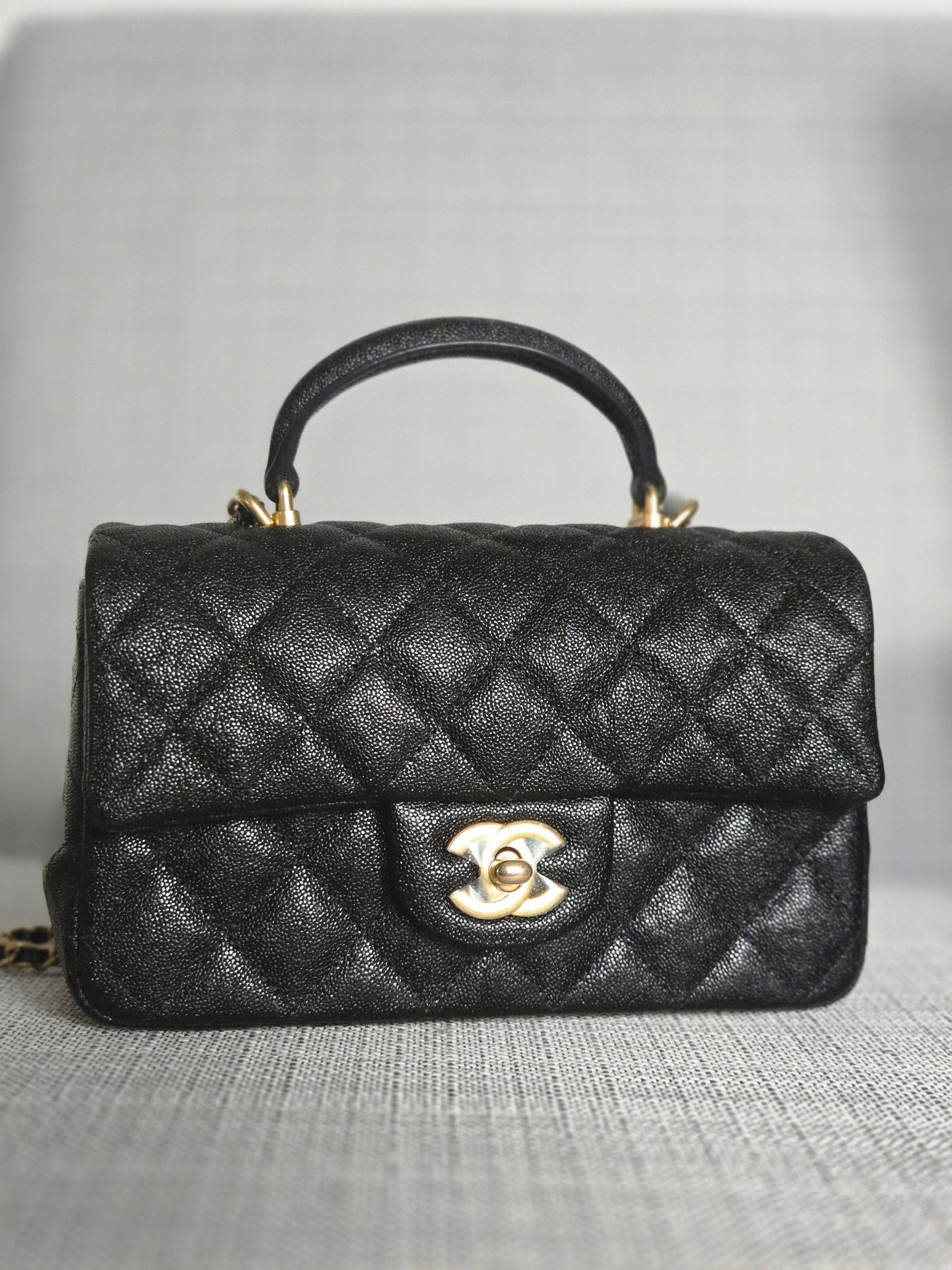 Chanel series 31 21S Collection Black Caviar Aged GHW Mini Rectangular Flap Bag with Top Handle