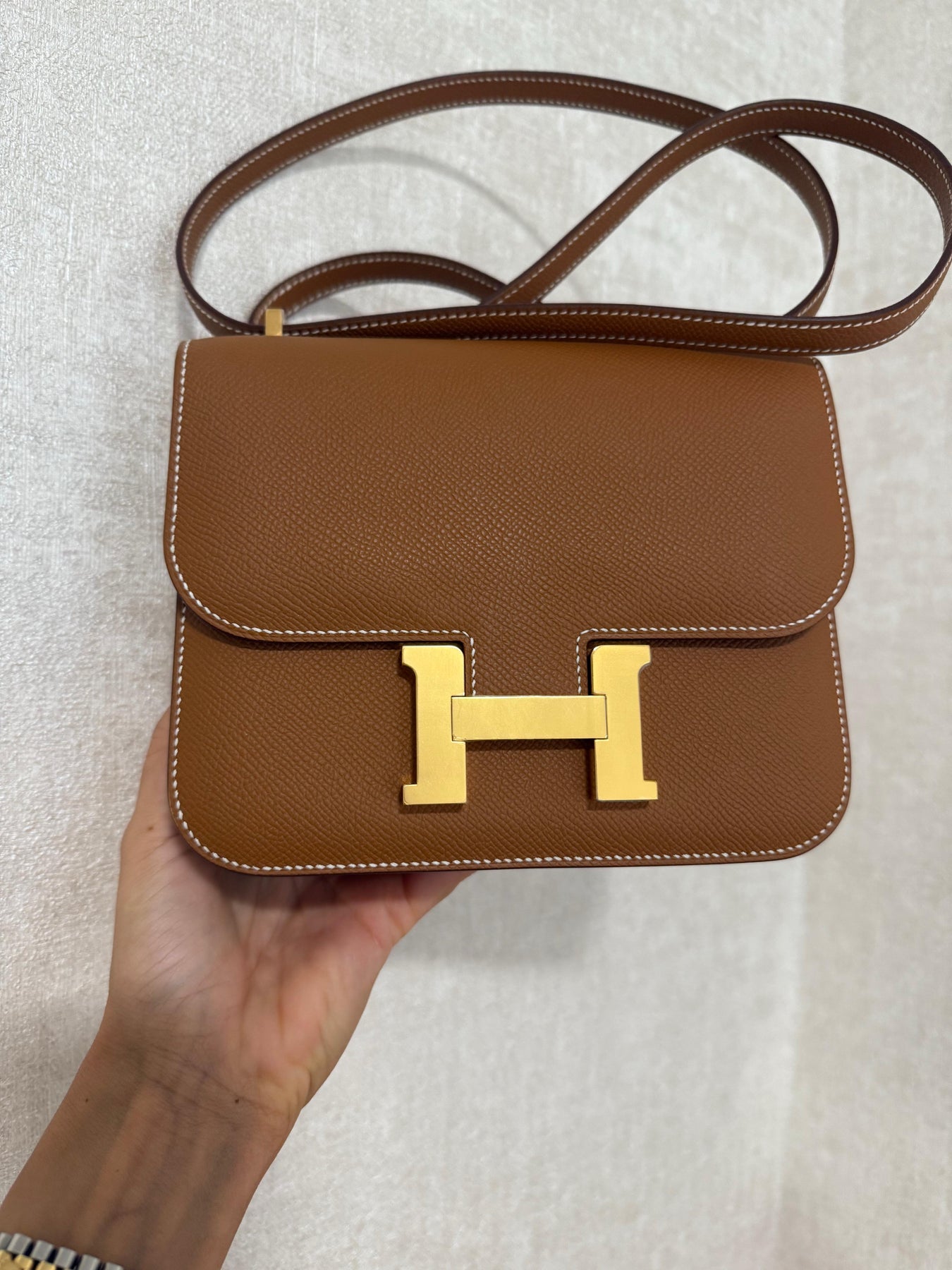HERMES Constance 18 Gold Epsom Leather GHW Flap bag Stamp B 2023