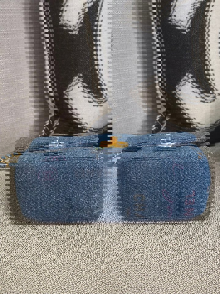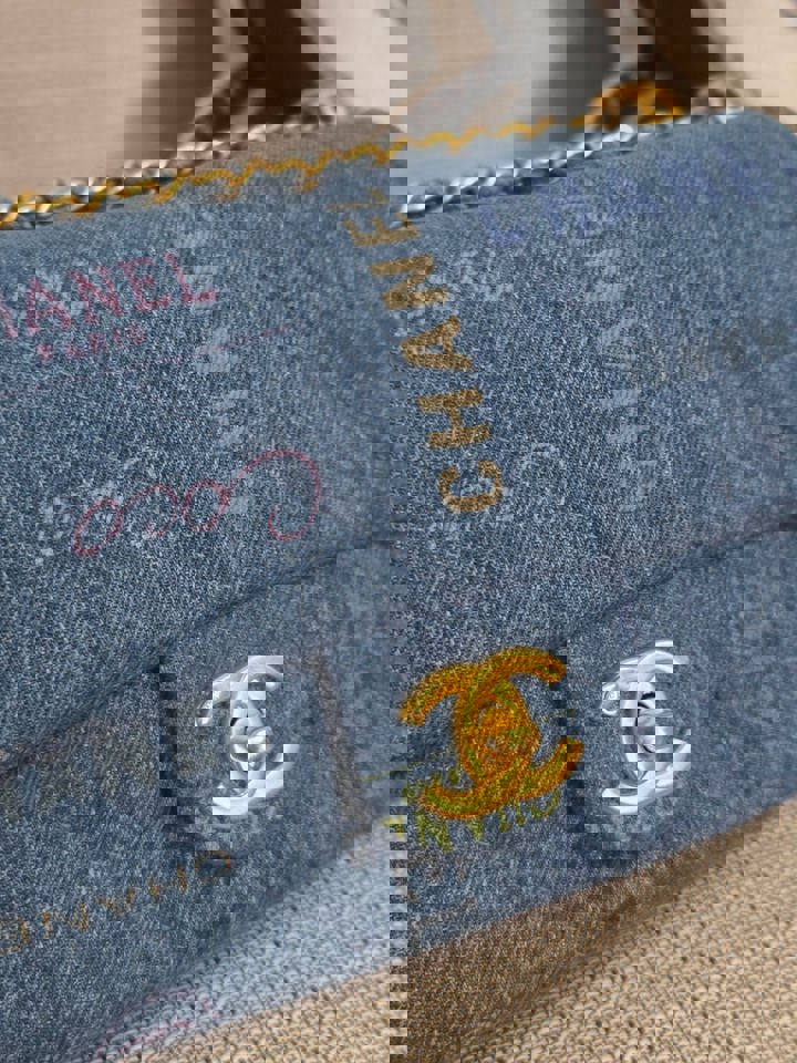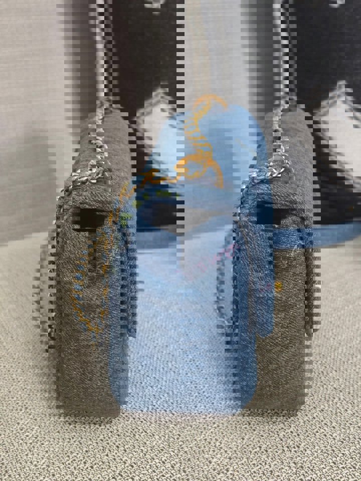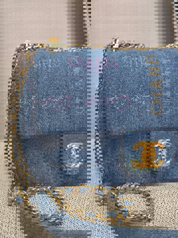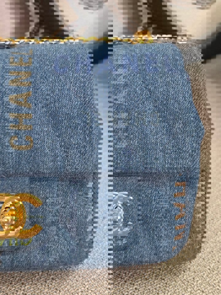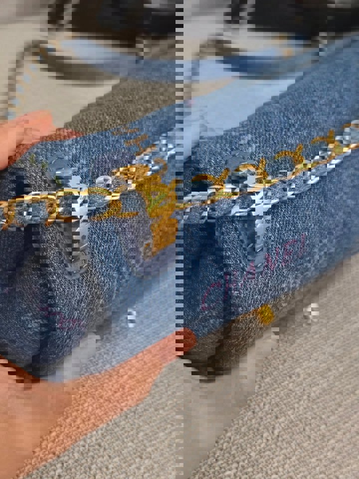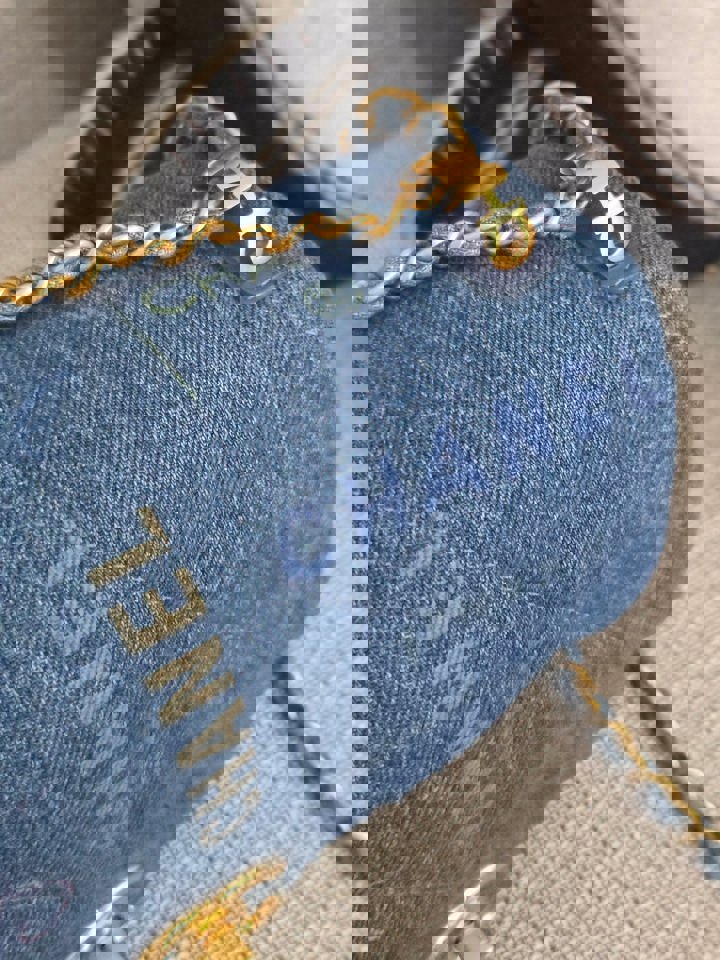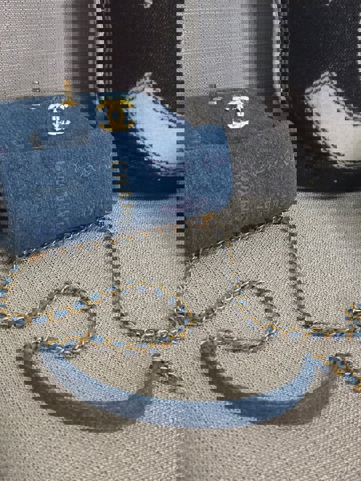 Chanel 22P Blue Denim Mood Flap Bag size Small with aged GHW