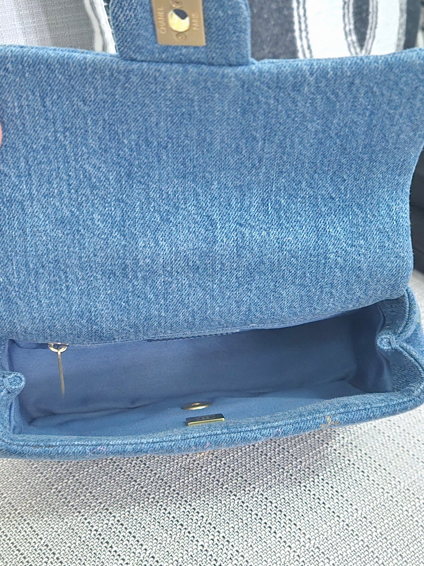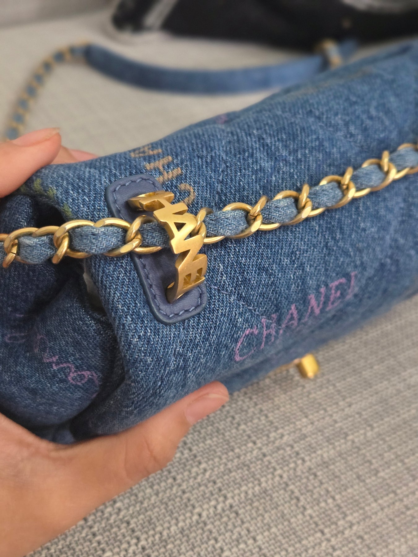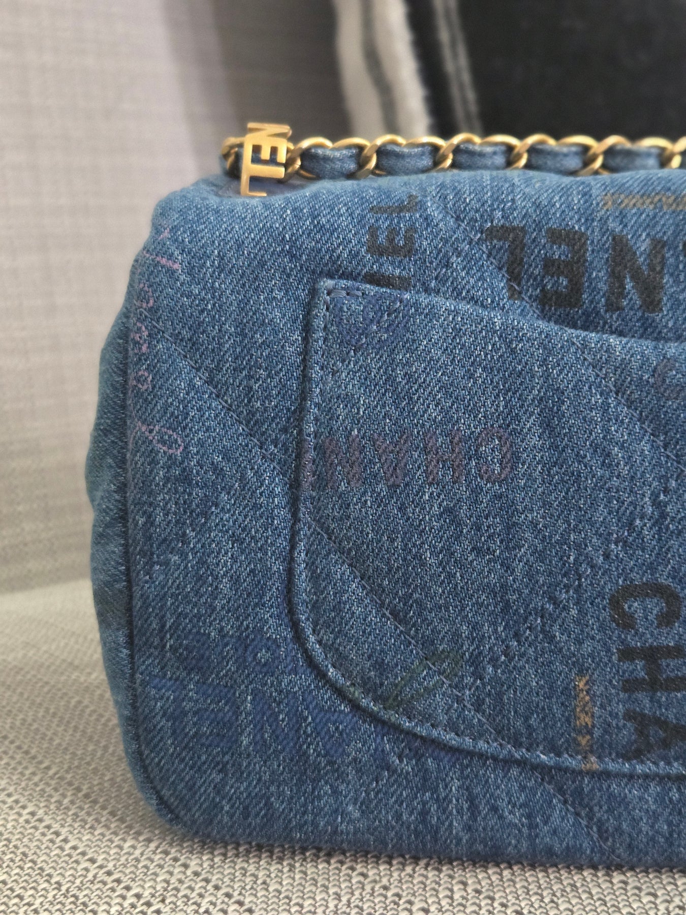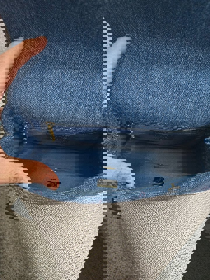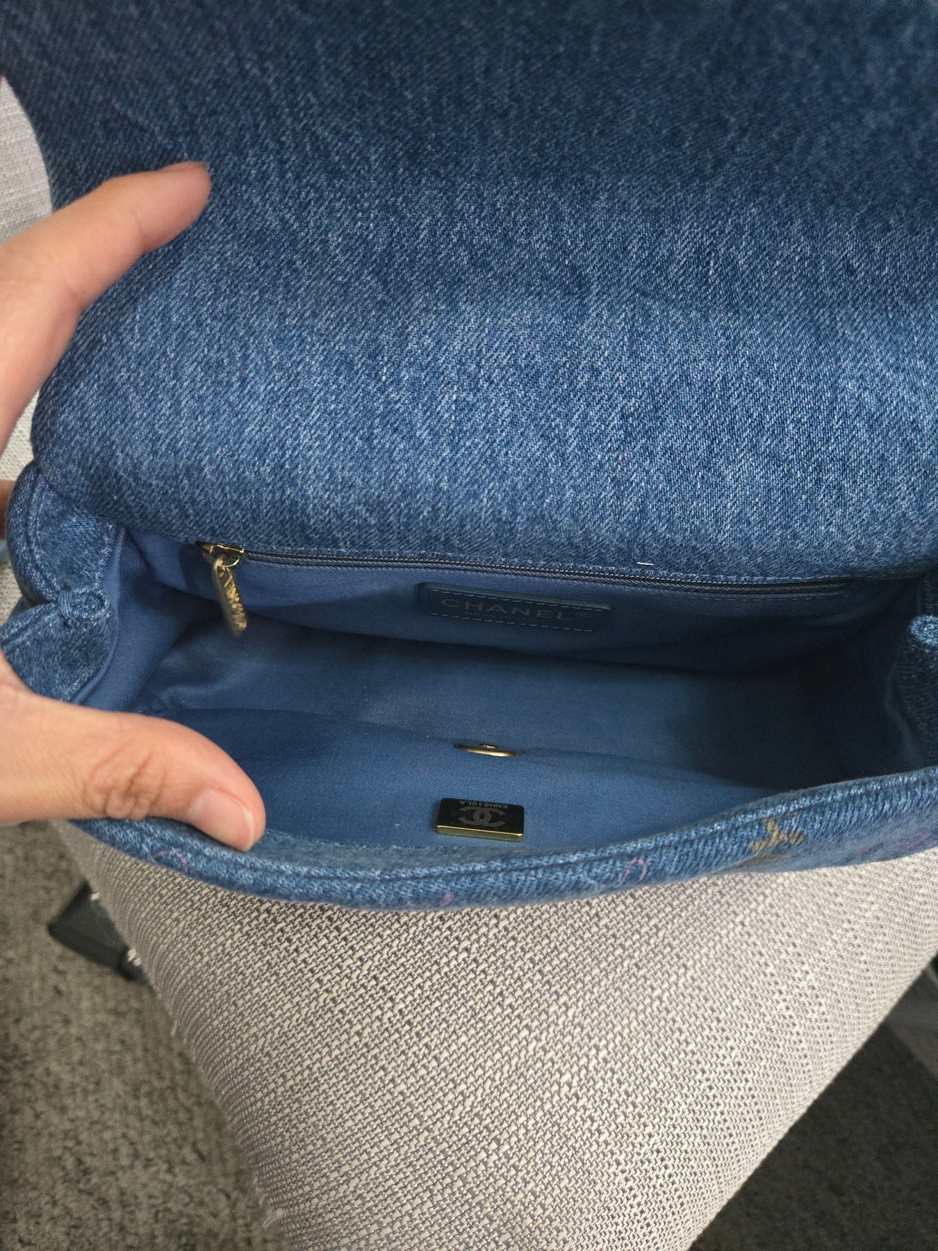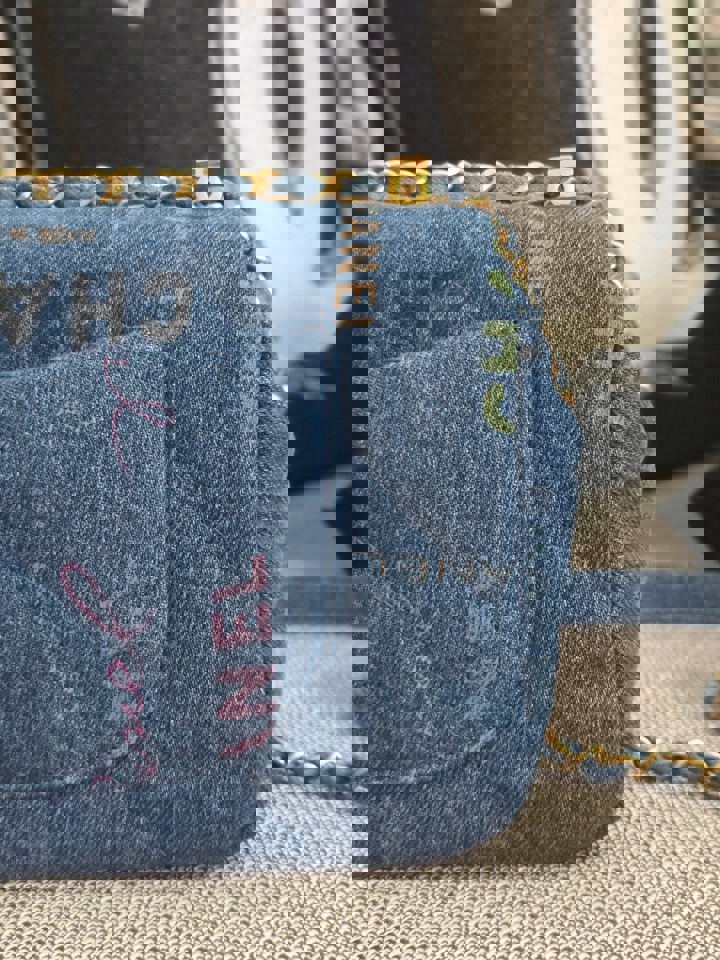 Chanel 22P Blue Denim Mood Flap Bag size Small with aged GHW