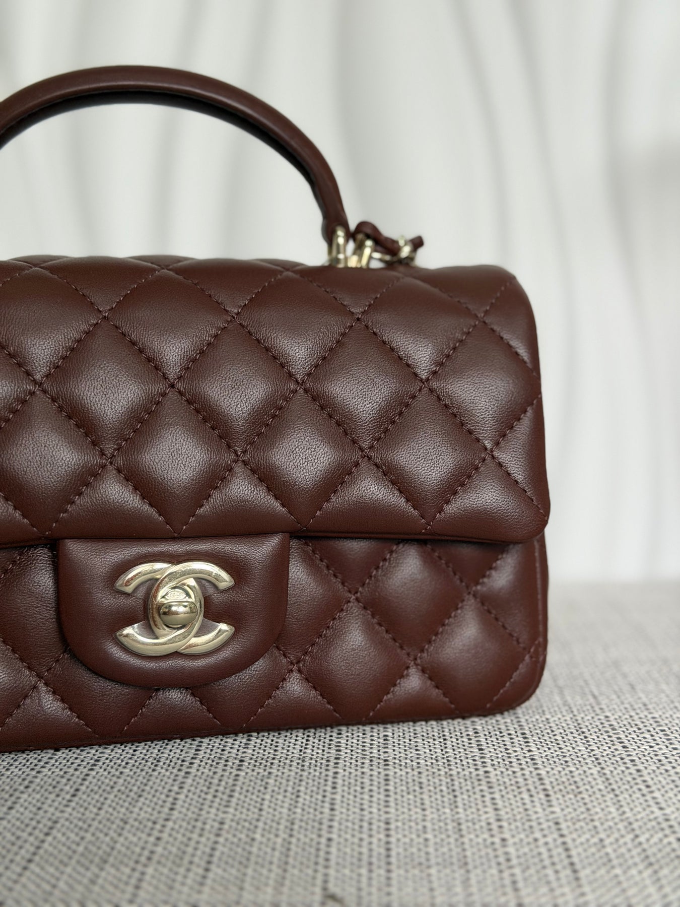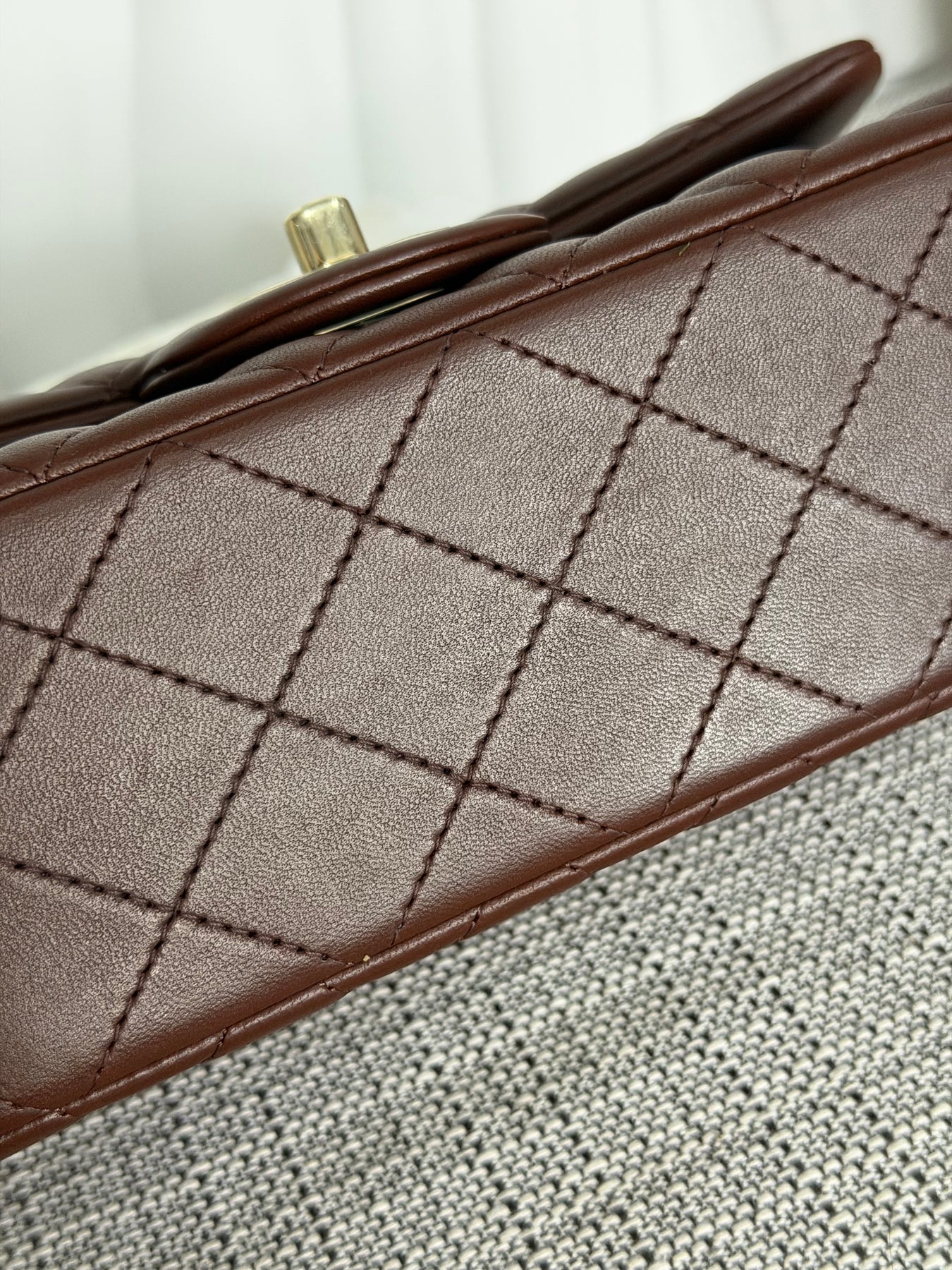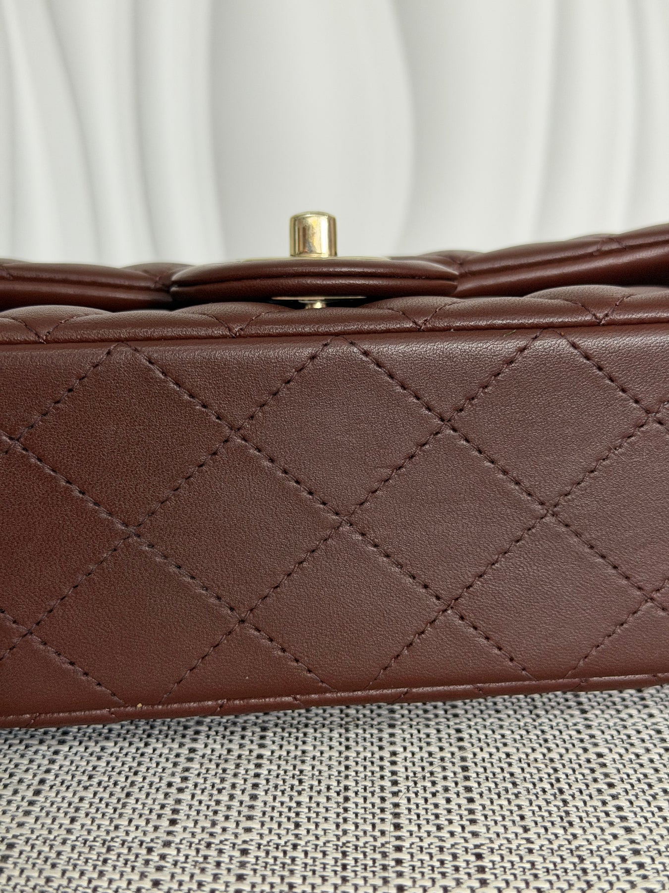 CHANEL 25K collection 2025 Brown Lambskin LGHW Mini Rectangular Flap Bag with Leather Top Handle