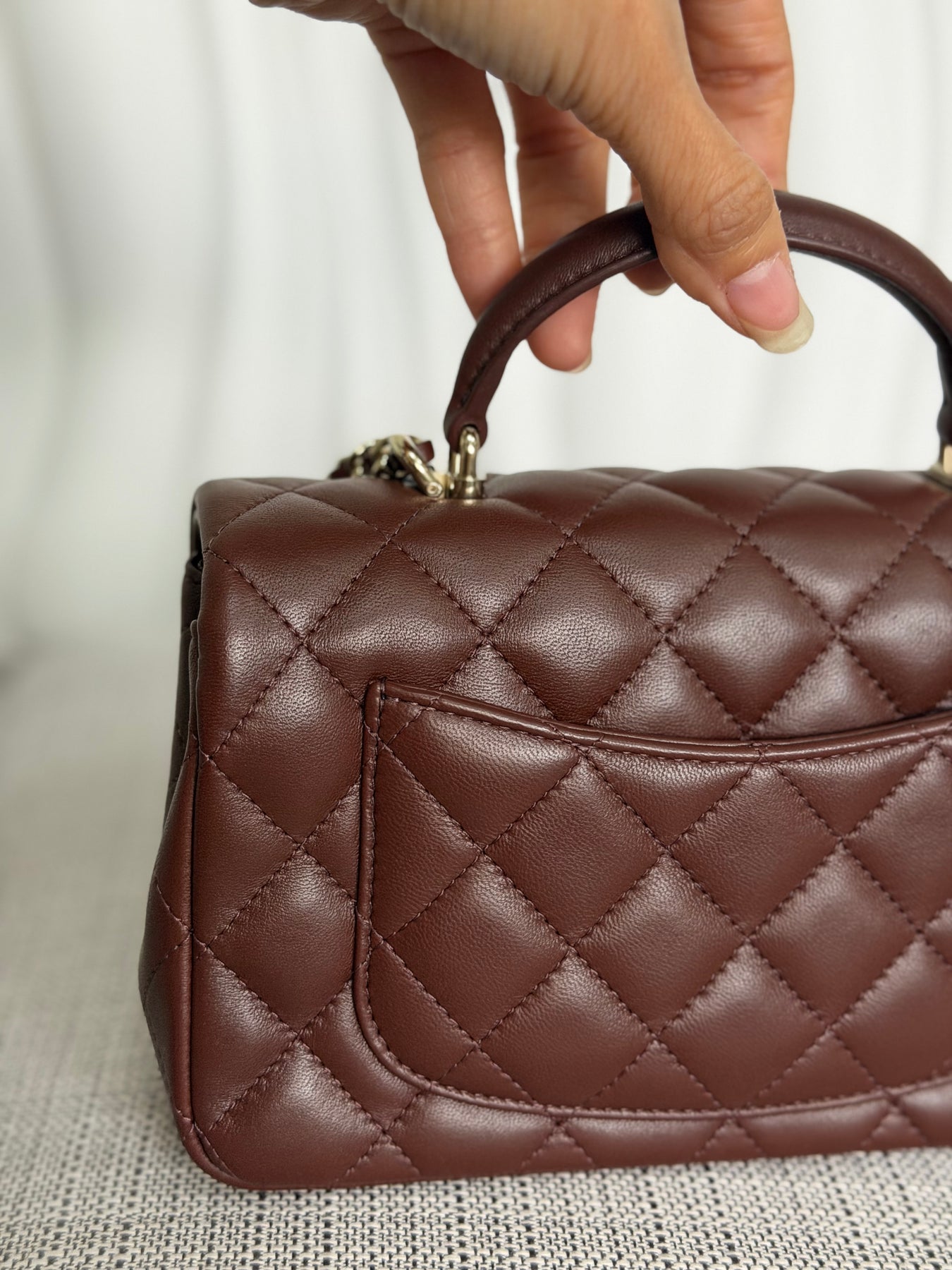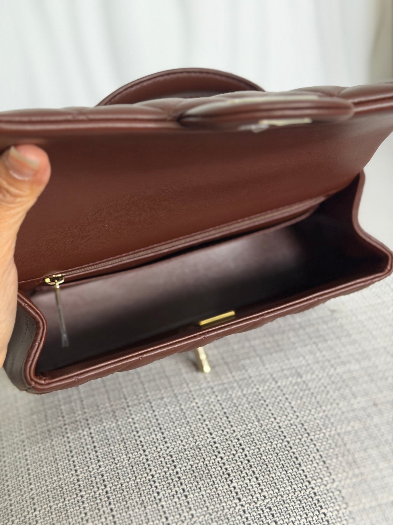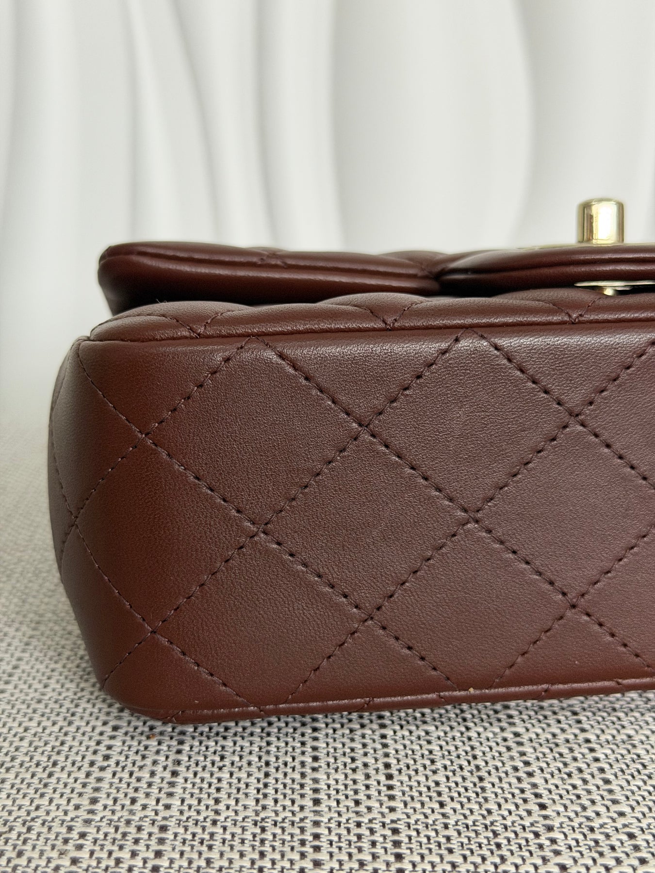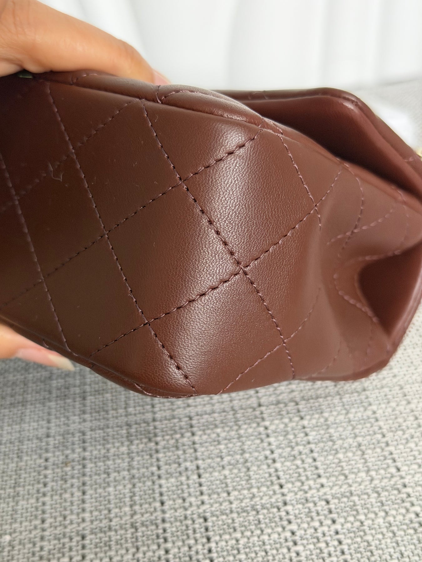 CHANEL 25K collection 2025 Brown Lambskin LGHW Mini Rectangular Flap Bag with Leather Top Handle
