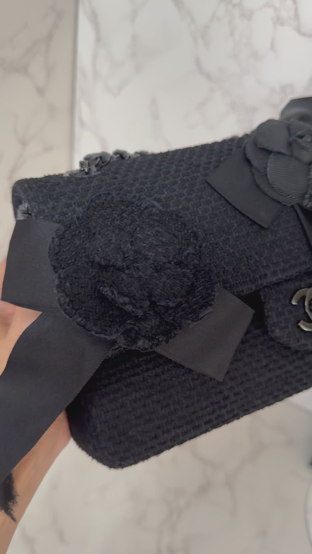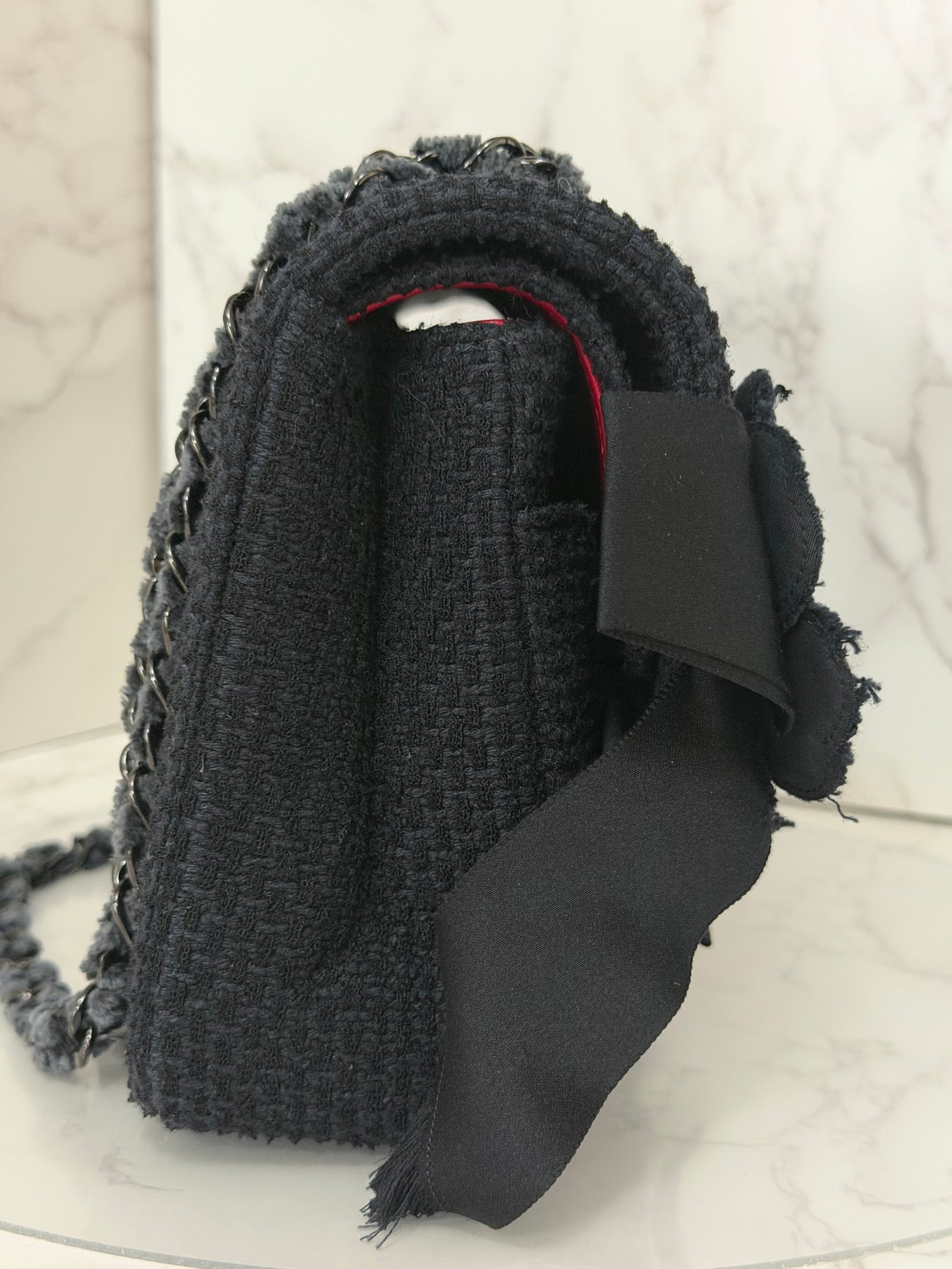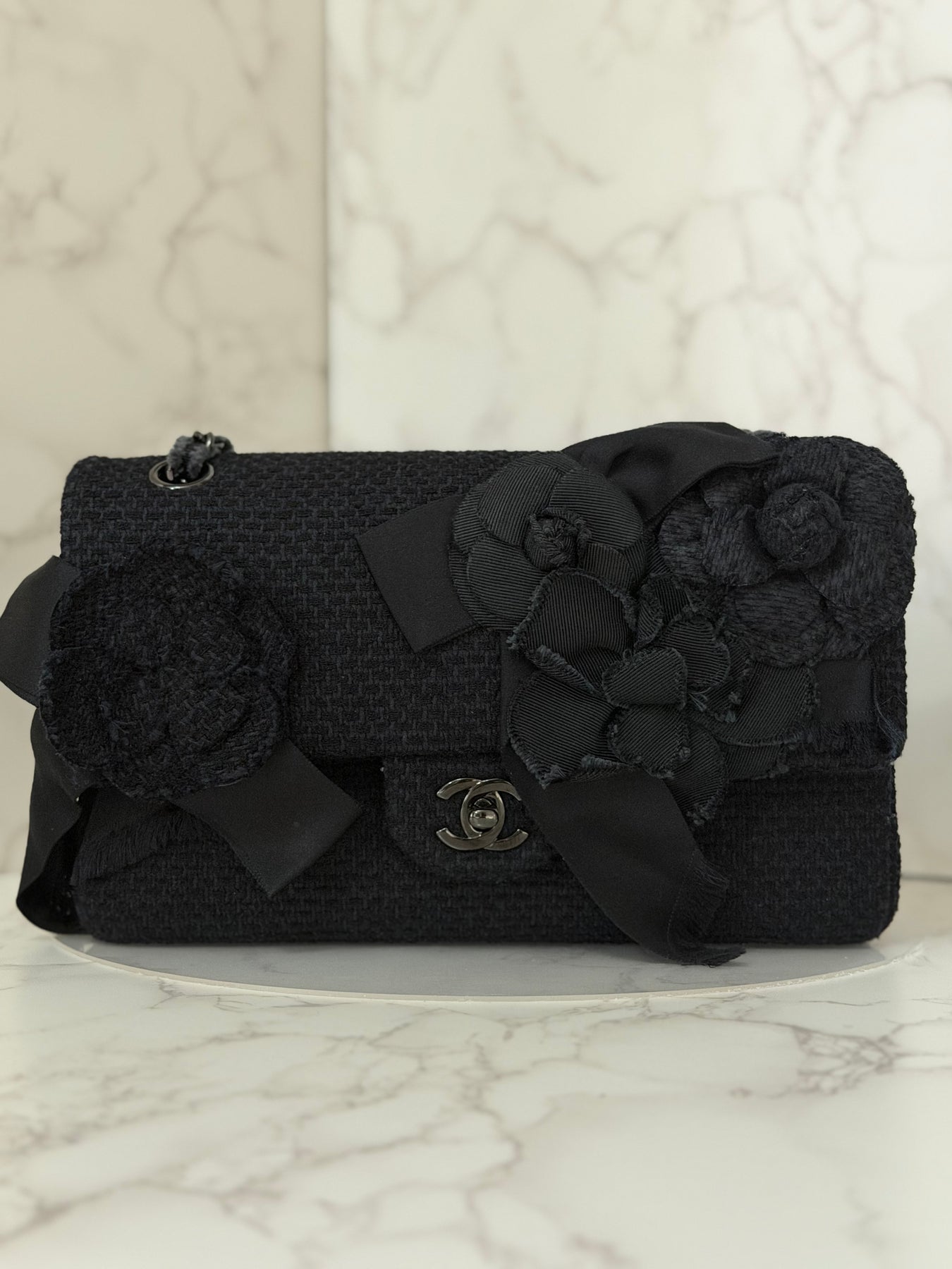 CHANEL 23C 2023 Embroidered Flower Tweed Medium Classic Flap Bag