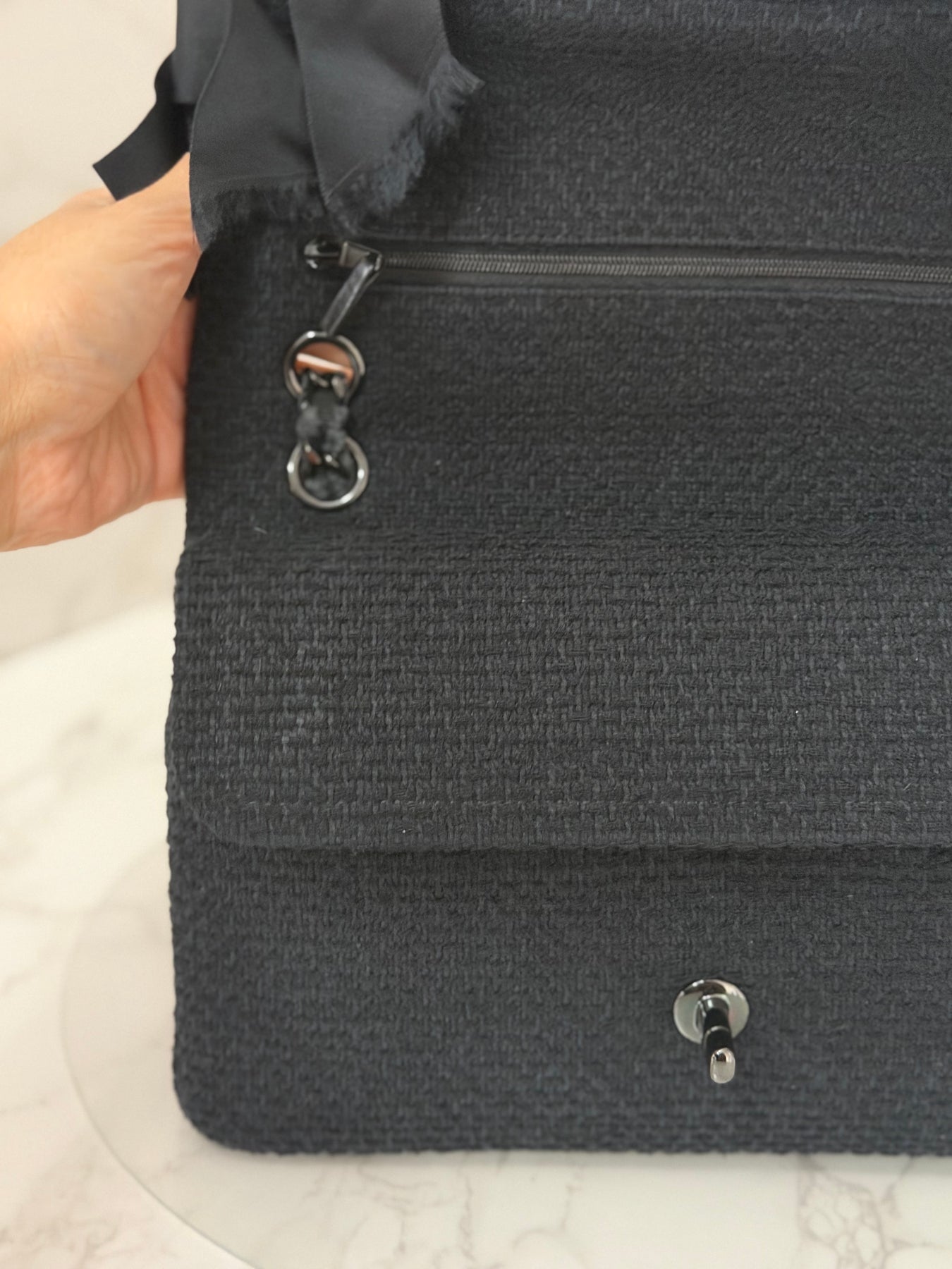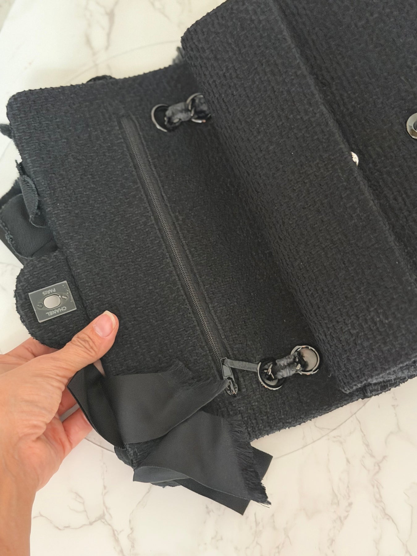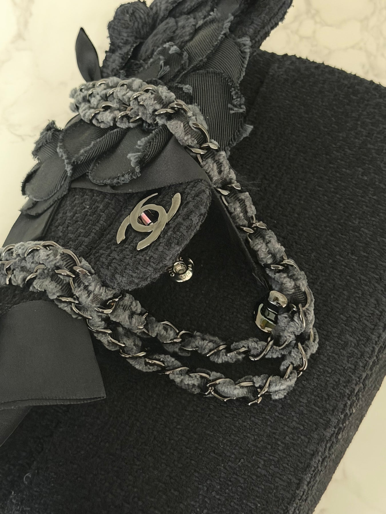 CHANEL 23C 2023 Embroidered Flower Tweed Medium Classic Flap Bag