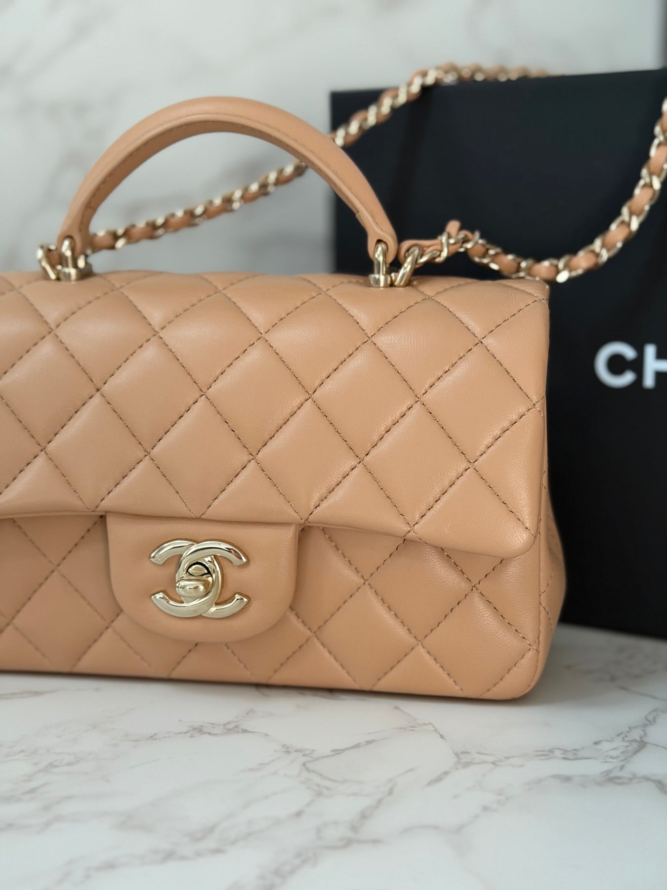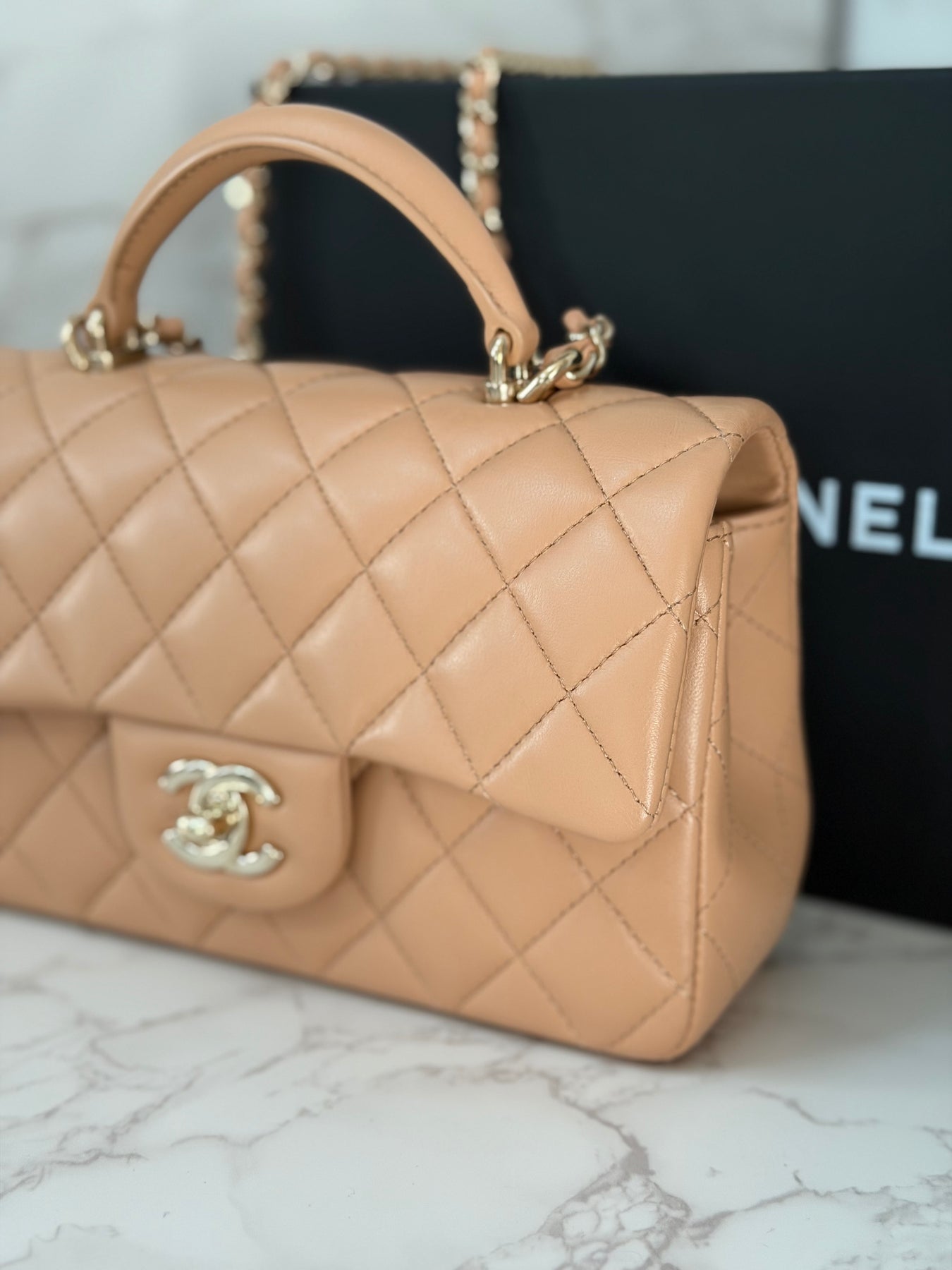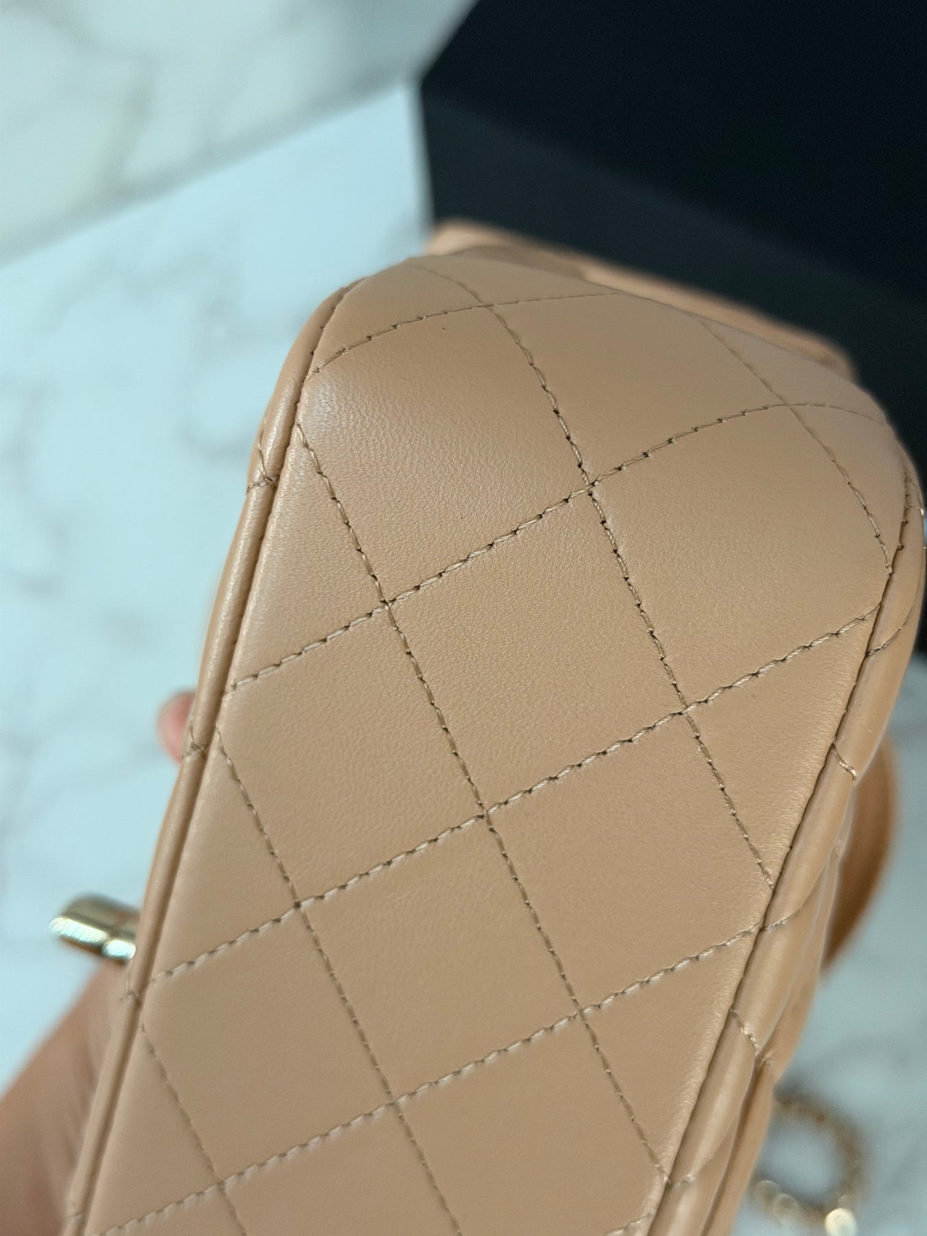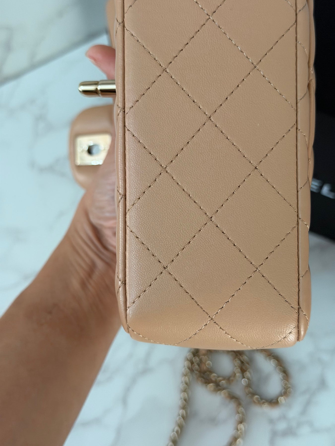 CHANEL 23K 2023 Dark Beige NR649 Lambskin LGHW Mini Rectangular Flap Bag with Top Handle