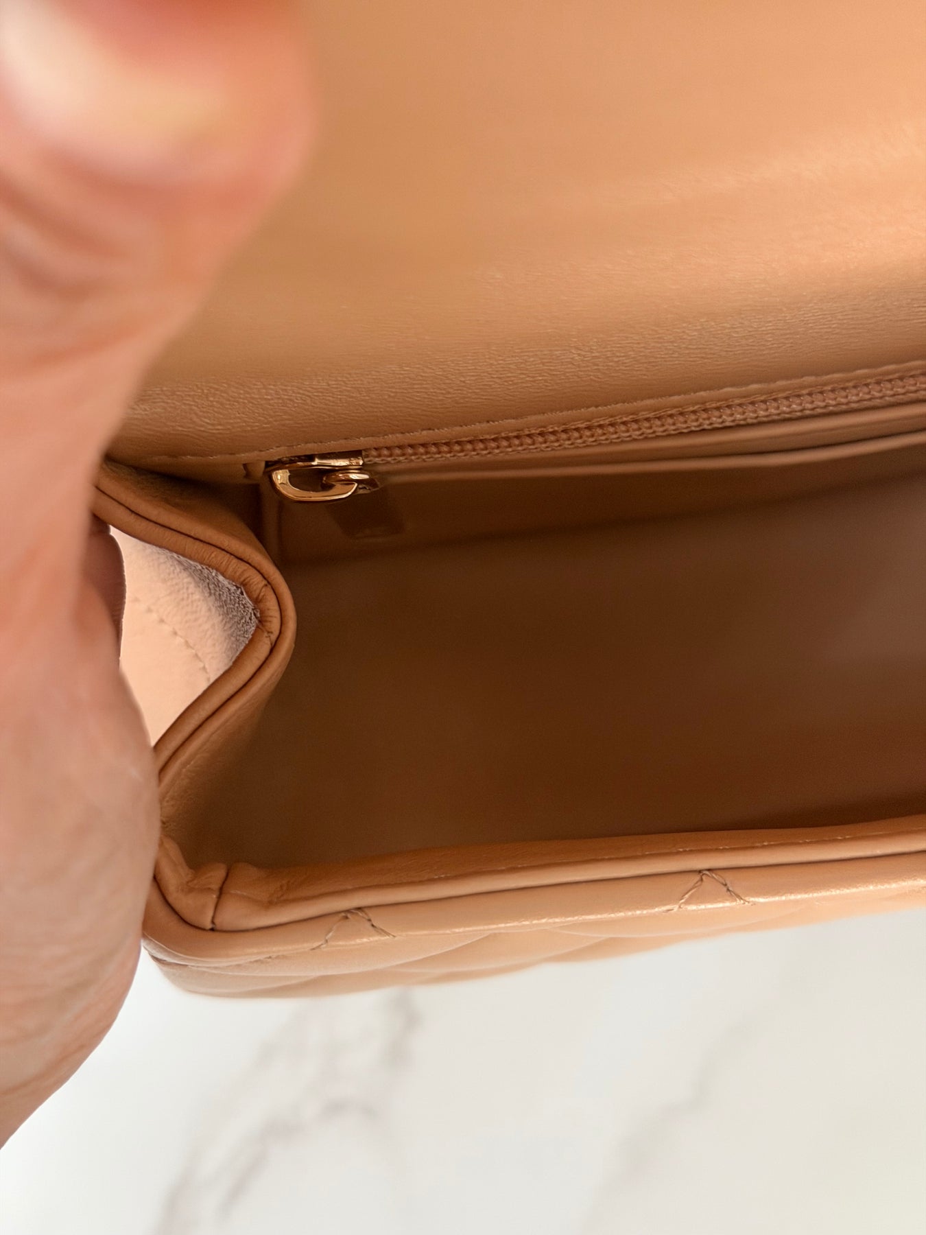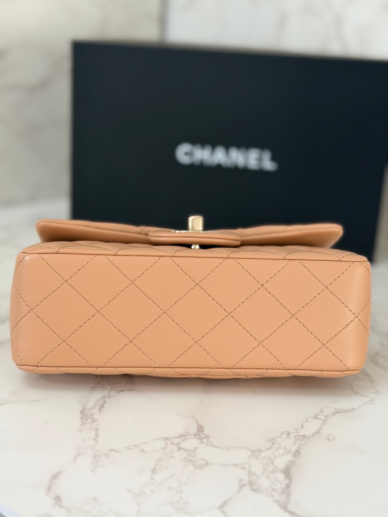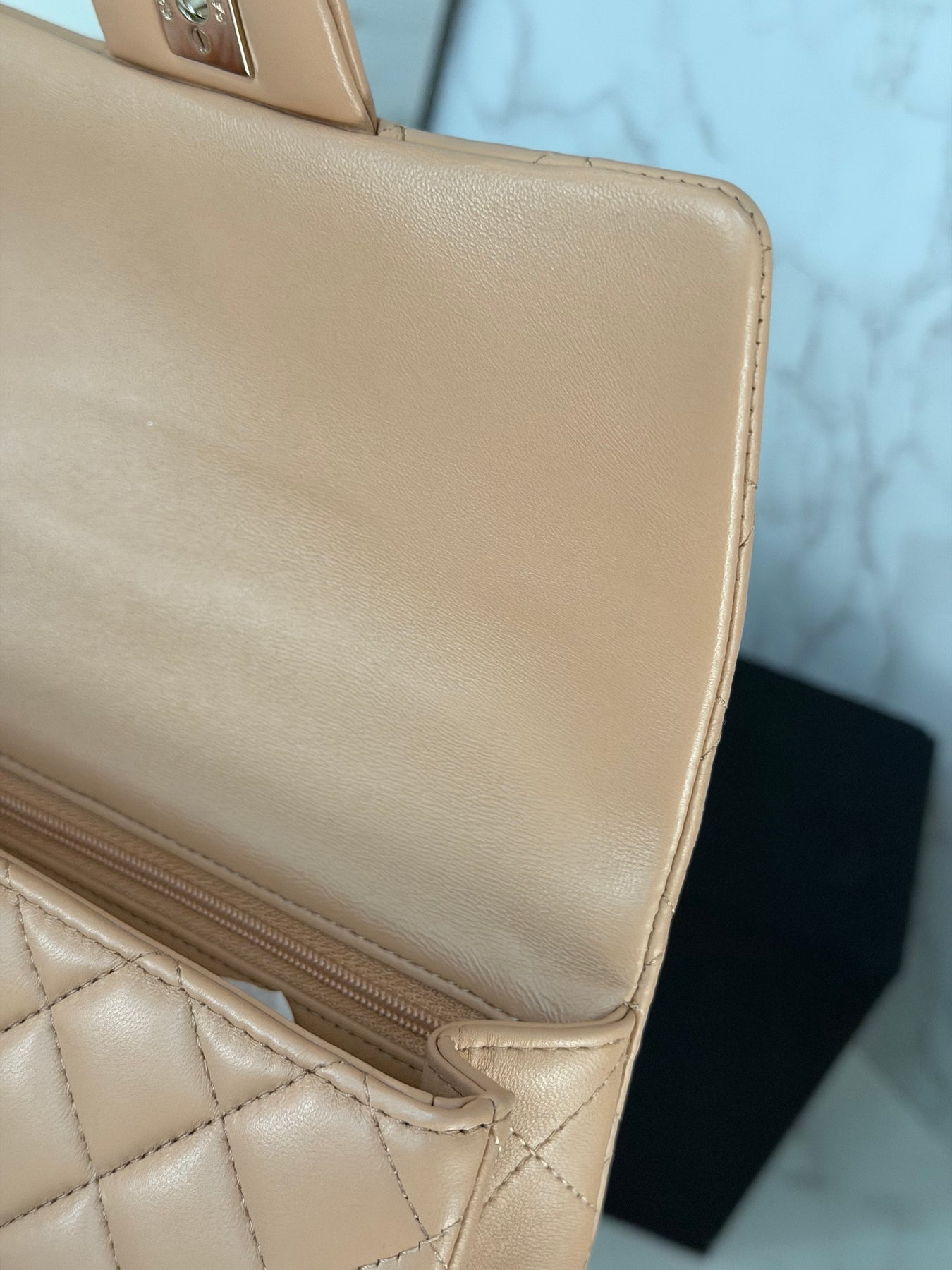 CHANEL 23K 2023 Dark Beige NR649 Lambskin LGHW Mini Rectangular Flap Bag with Top Handle
