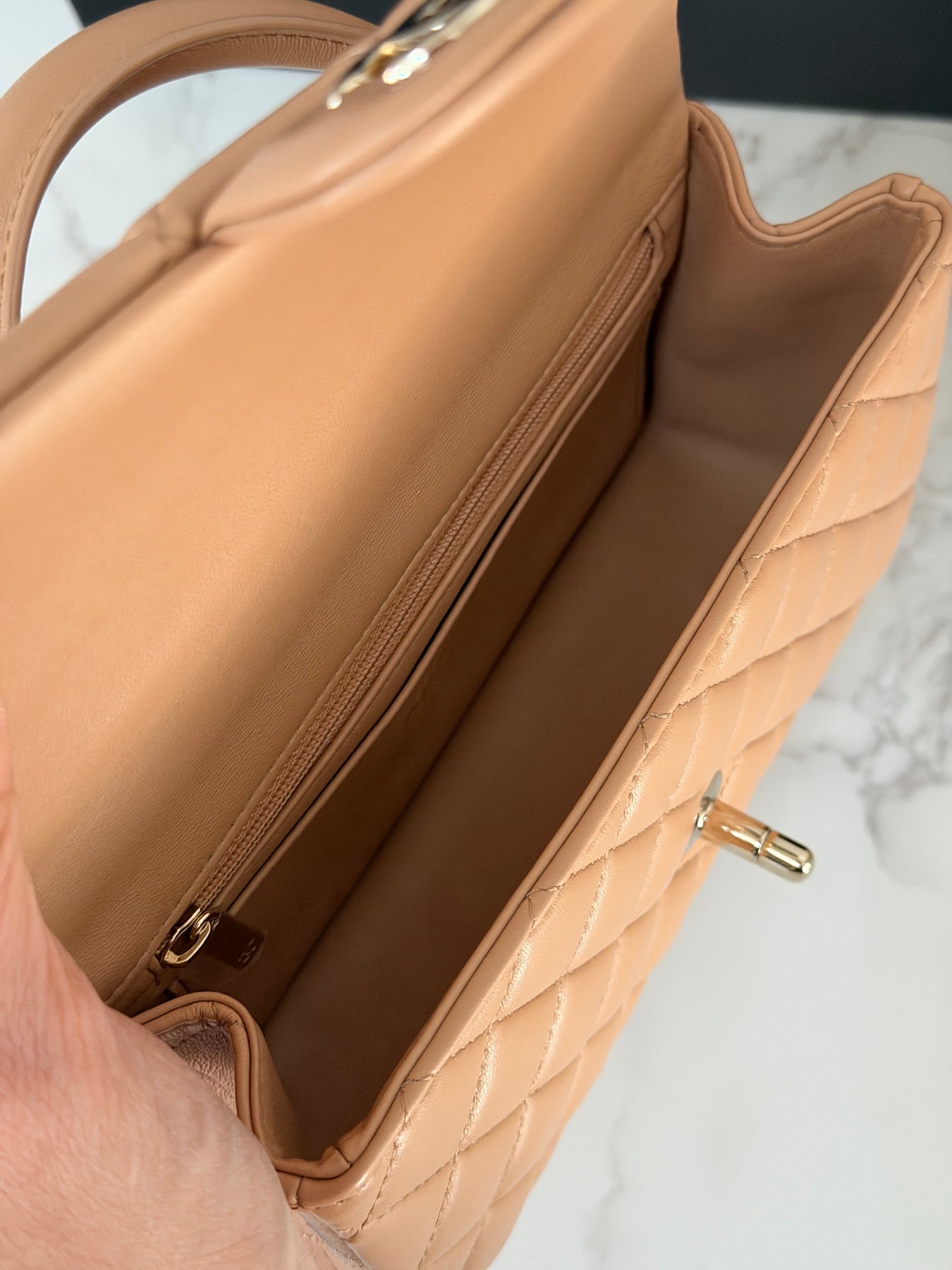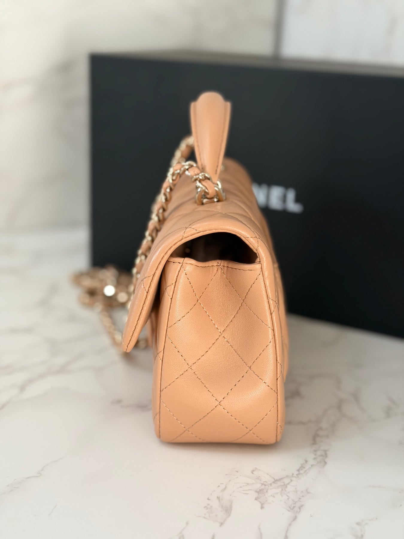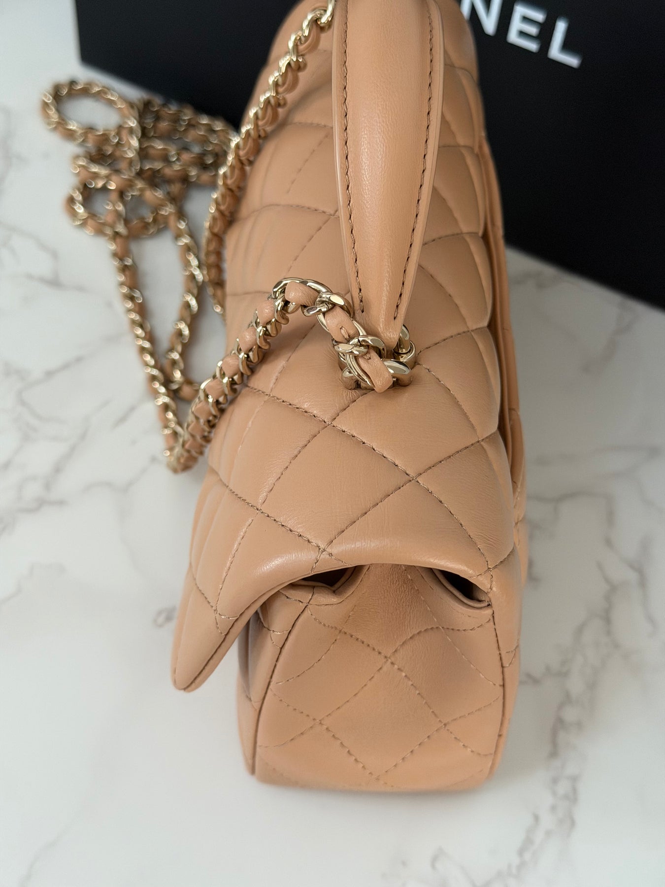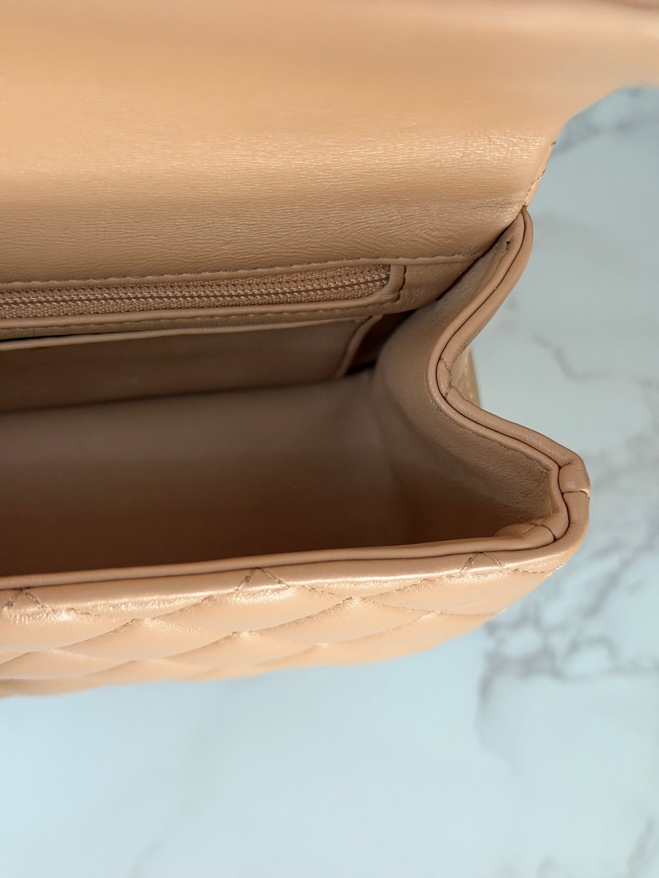 CHANEL 23K 2023 Dark Beige NR649 Lambskin LGHW Mini Rectangular Flap Bag with Top Handle