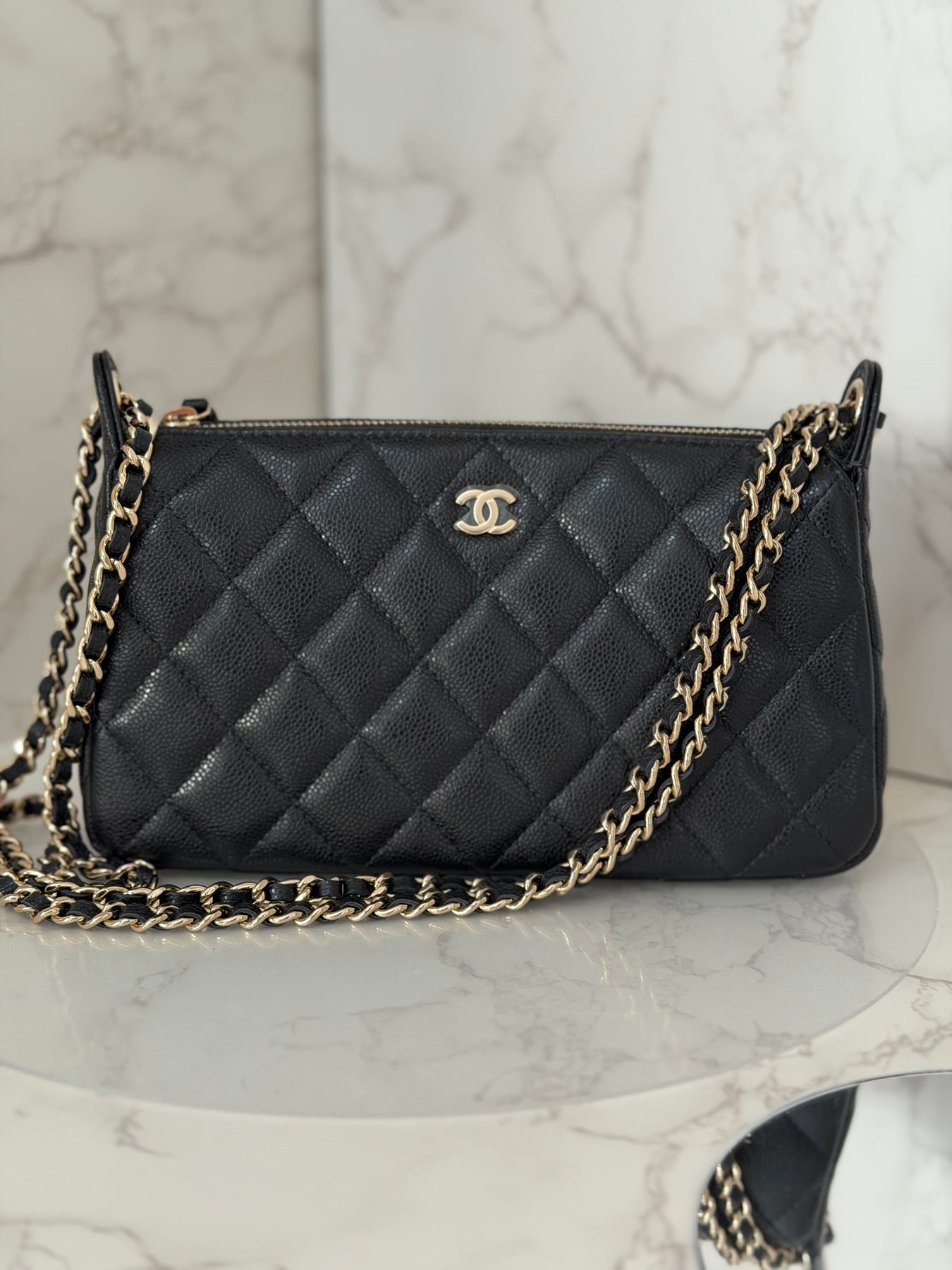 CHANEL new style Clutch/Wallet on Chain WOC in Black caviar LGHW and Burgundy lining 2025