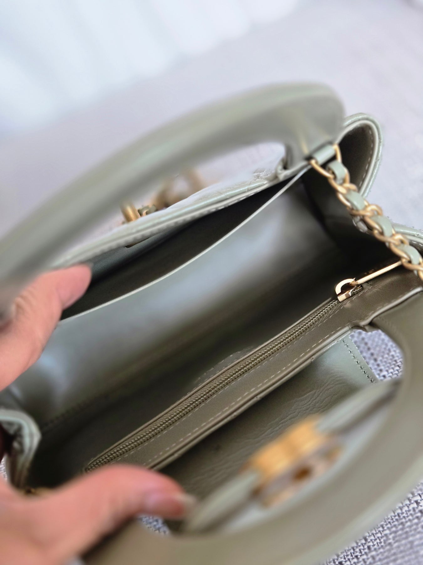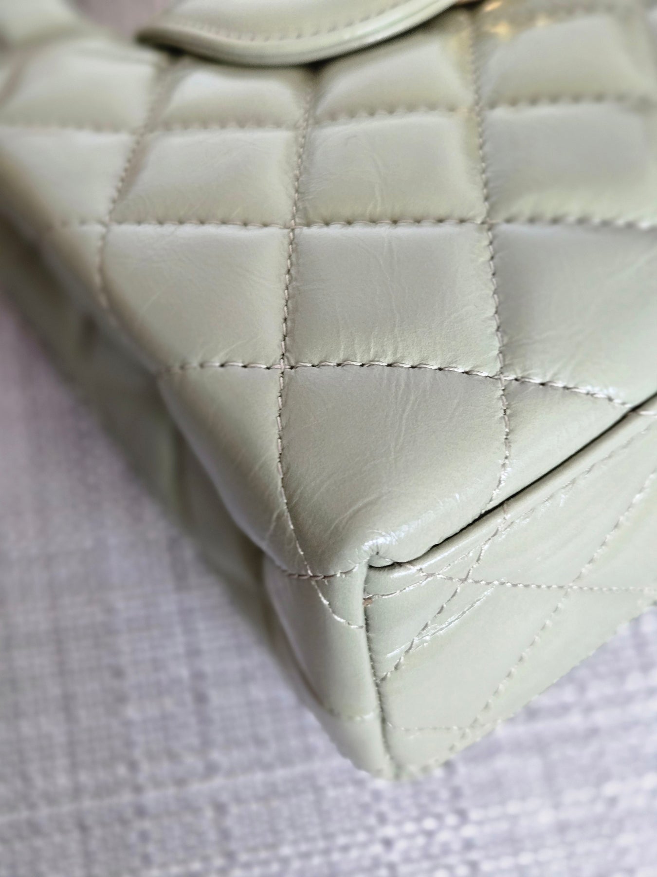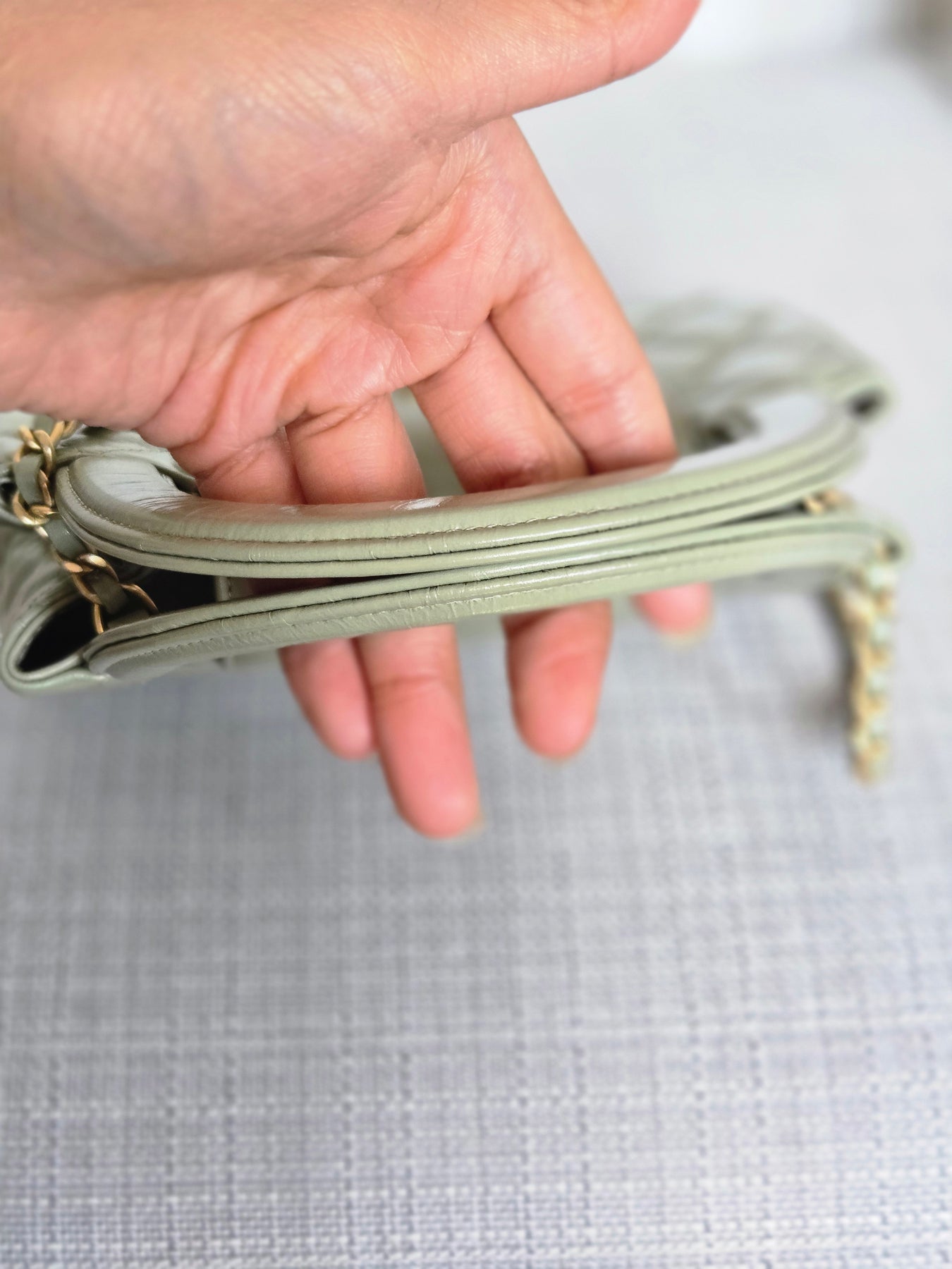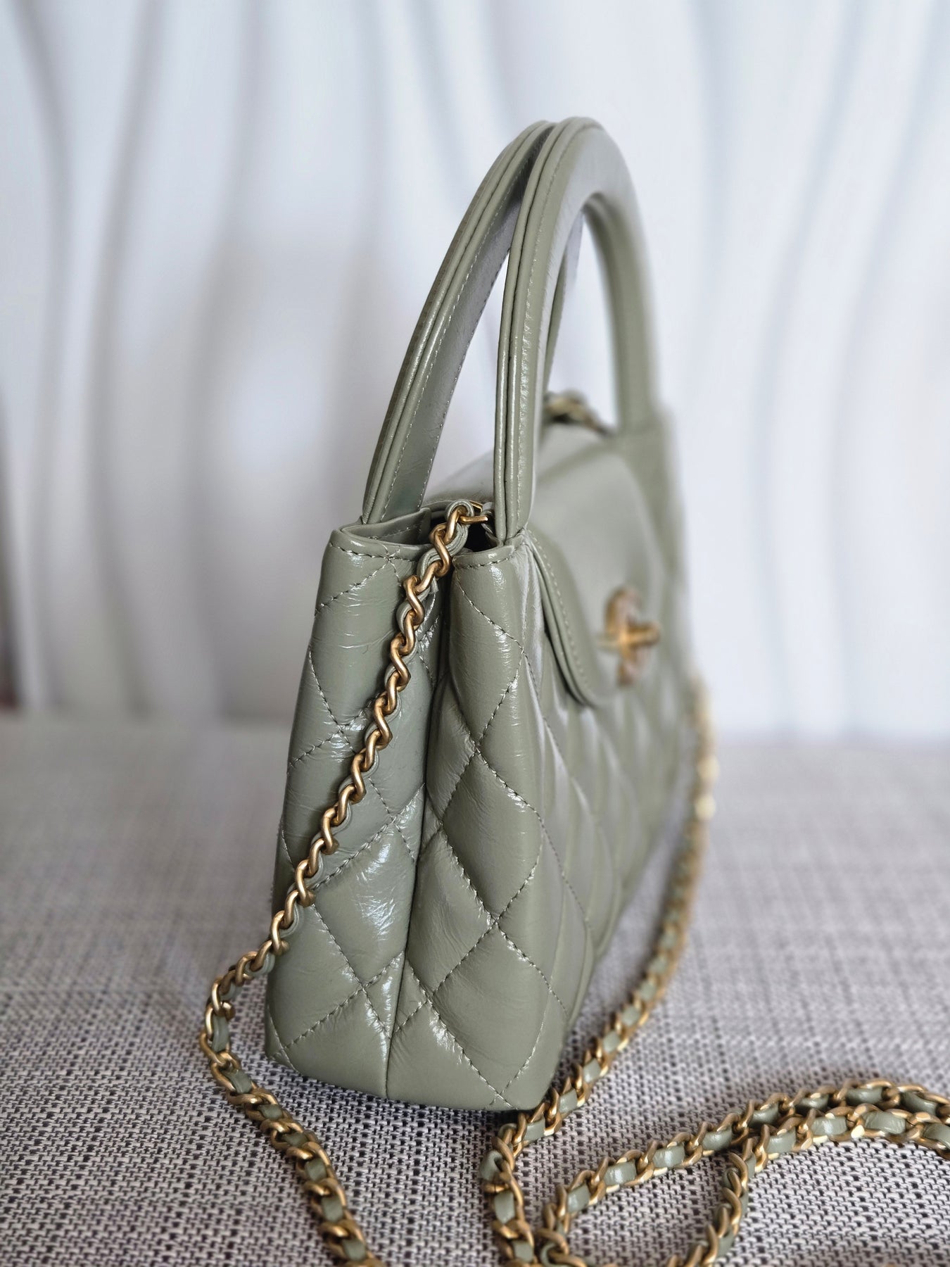CHANEL Sage Khaki Green Glazed Calfskin Aged GHW Nano Kelly Shopping Bag size Small (19cms)