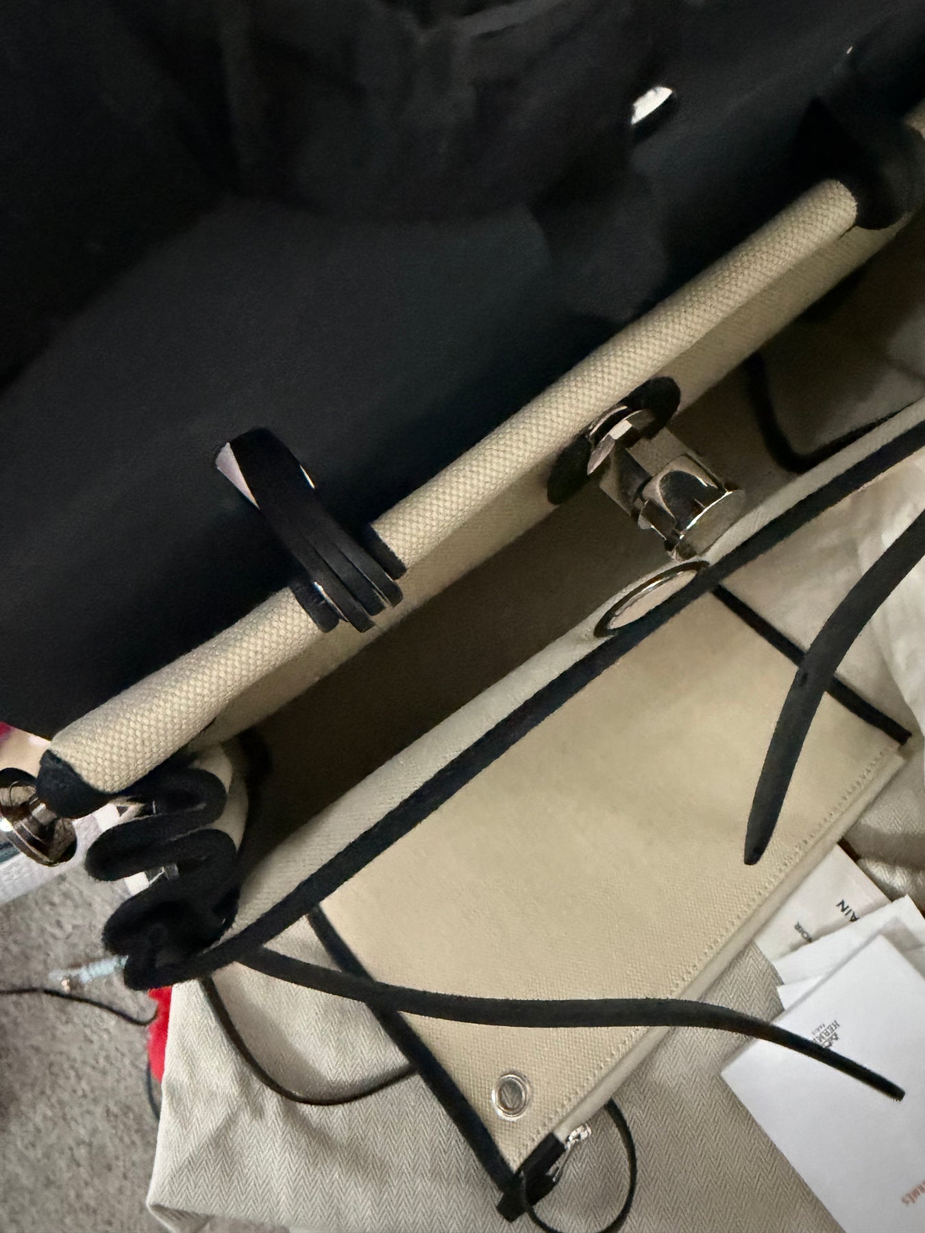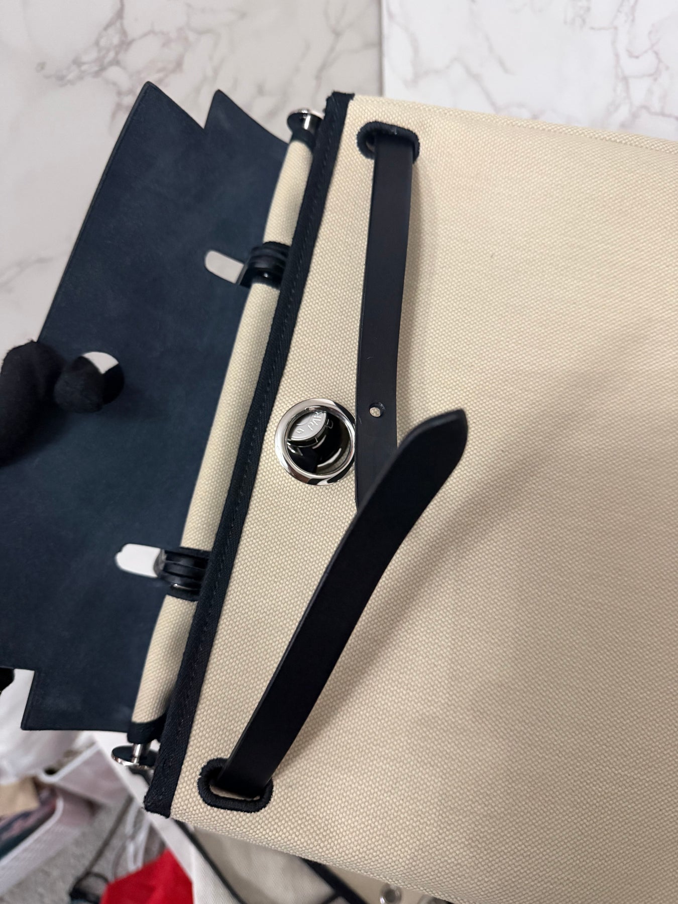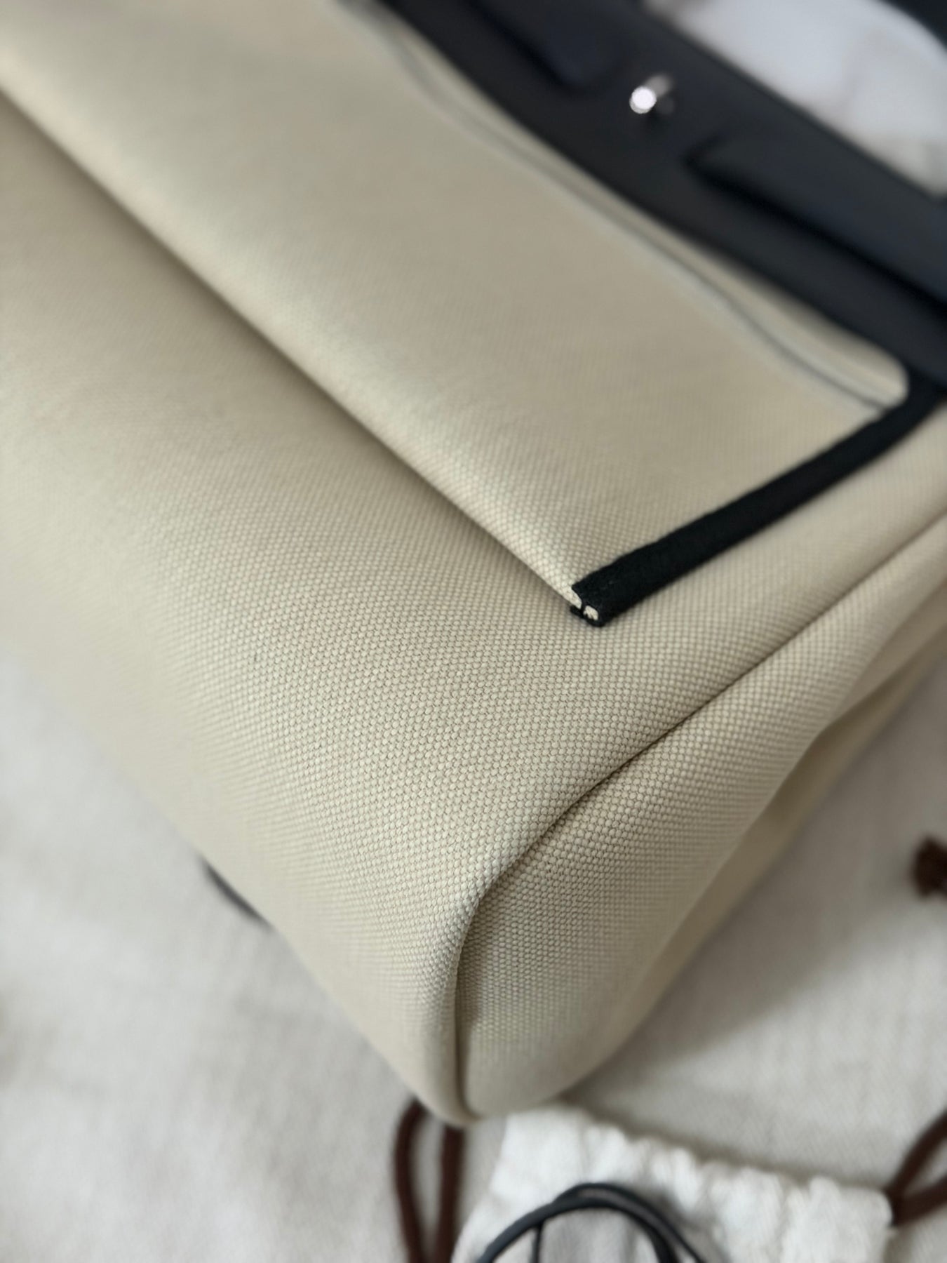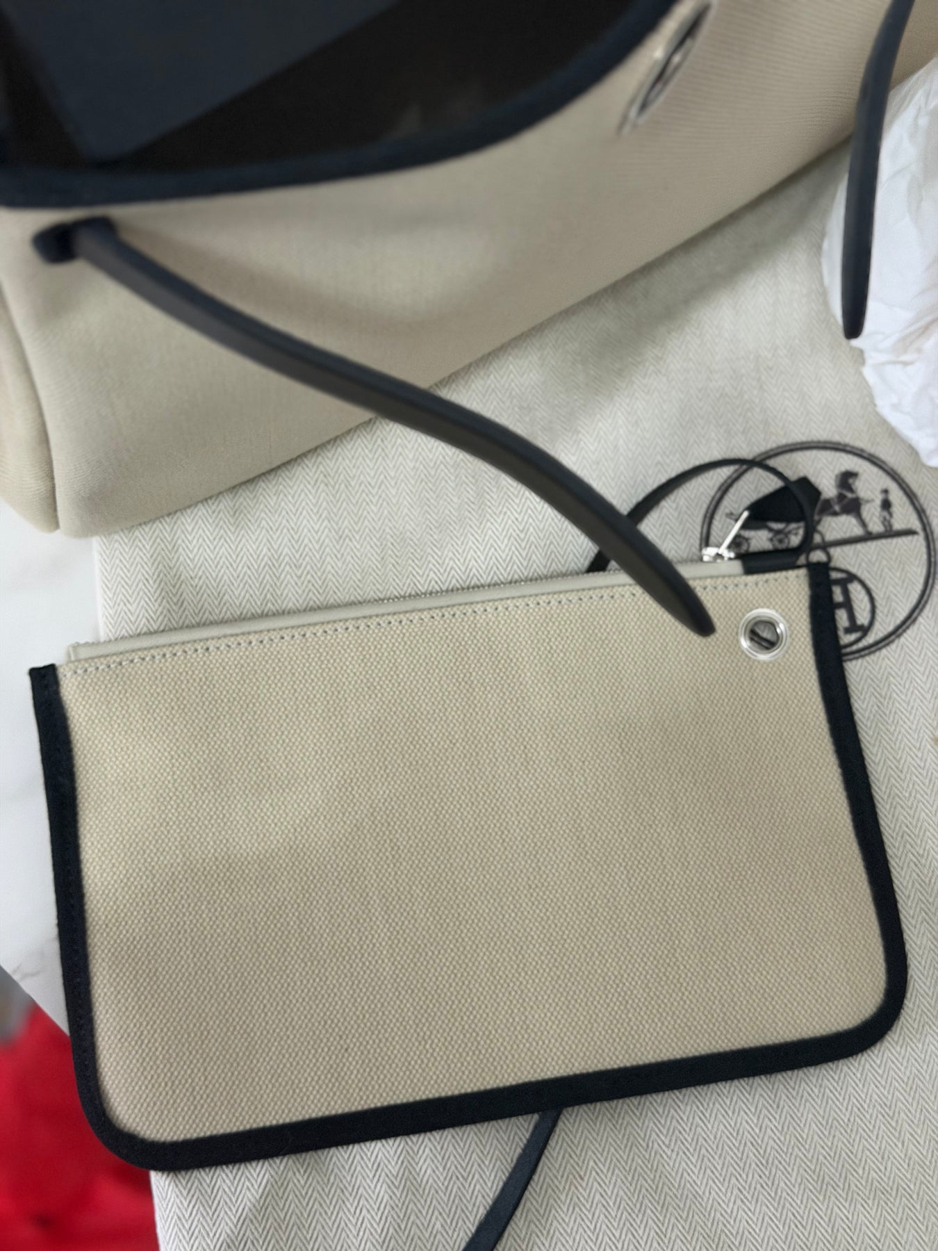 Hermes Herbag Zip 31 Bag in Beton Canvas/Noir Black Leather Palladium Hardware