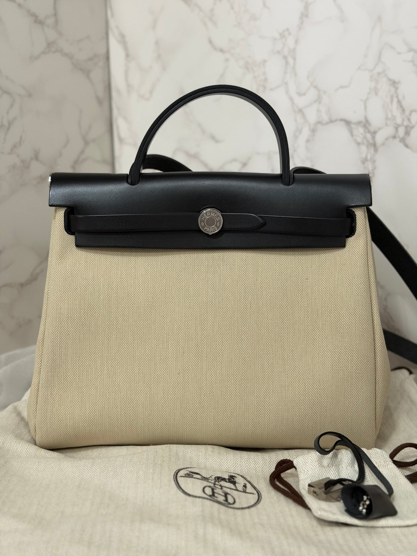 Hermes Herbag Zip 31 Bag in Noir/Beton Palladium Hardware