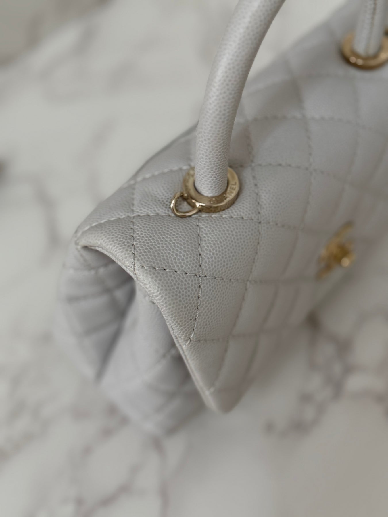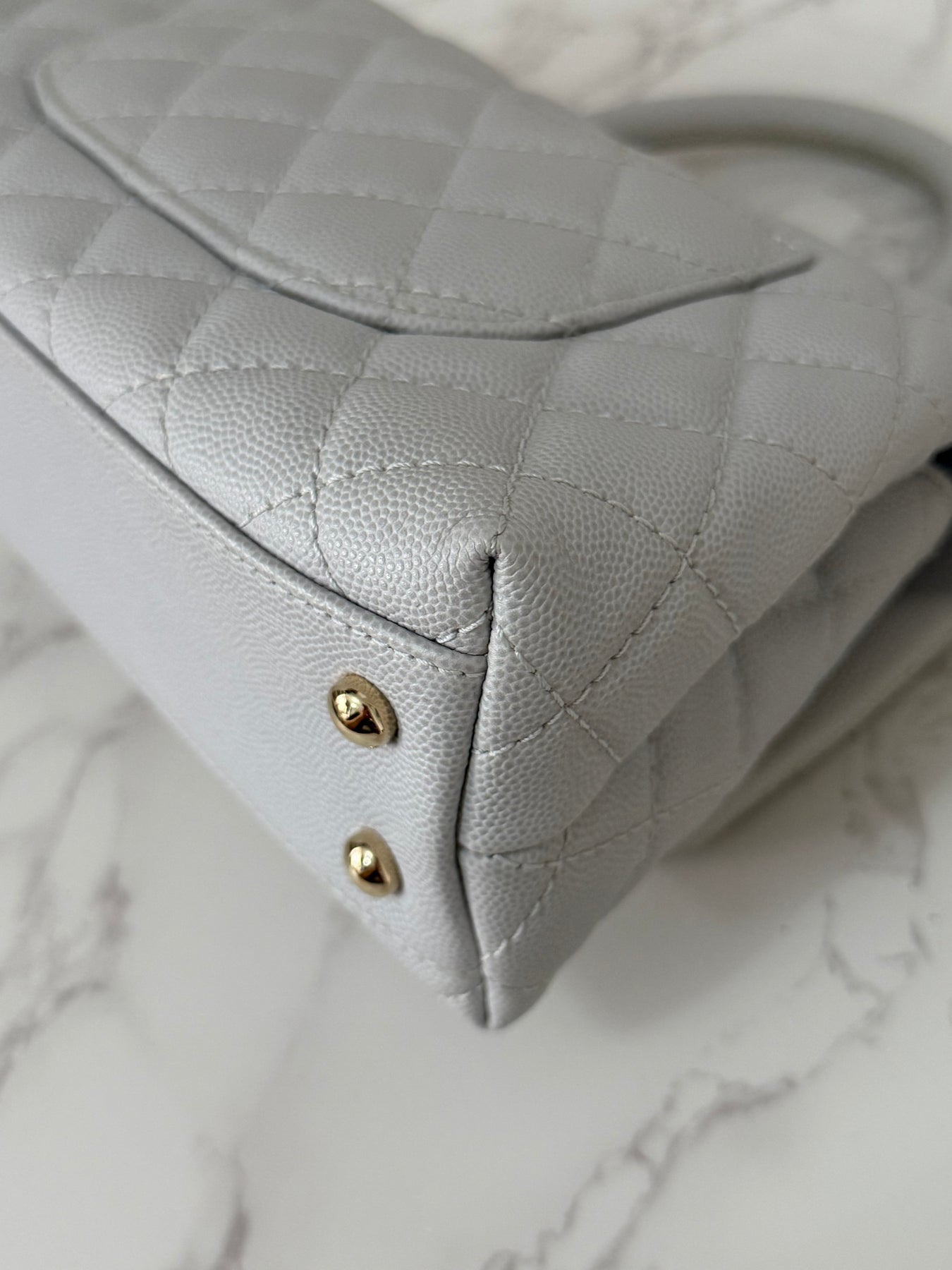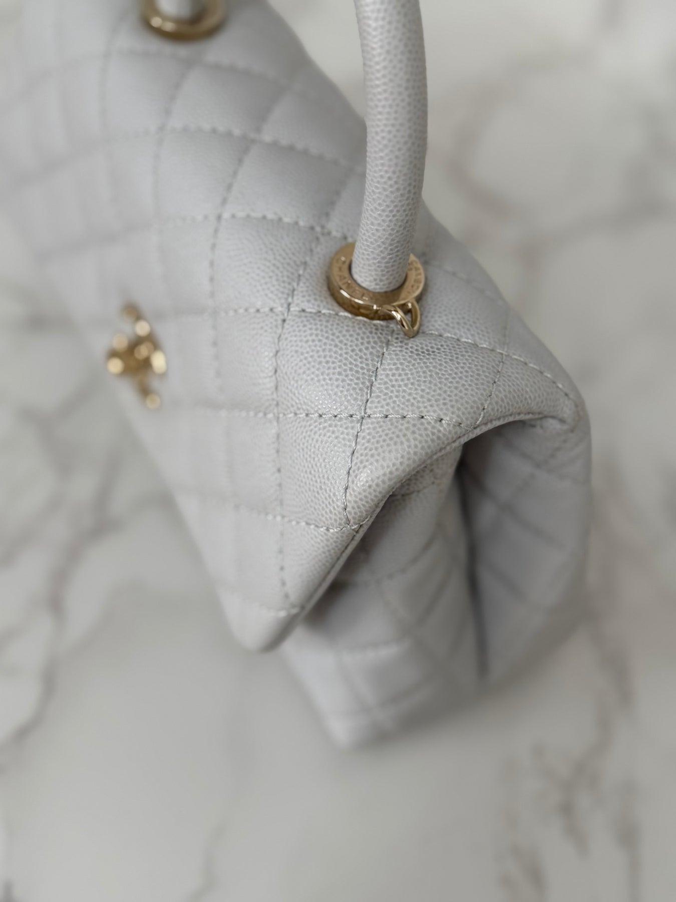 CHANEL 18P series 27 Light Grey Caviar LGHW Coco Handle Size Small with Detachable Shoulder strap