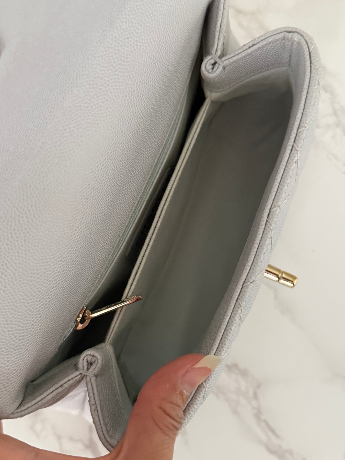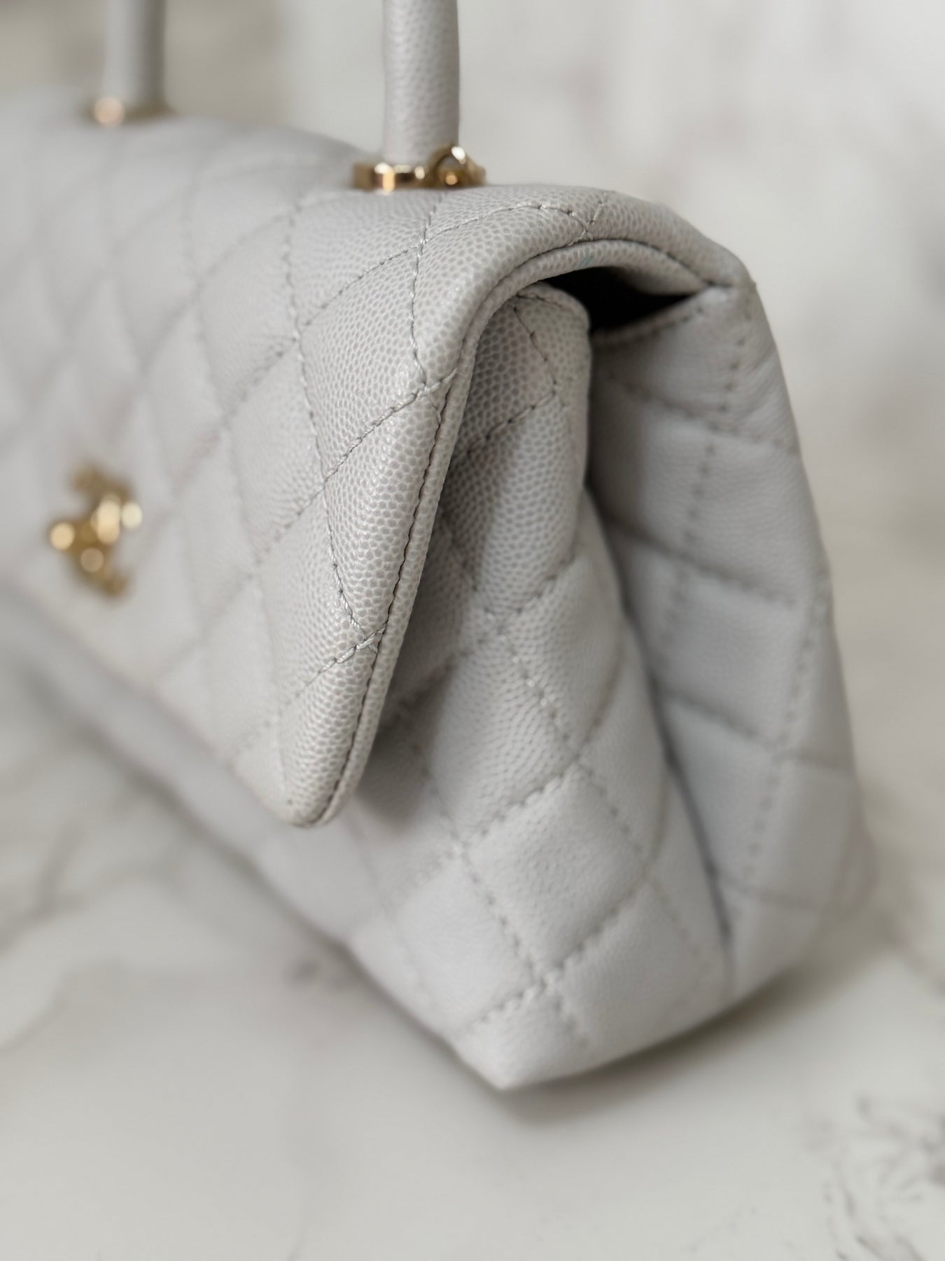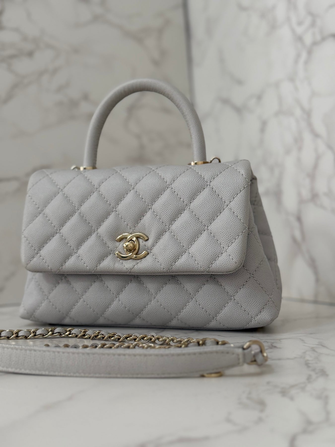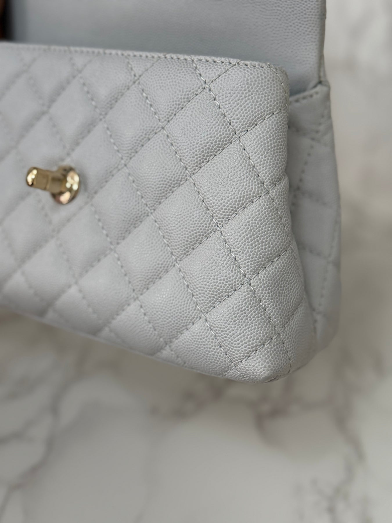 CHANEL 18P series 27 Light Grey Caviar LGHW Coco Handle Size Small with Detachable Shoulder strap