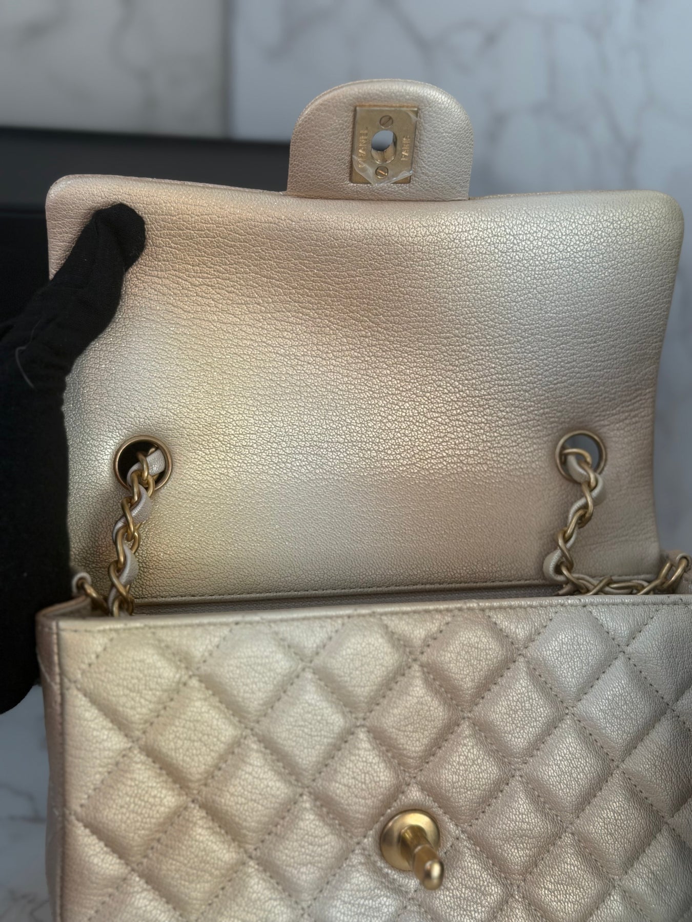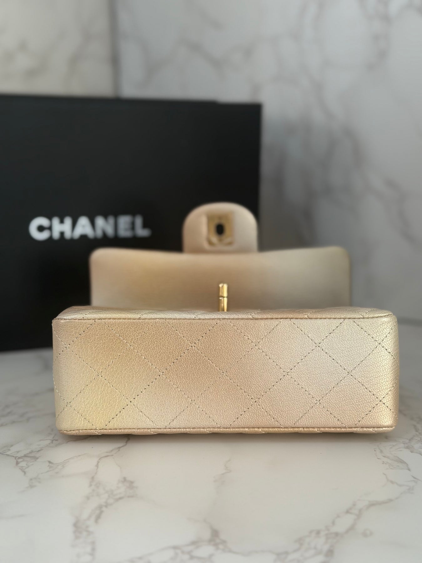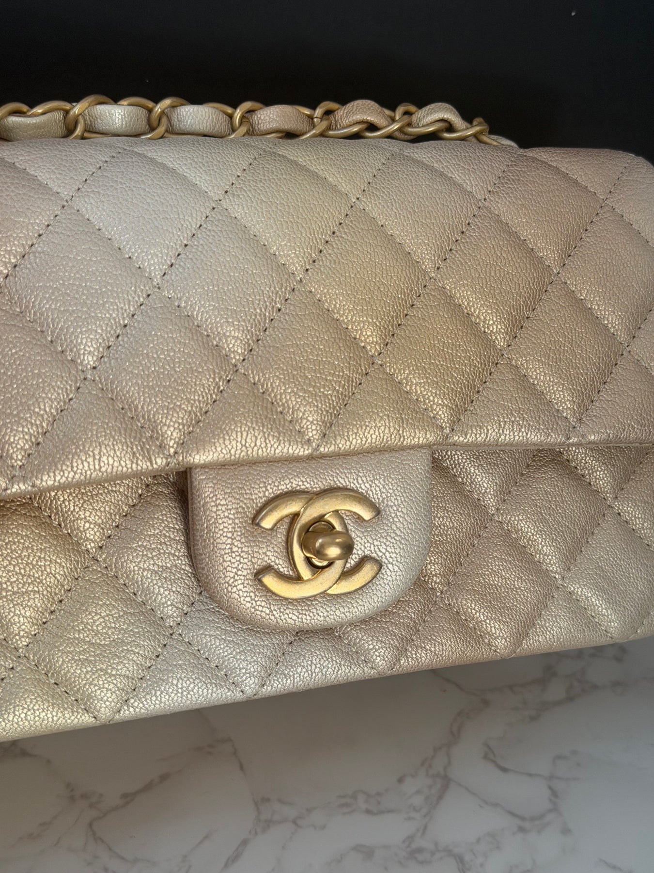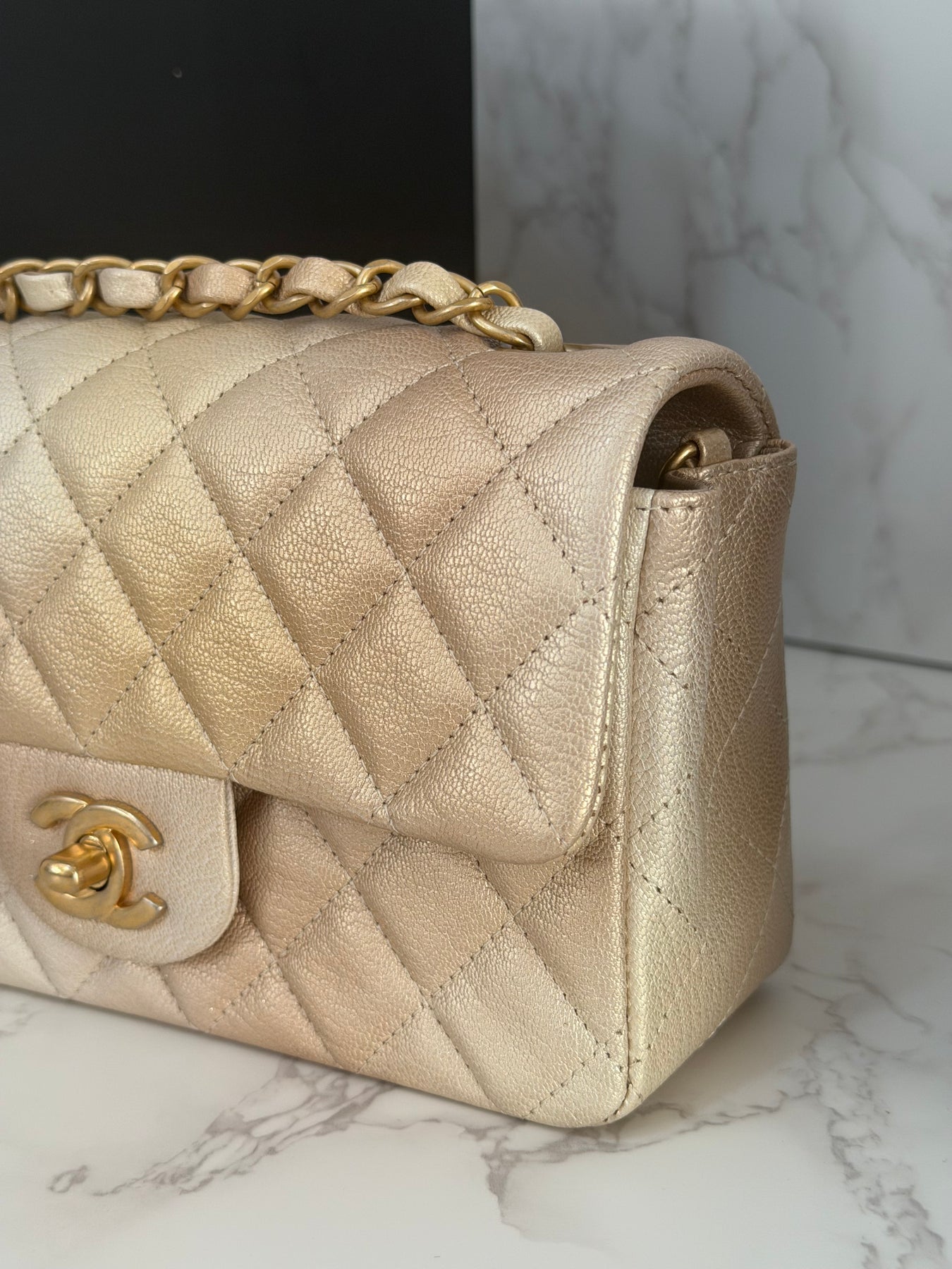 CHANEL 22P Gold Silver Ombré Goat skin Mini Rectangular Flap Bag with Aged GHW 2022