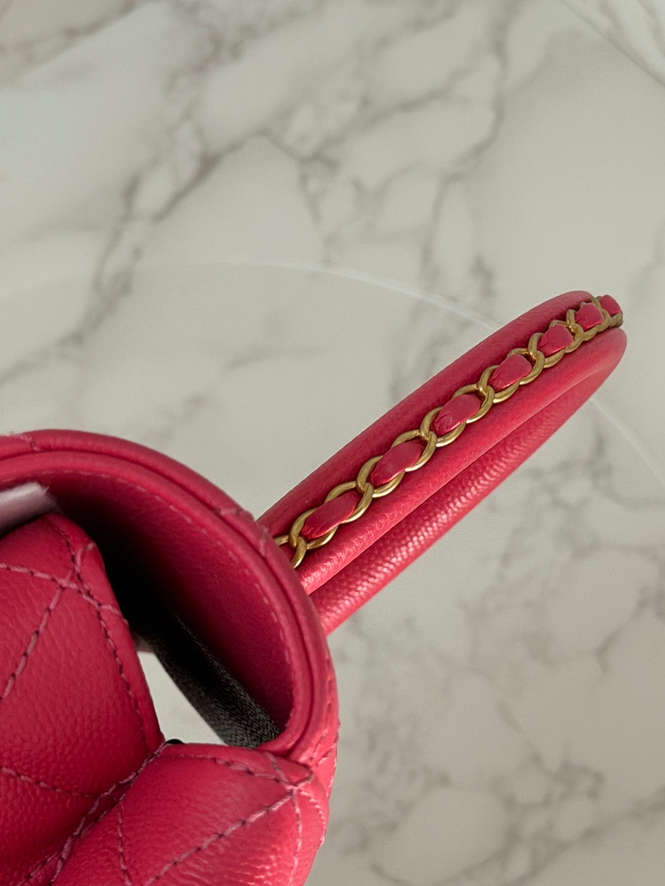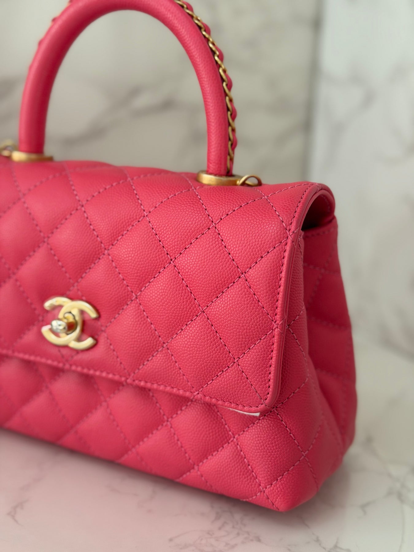 Chanel 23P Collection 2023 Dark Pink Caviar Aged GHW Coco Handle with Detachable Strap and enchained handle size Small