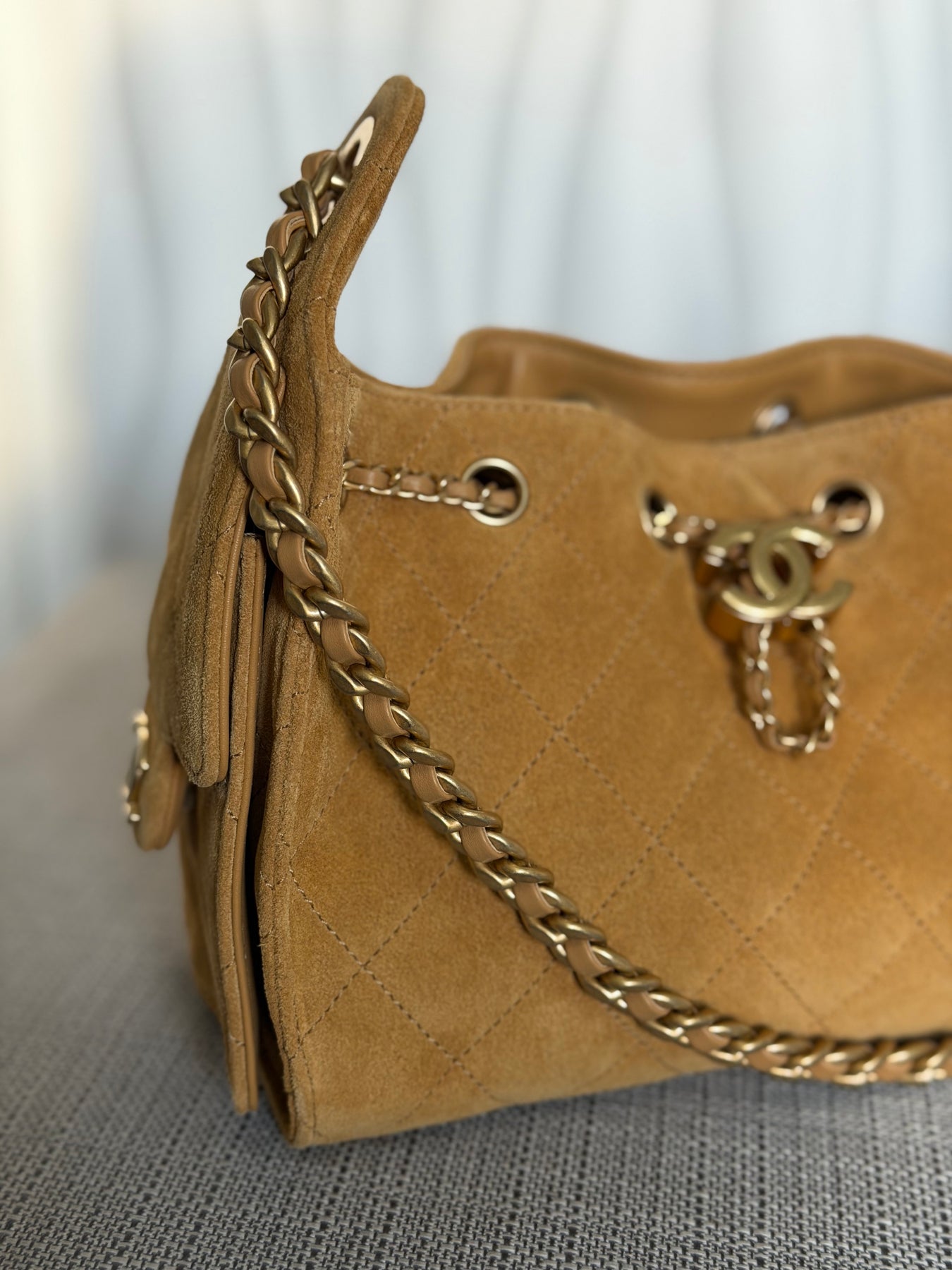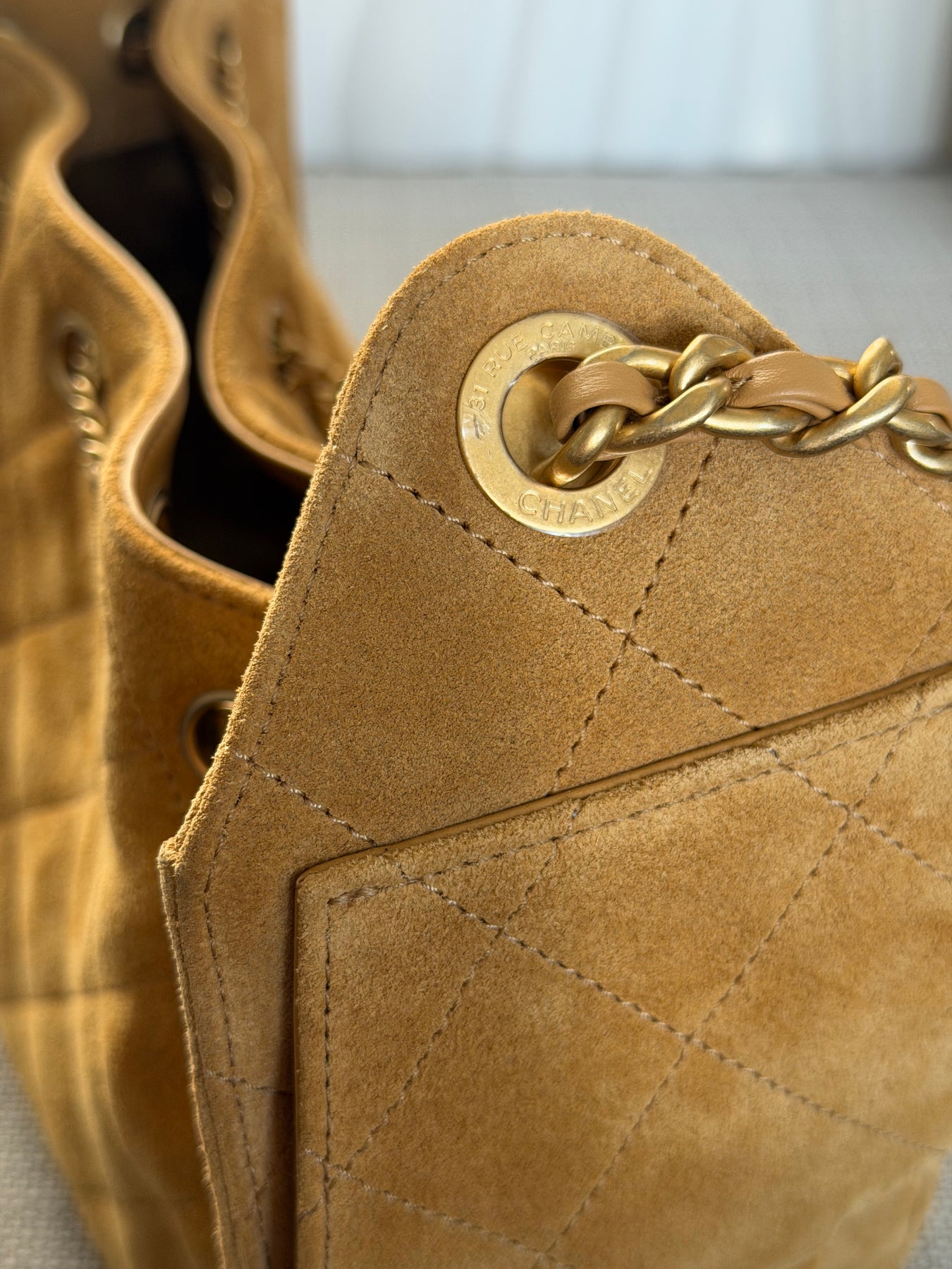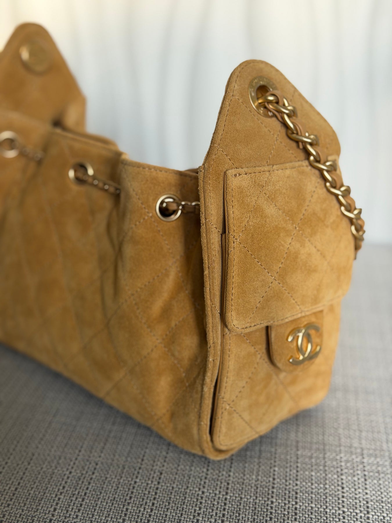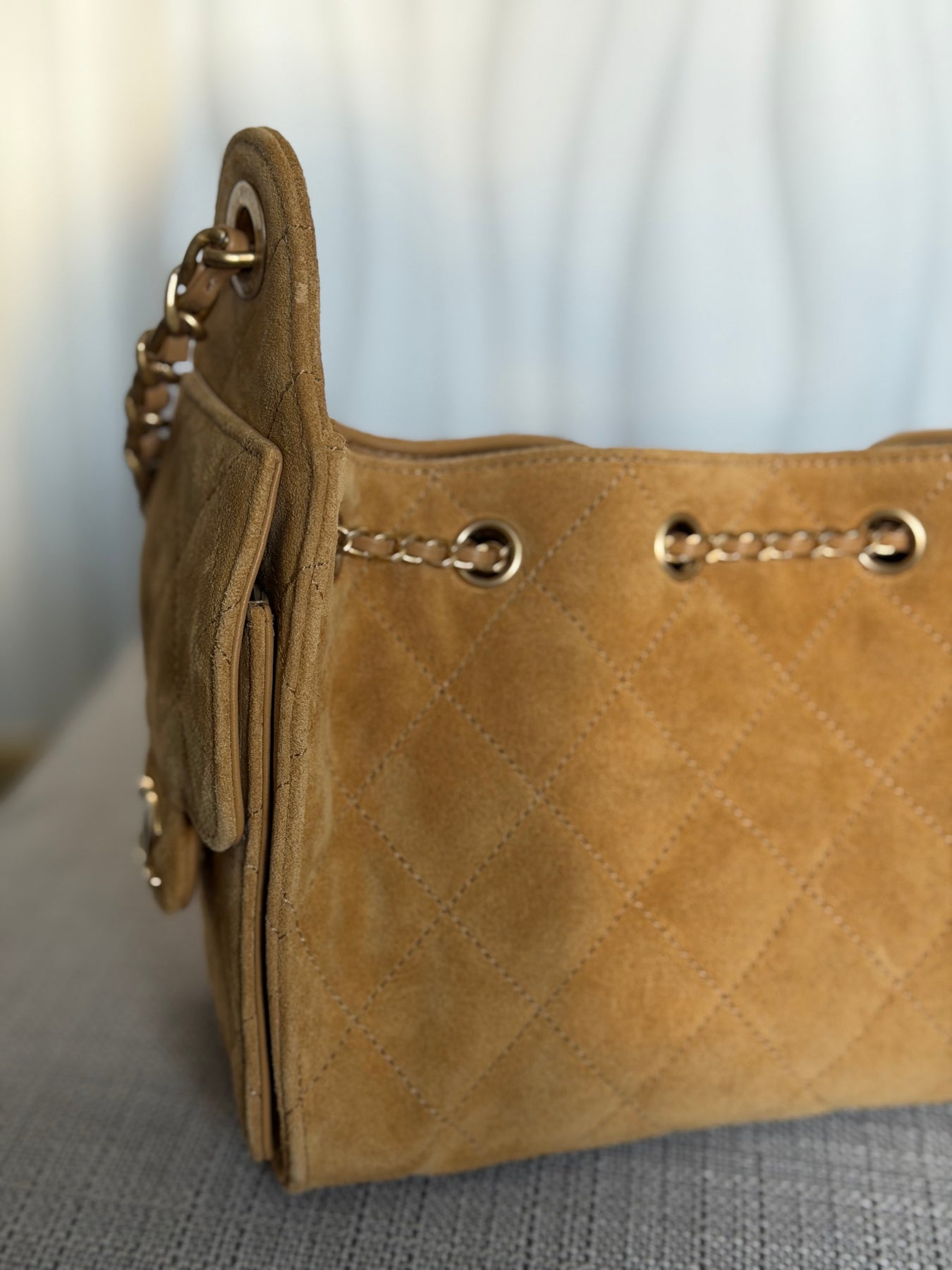 CHANEL 26C Dark Beige Camel Suede U5319 Aged GHW Mini 25 Hobo Bag
