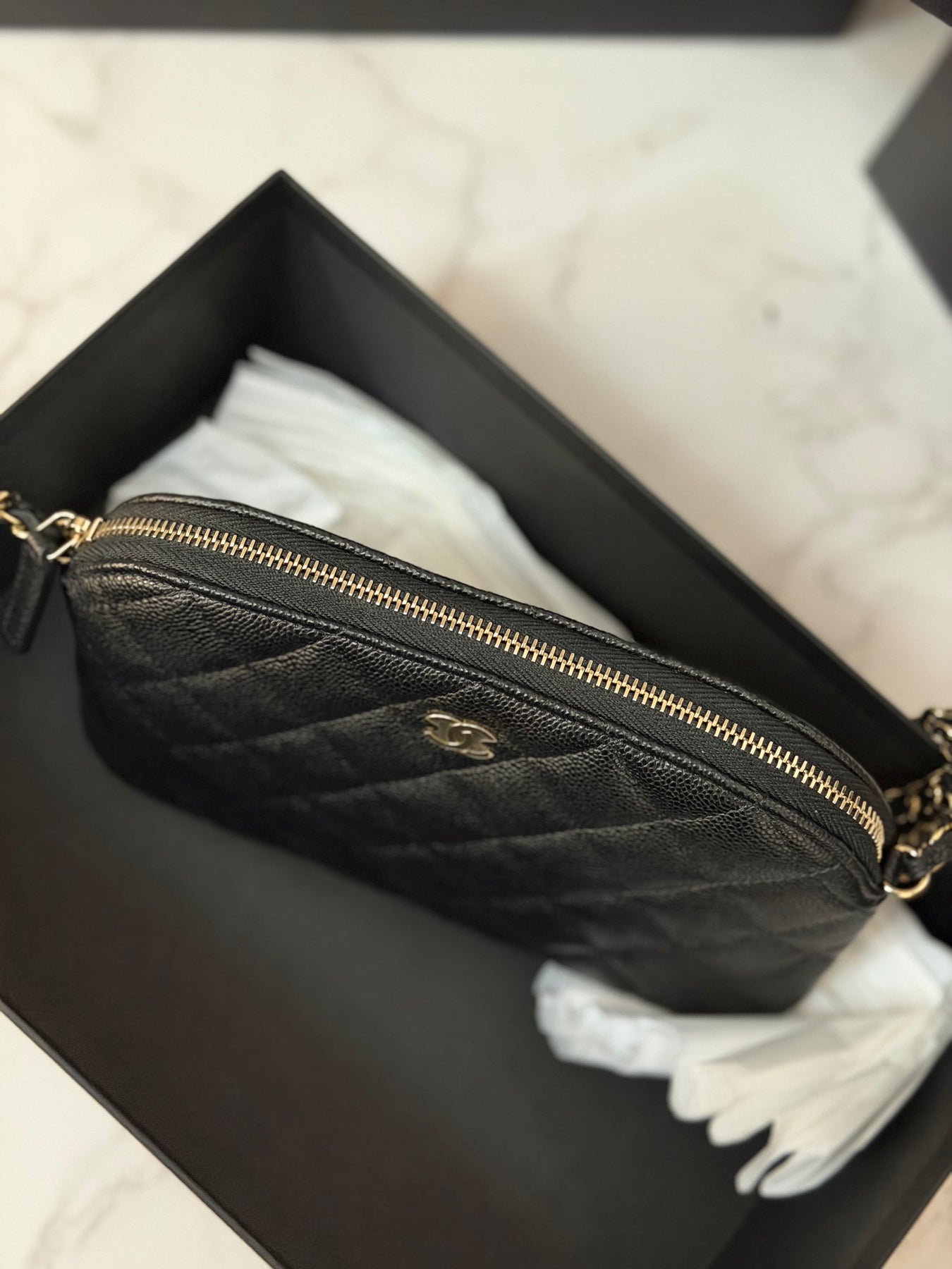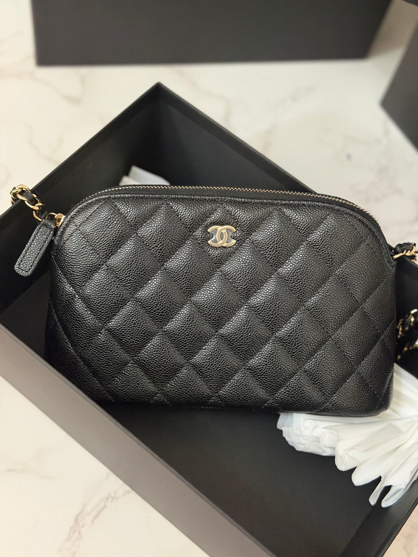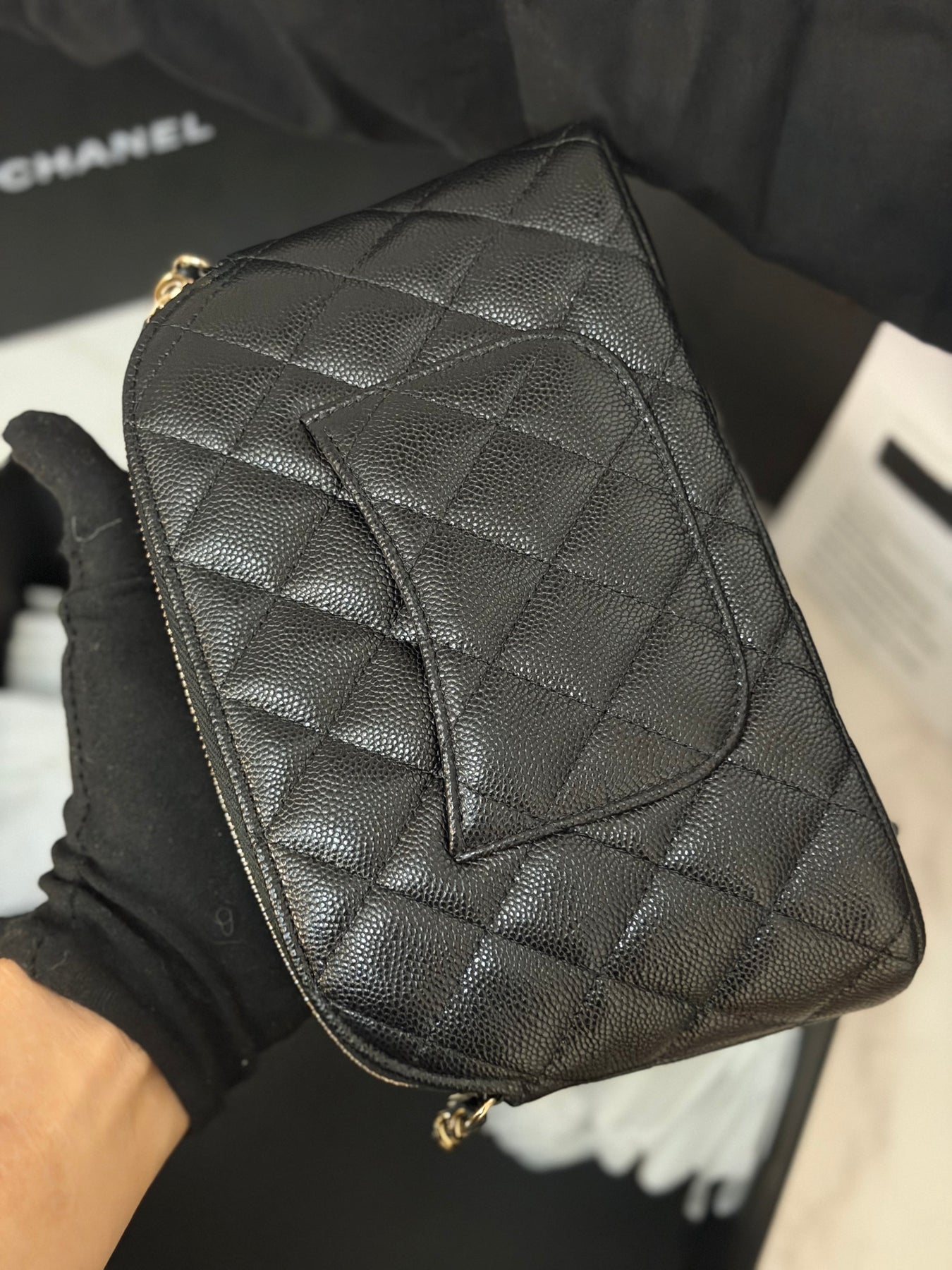 CHANEL Black caviar LGHW Vanity Bag with Chain