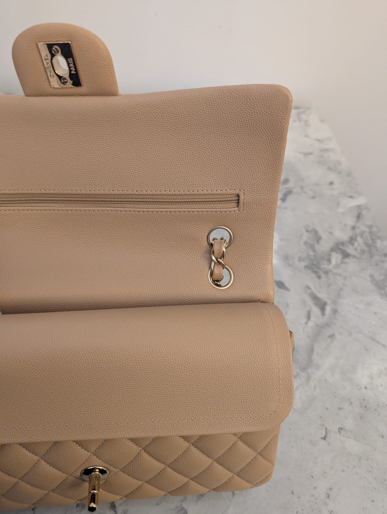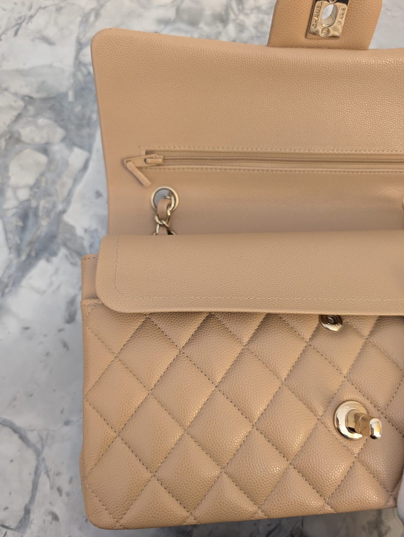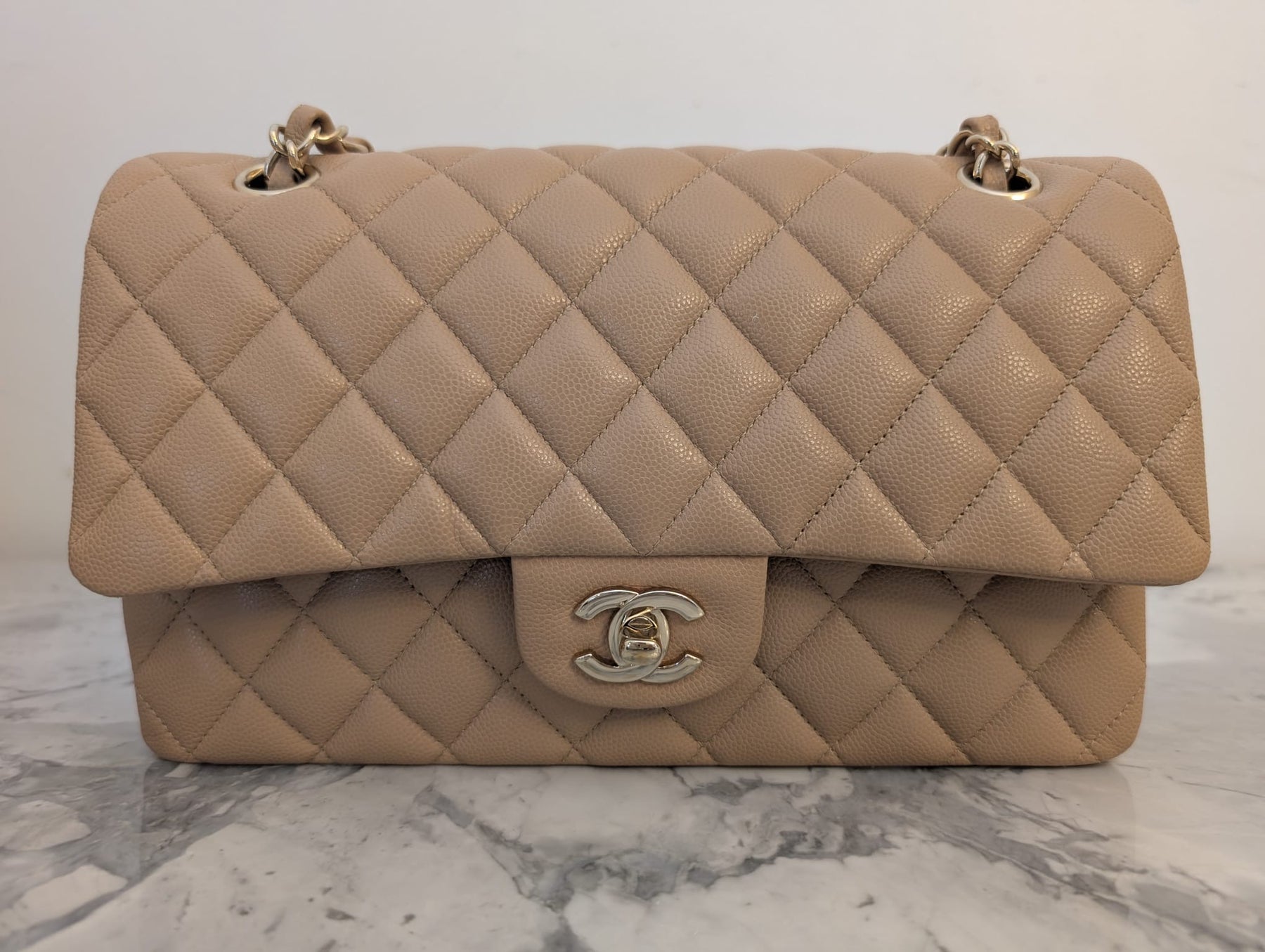 CHANEL series 28 19B collection Dark Beige Caviar LGHW Medium M/L Timeless Classic Double Flap Bag 11.12