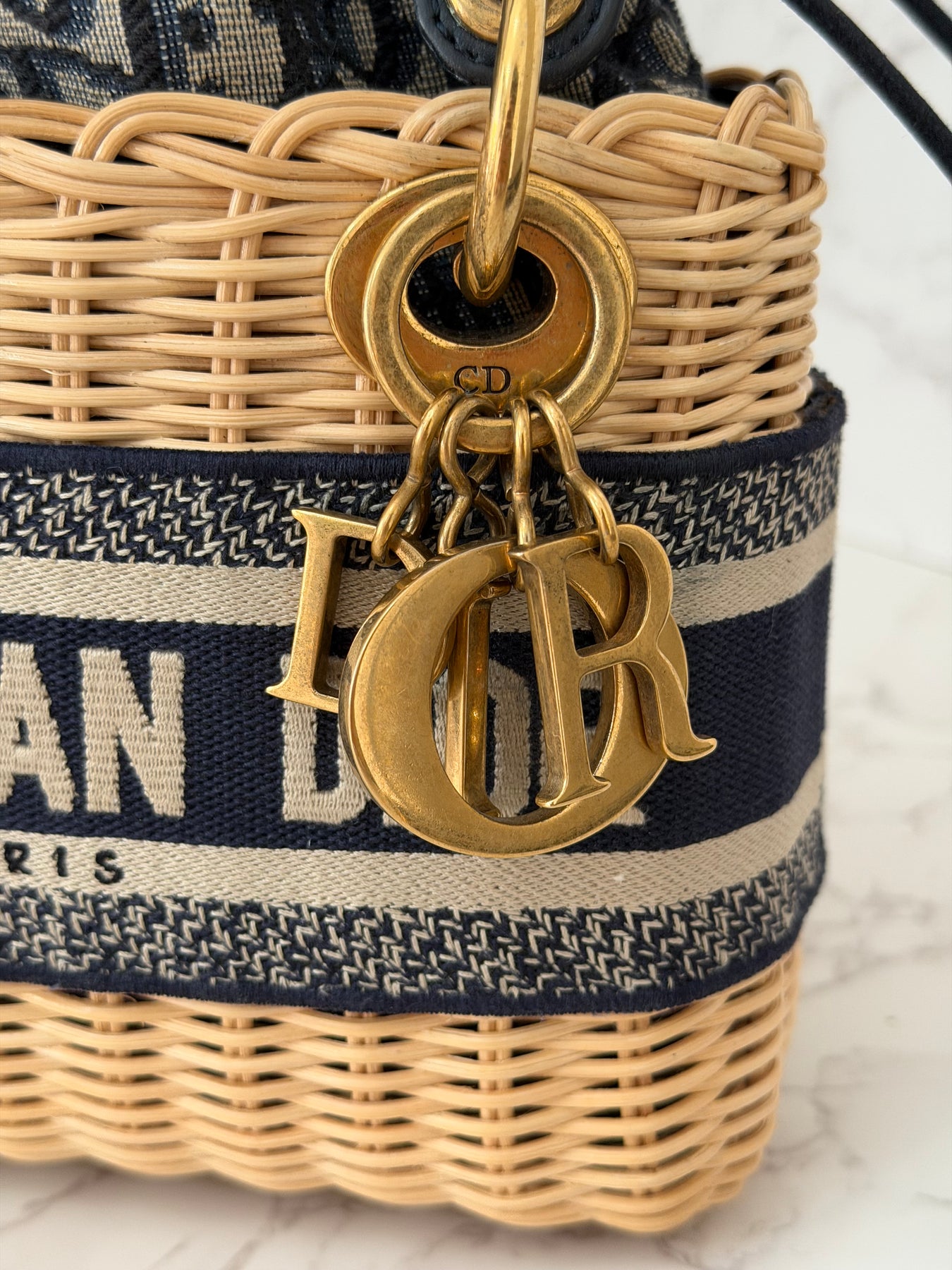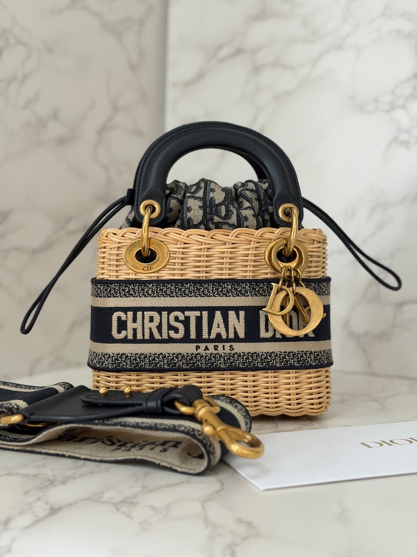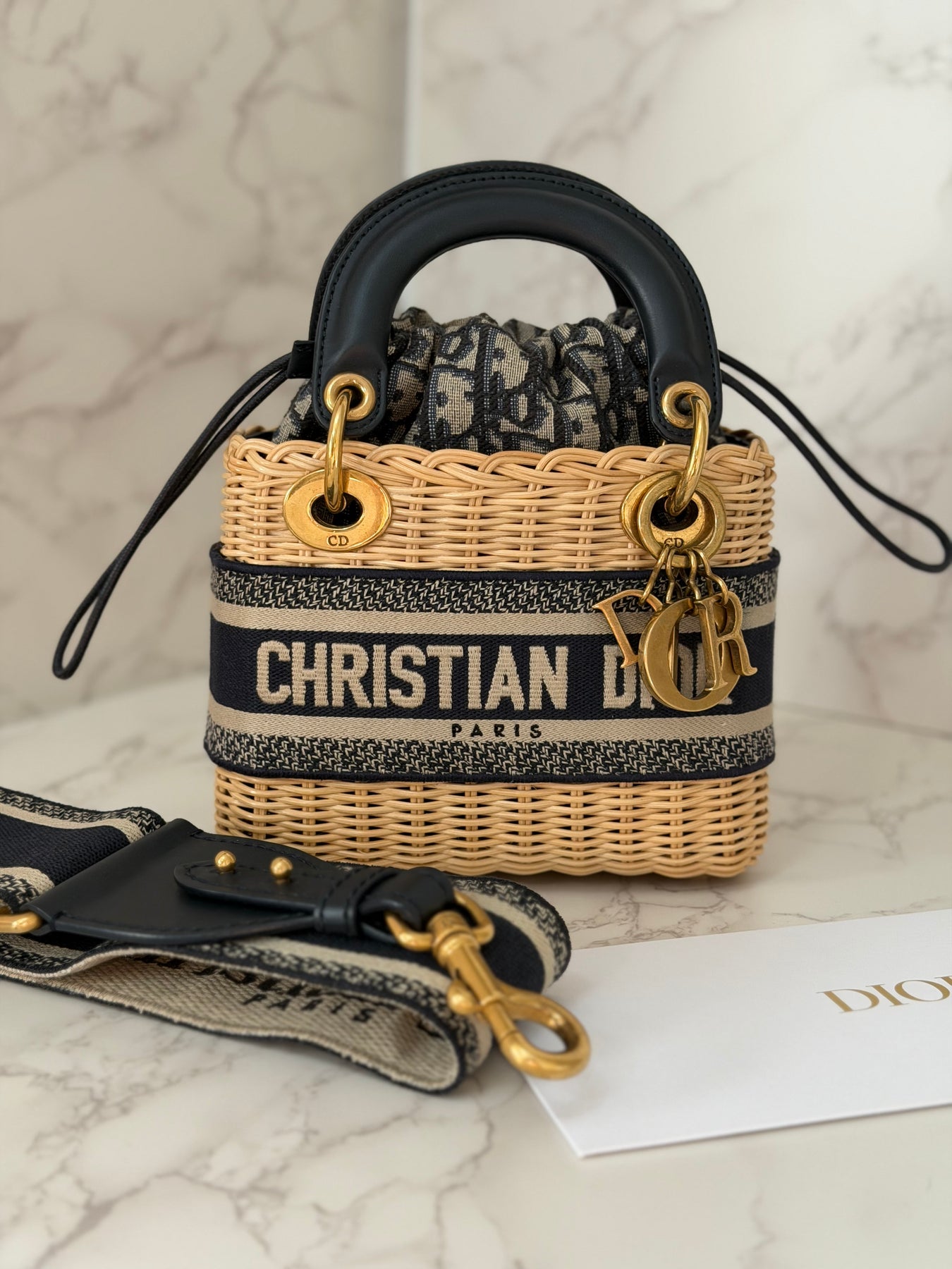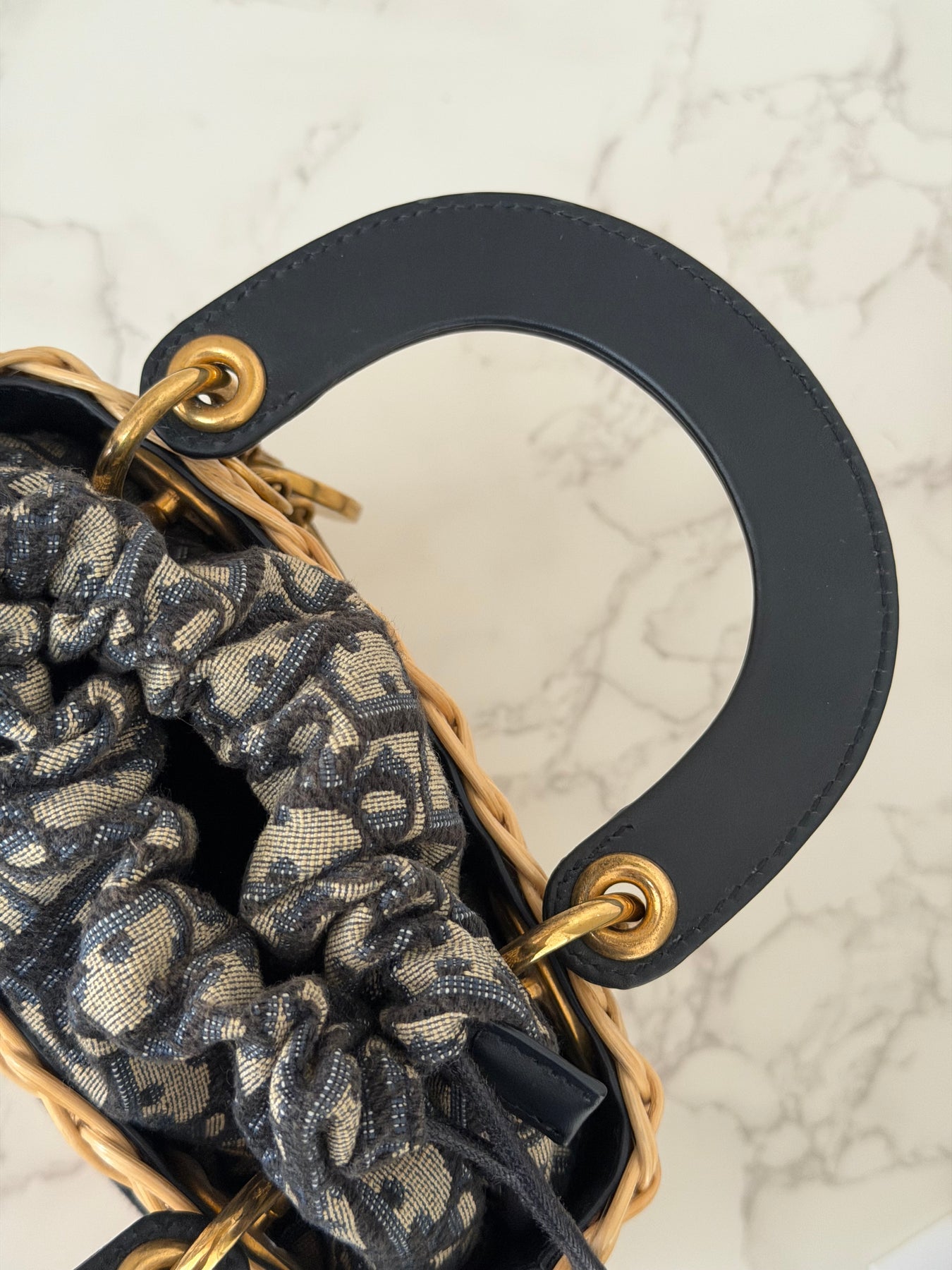 DIOR Lady Dior Wicker Bag Oblique Canvas in Black and Cream size Mini 2022