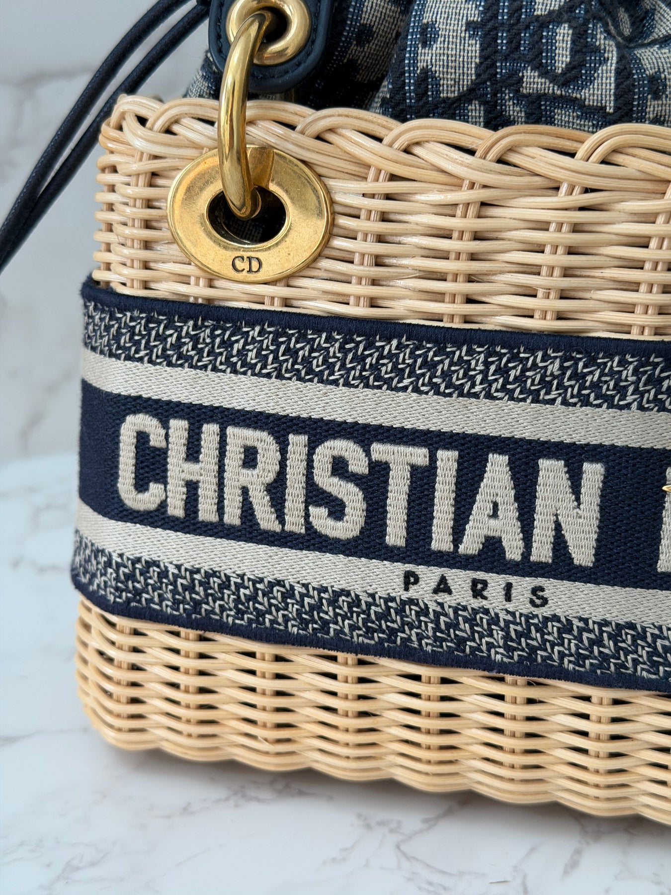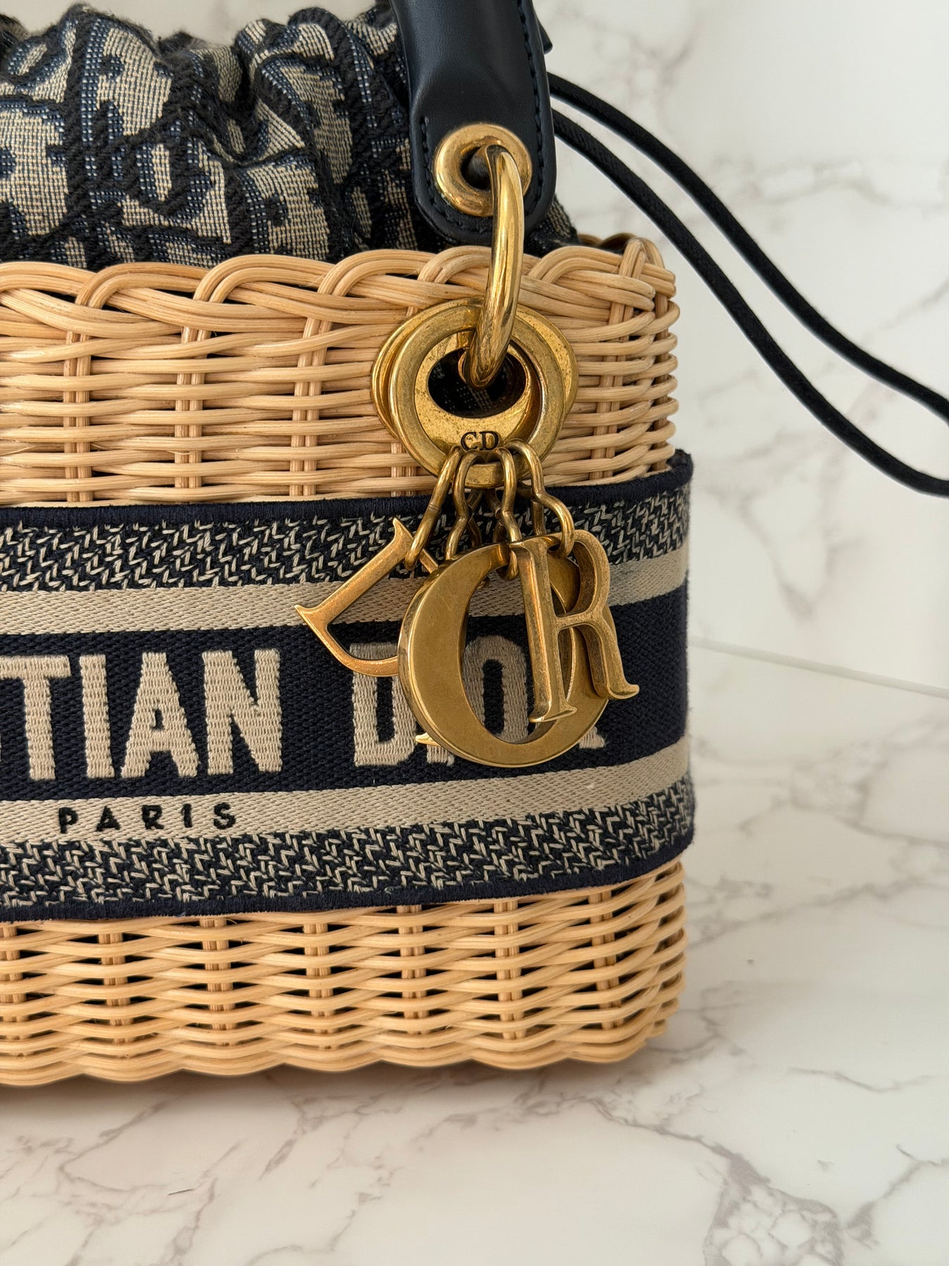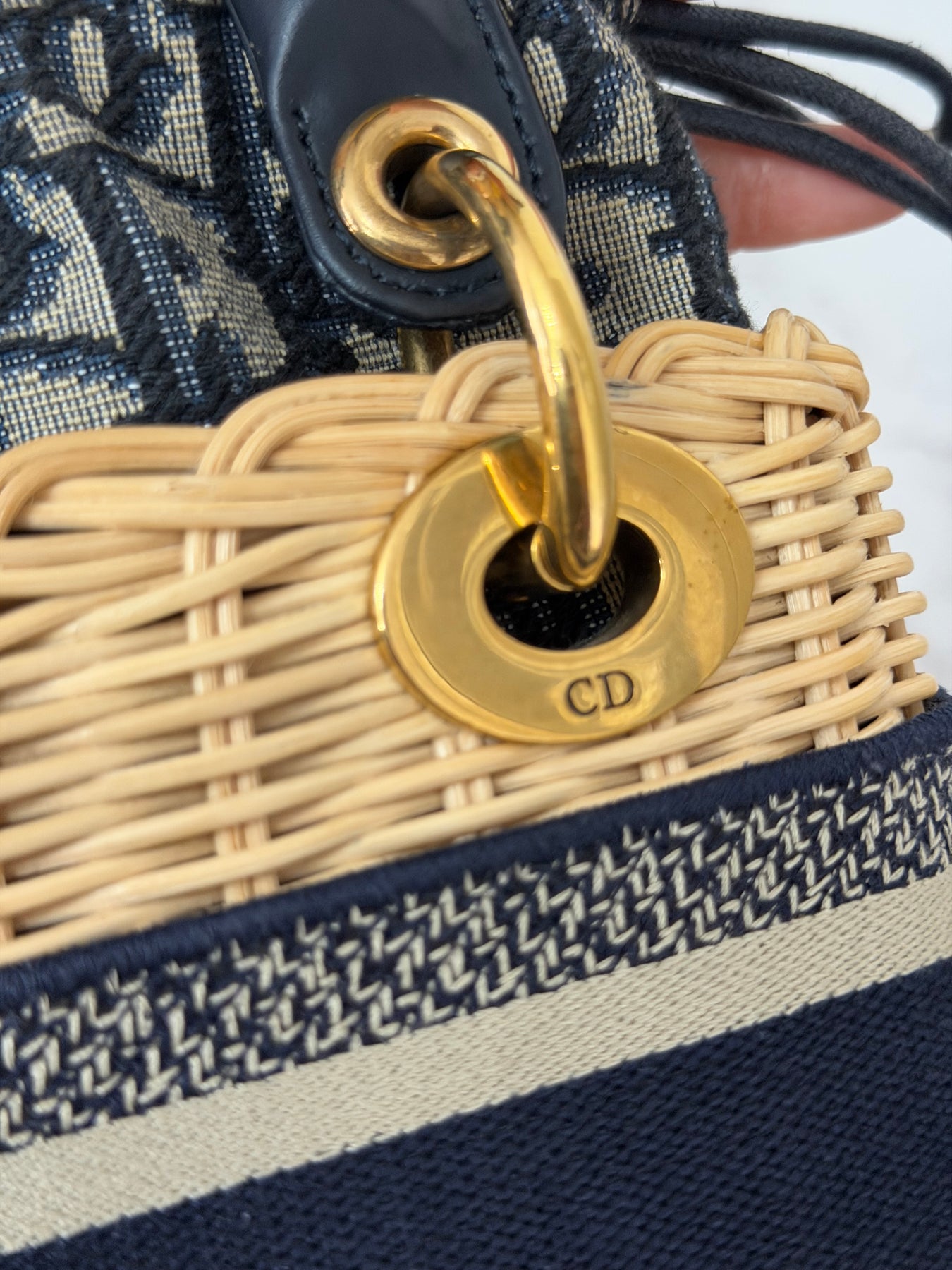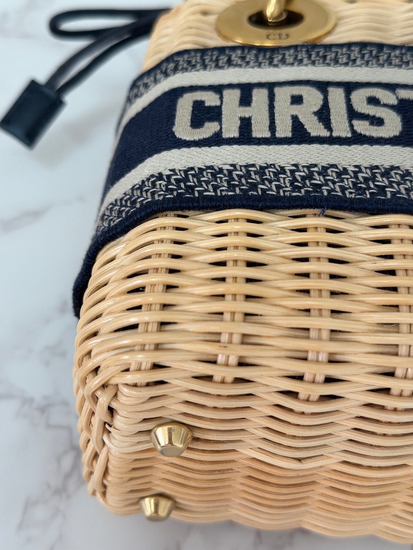 DIOR Lady Dior Wicker Bag Oblique Canvas in Black and Cream size Mini 2022