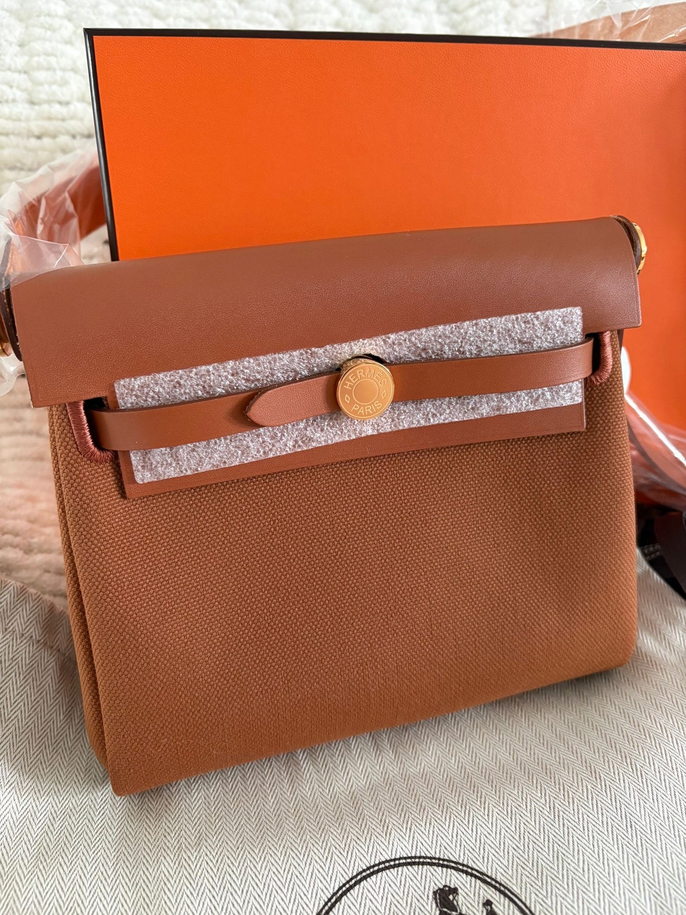Hermès Gold Vache Hunter and Toile Mini Herbag Zip 20 Gold Hardware, 2026