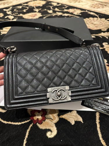 CHANEL series 20 2014/2015 Black Caviar Ruthenium Hardware Old Medium Le Boy Flap Bag