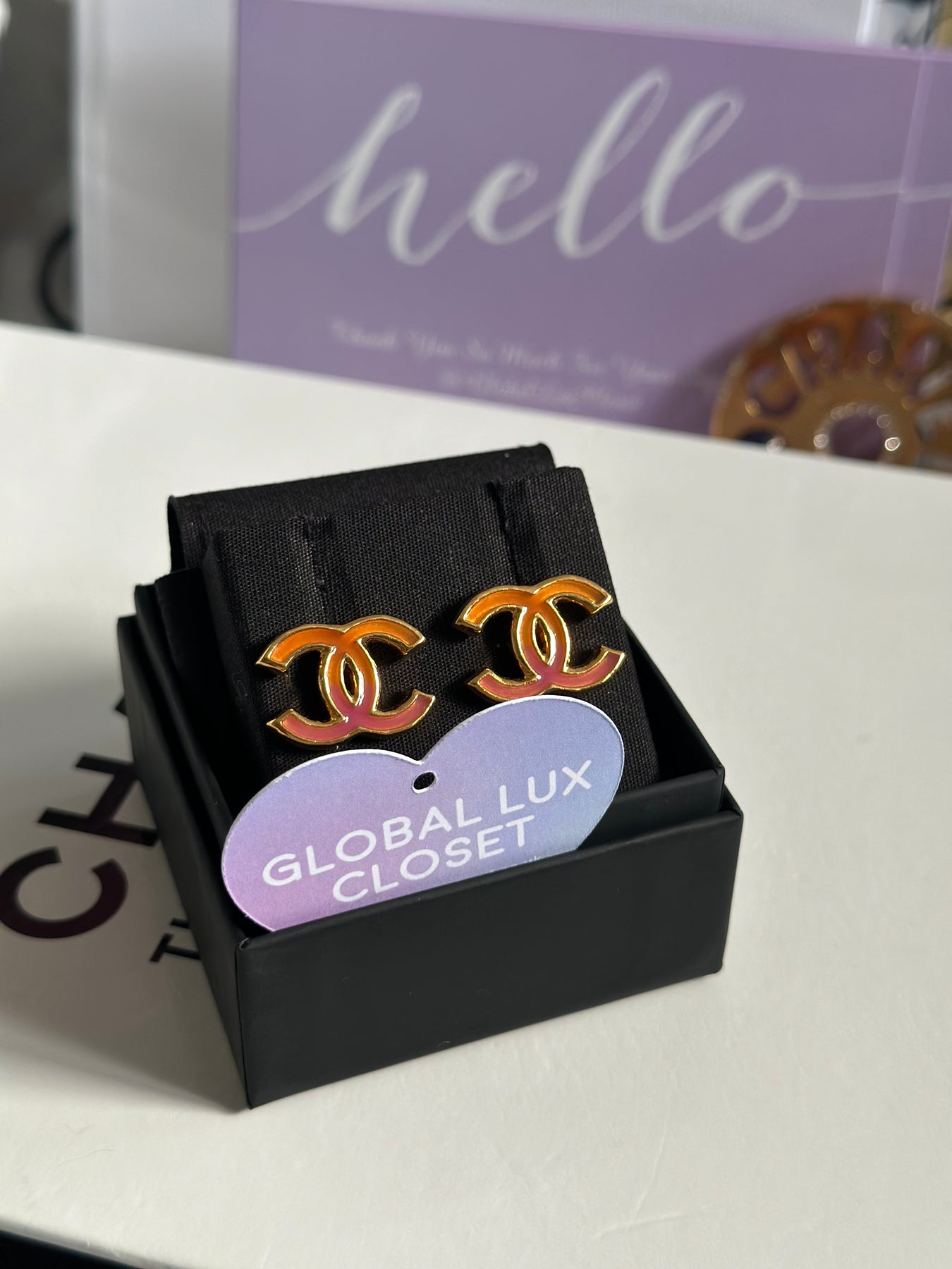 Chanel 23C Ombré Pink and orange Gold tone earrings