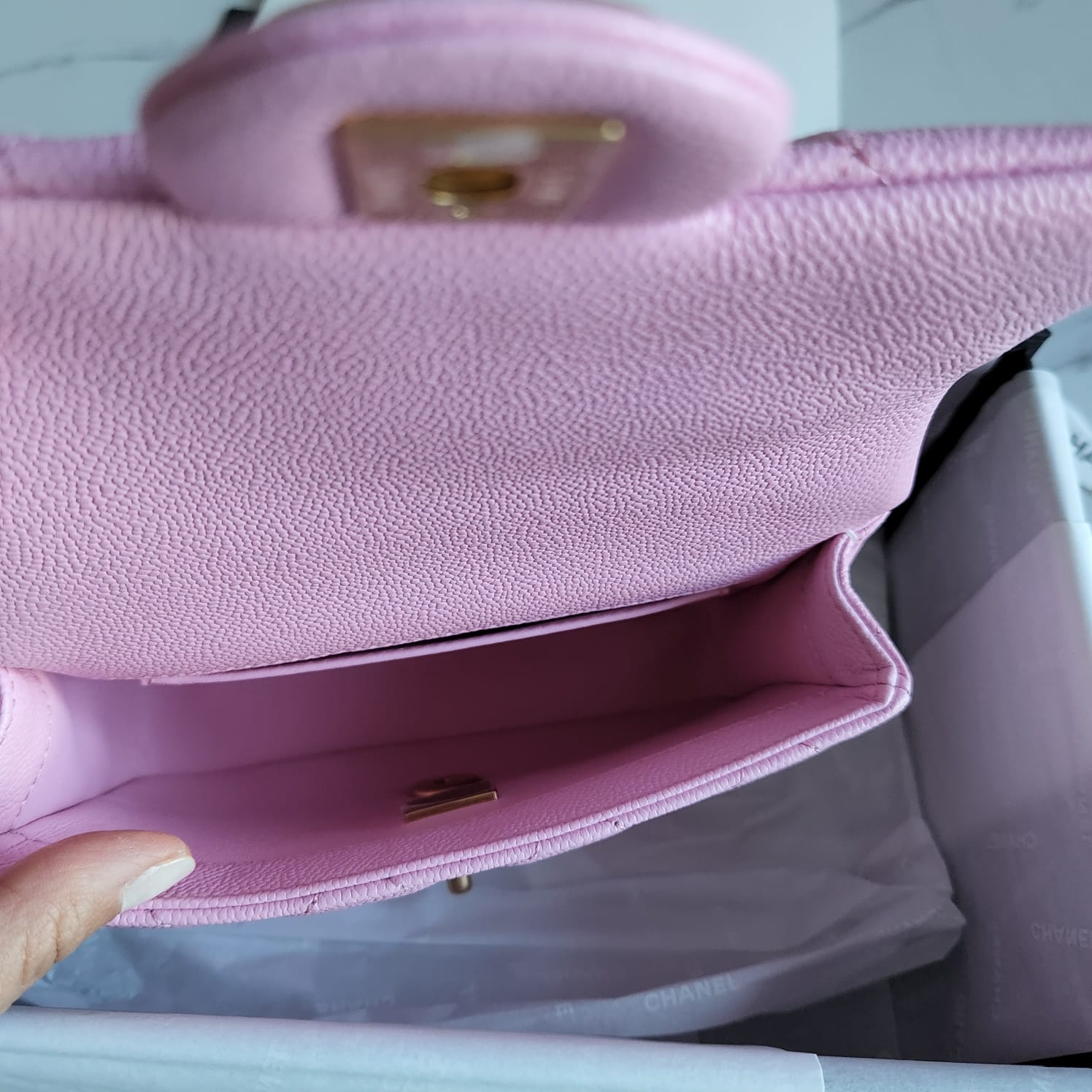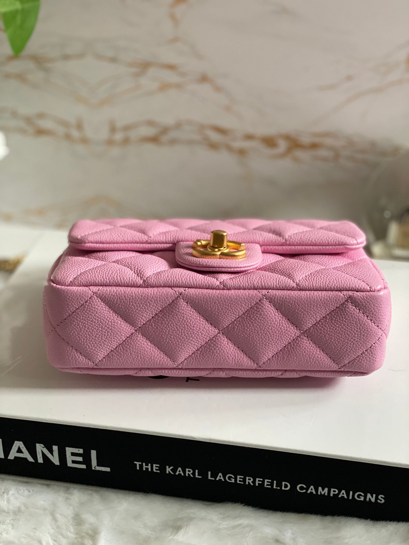 Chanel 23P Pink Caviar Heart Adjustable Mini Rectangular Flap Bag with gold hardware