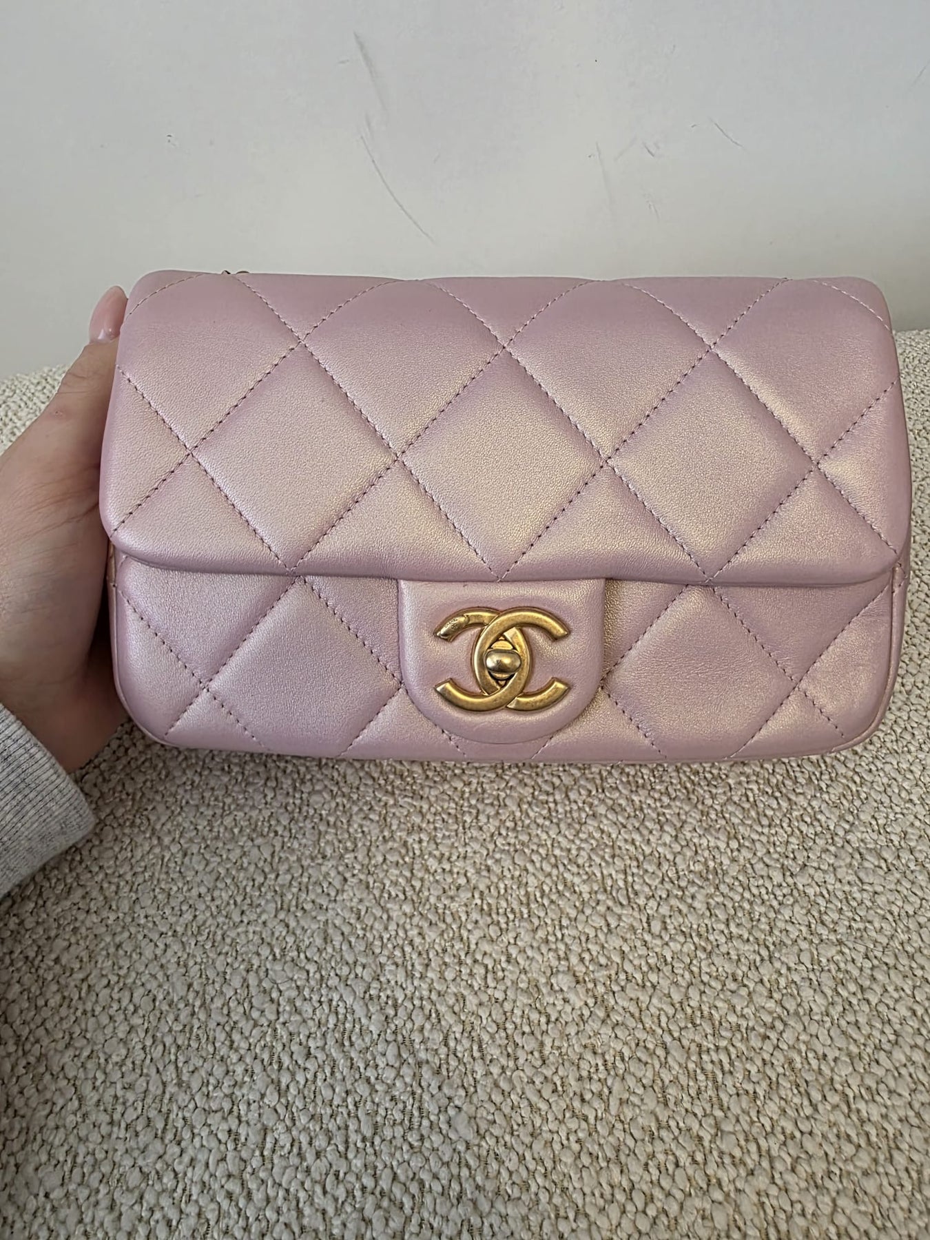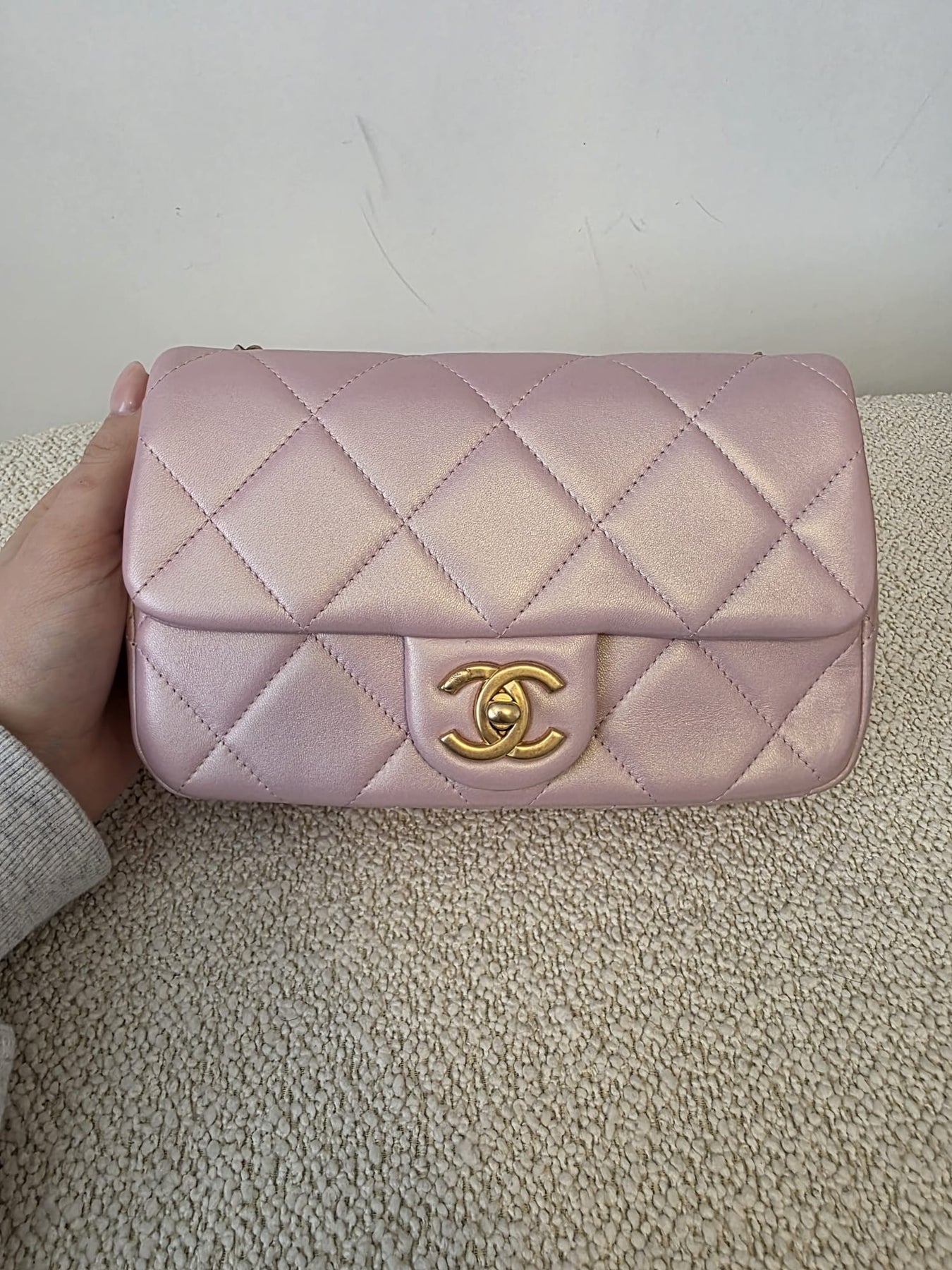 CHANEL 23S Adjustable Pearl Mini (8.25 inches) Rectangular Flap Bag with Pink Lambskin Aged GHW