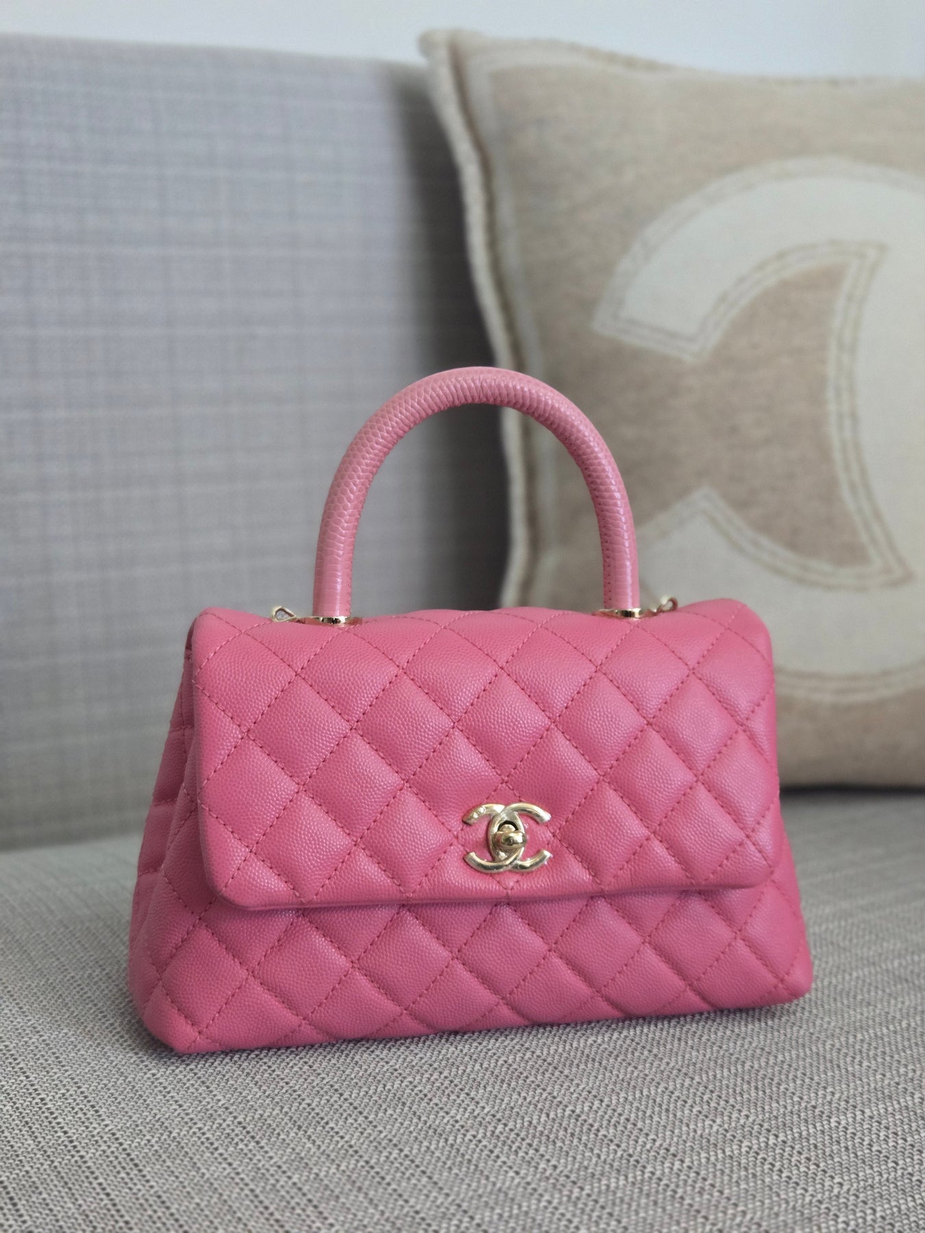 Chanel series 31 21P 2021 Pre Spring/Summer Collection Pink Caviar Coco Handle Flap Bag with Top Handle and Detachable Strap (A92990)