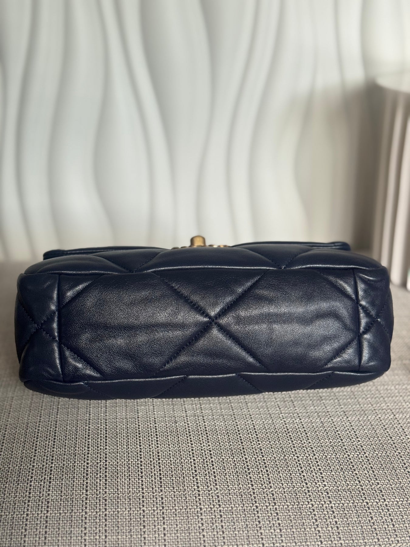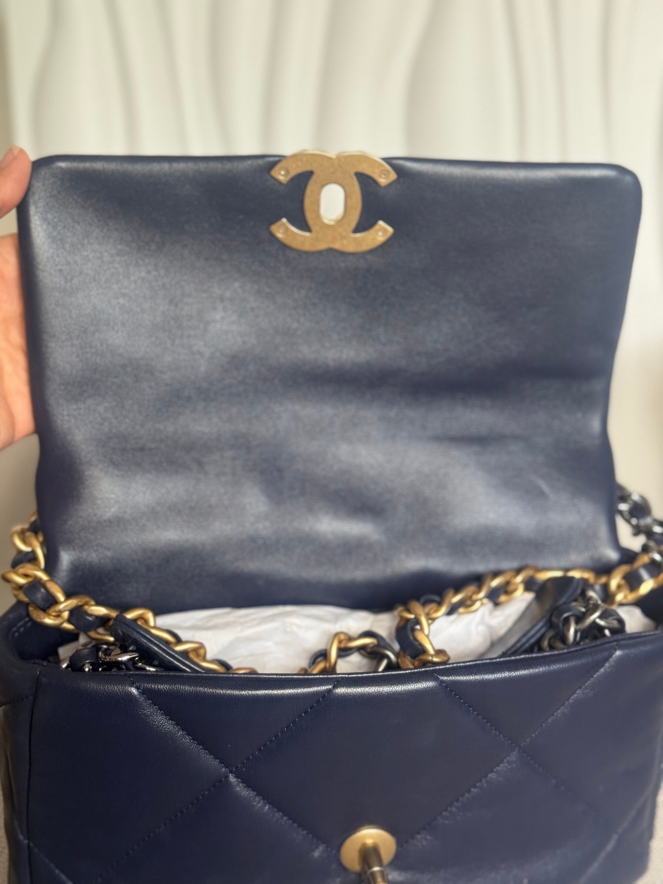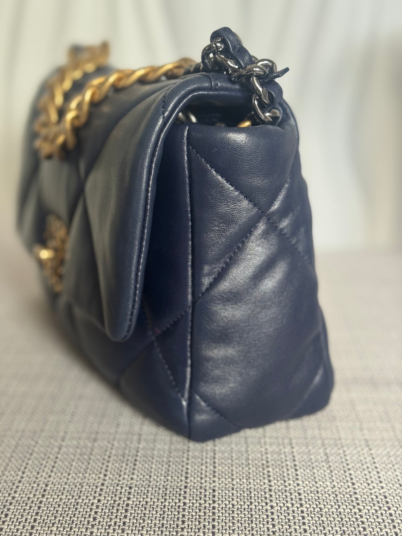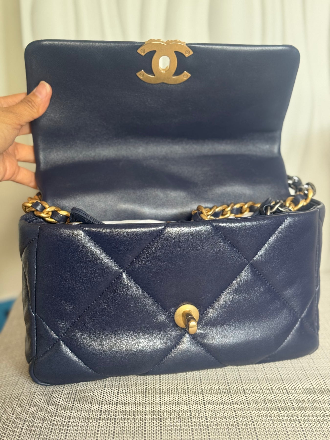 CHANEL 19 Size SMALL 26 cms series 31 Navy Lambskin Mixed Hardware Flap Bag with top handle