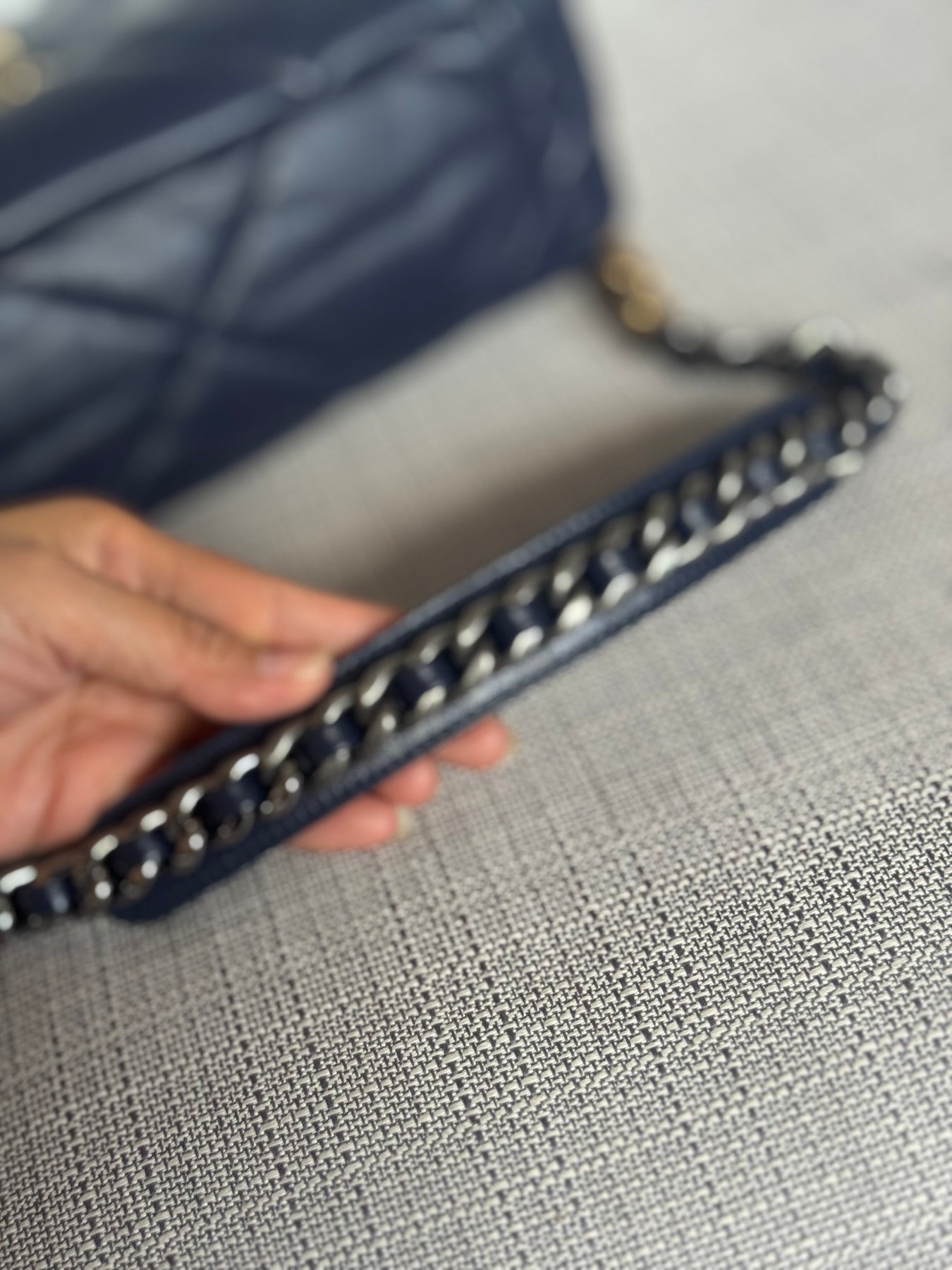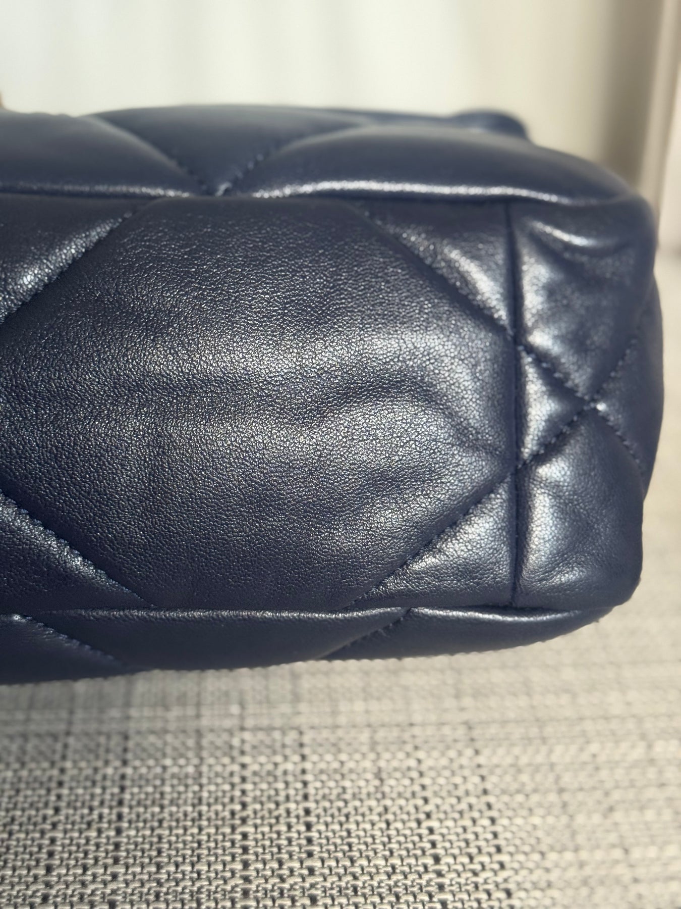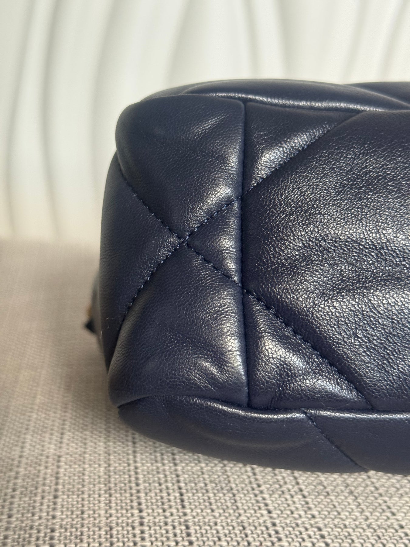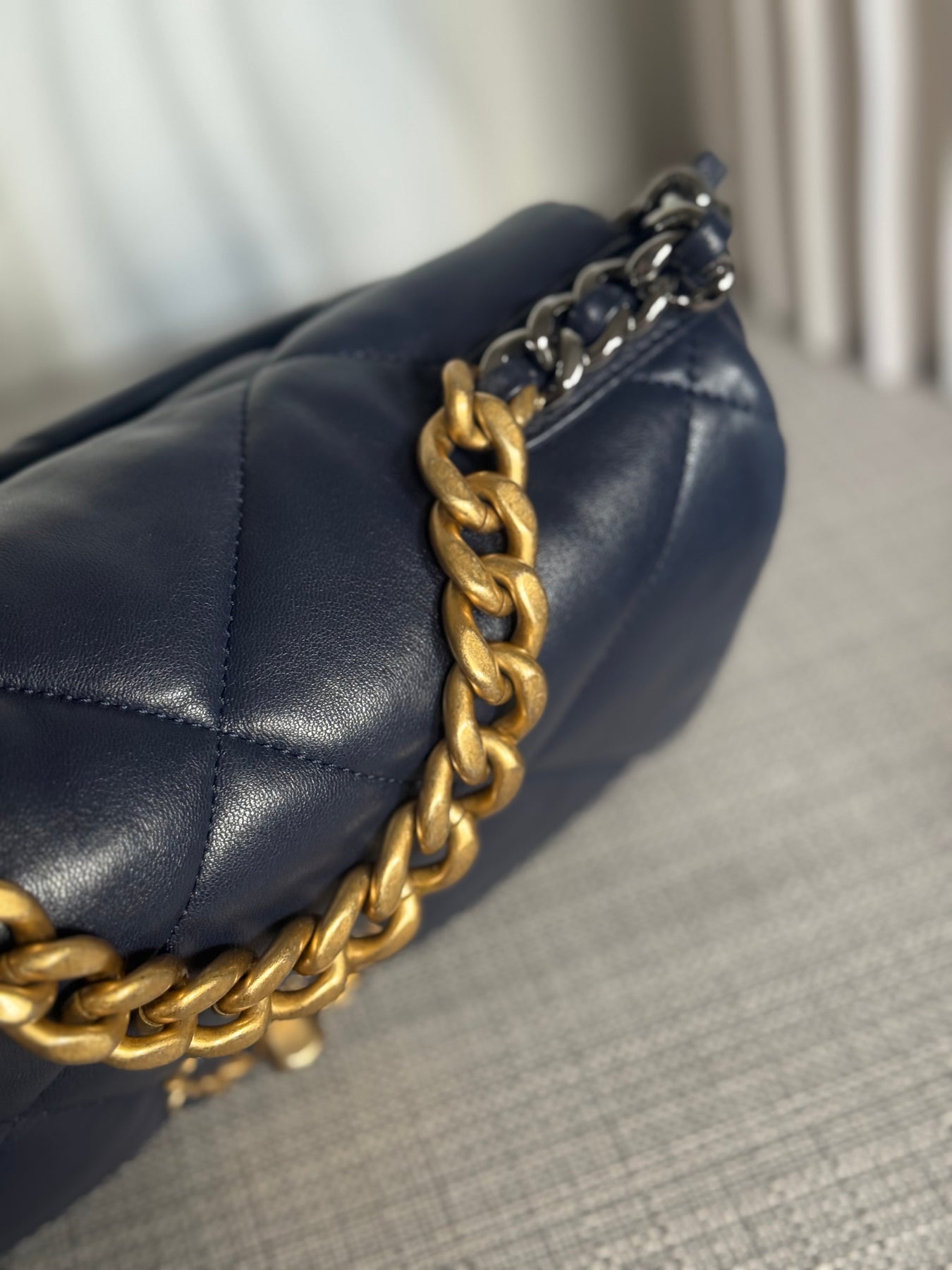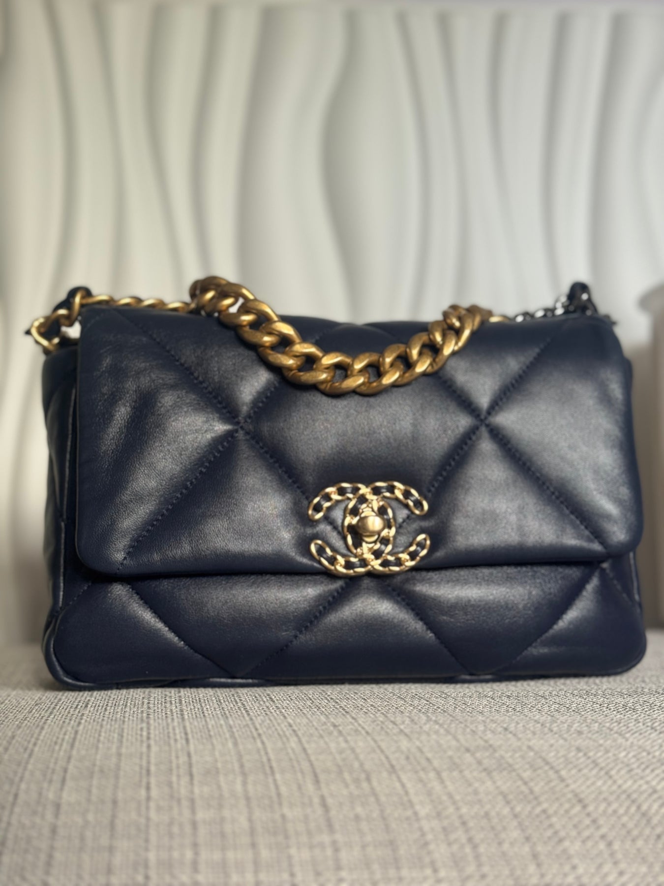 CHANEL 19 Size SMALL 26 cms series 31 Navy Lambskin Mixed Hardware Flap Bag with top handle