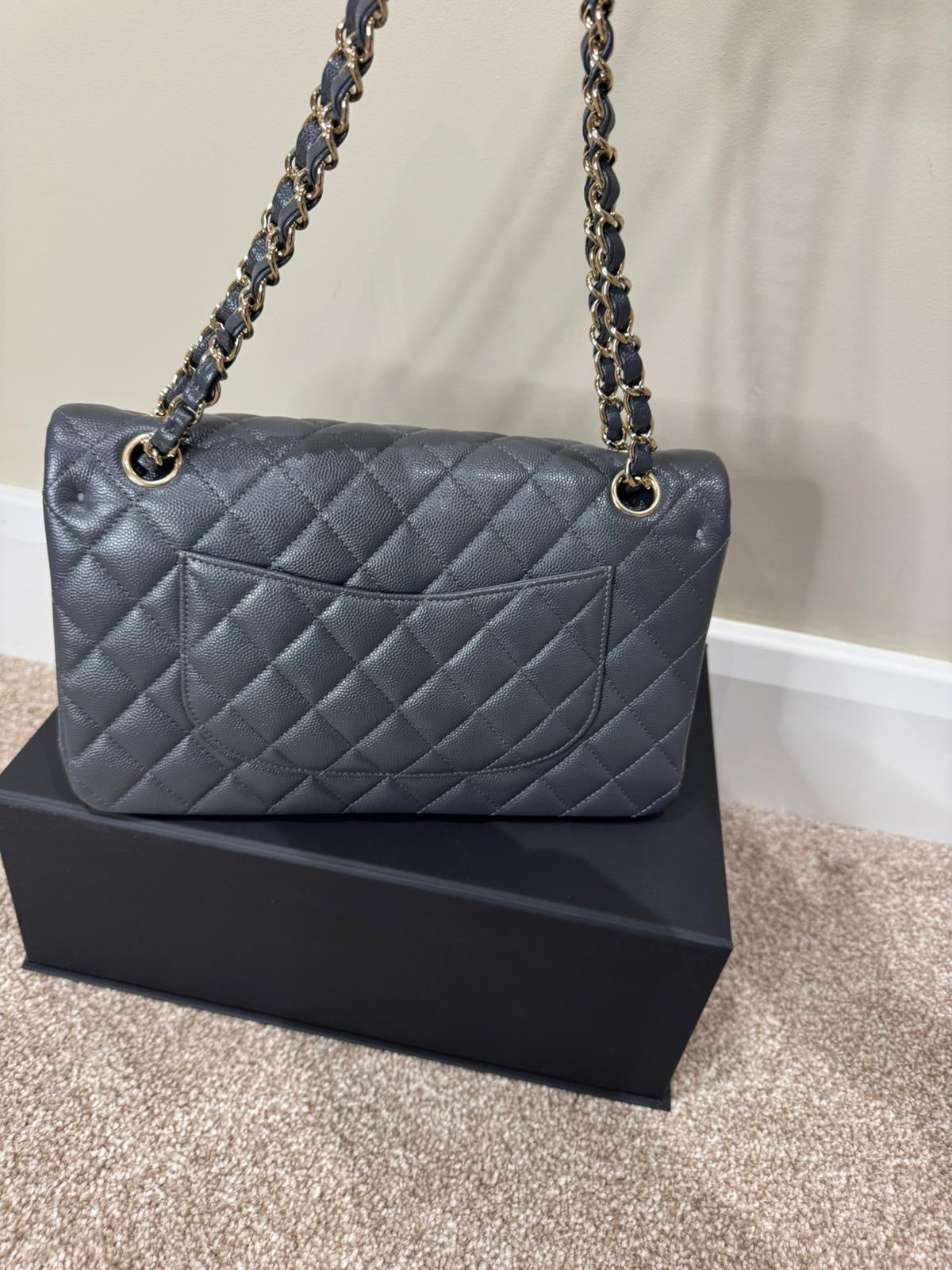 CHANEL 21B 2021 Dark Grey Caviar LGHW Medium ML Timeless Classic Double Flap Bag