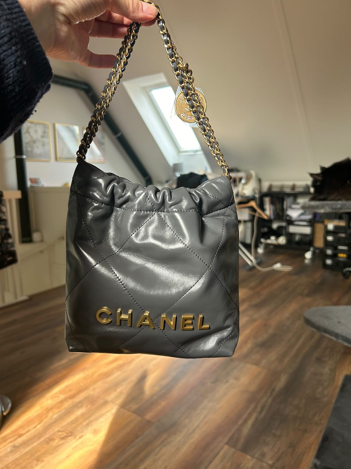 Chanel 22 size Mini in Grey 2022 GHW Hobo bag