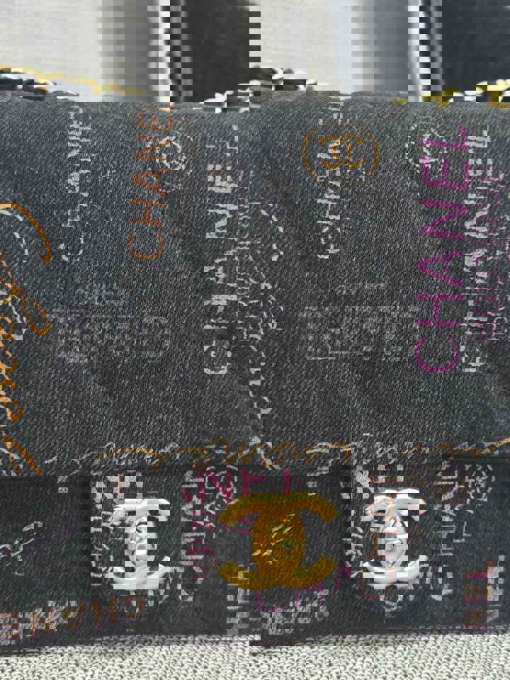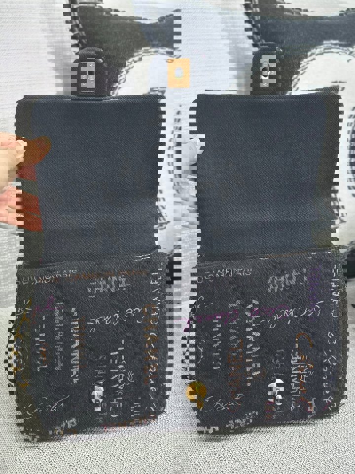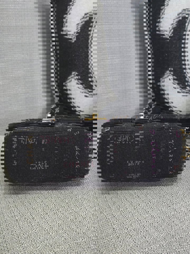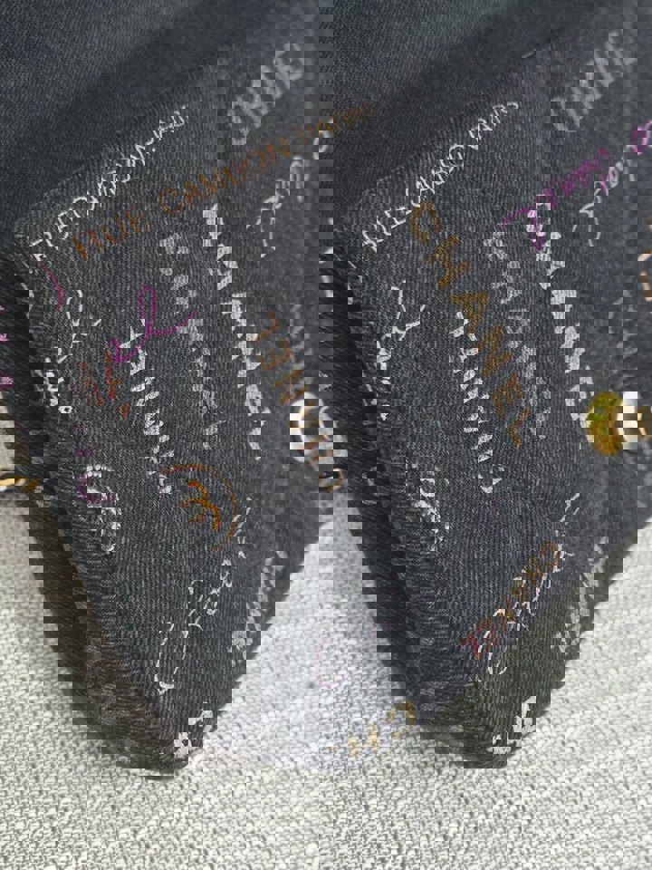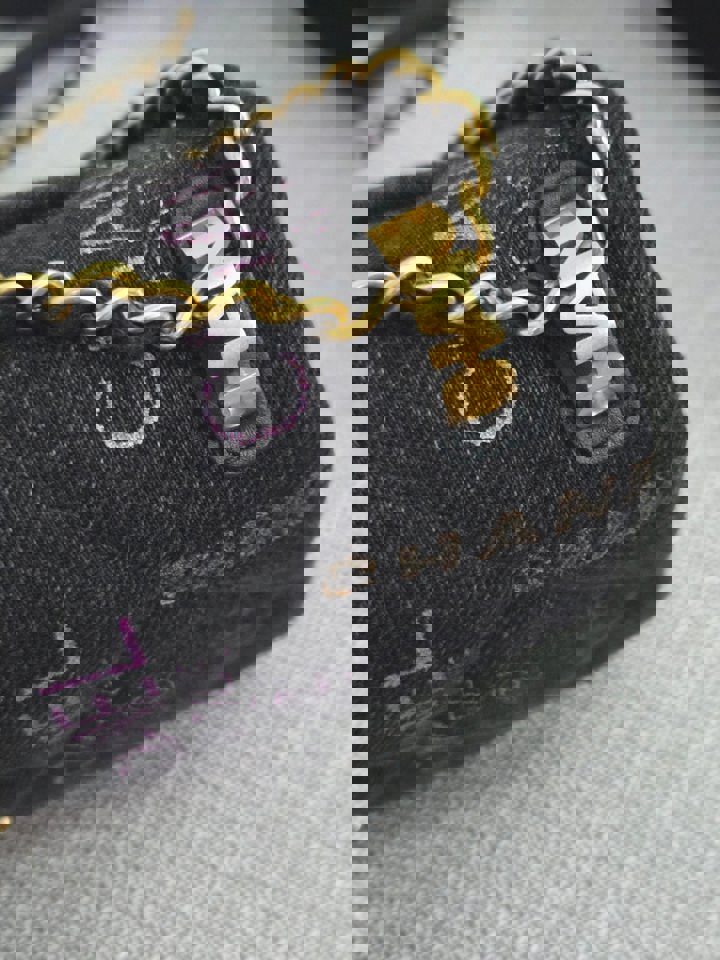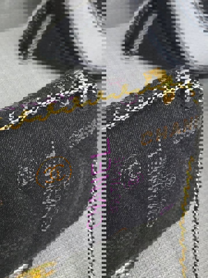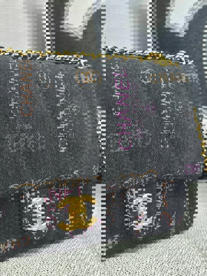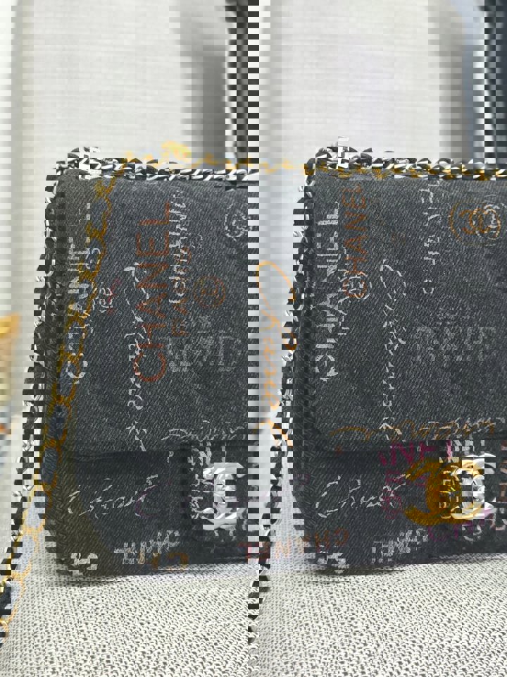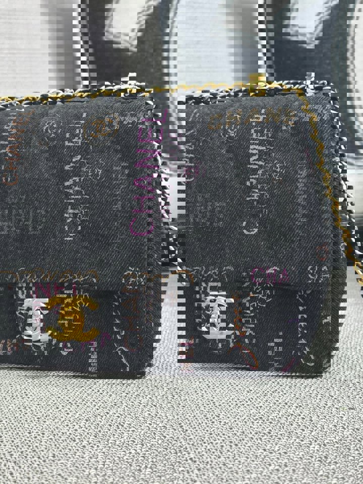 Chanel 22P collection Black Denim Mood Flap Bag with Aged GHW size Medium (25 cms)