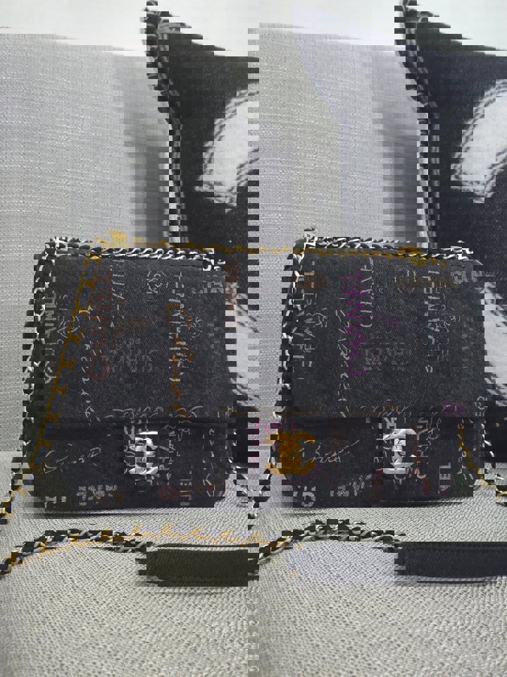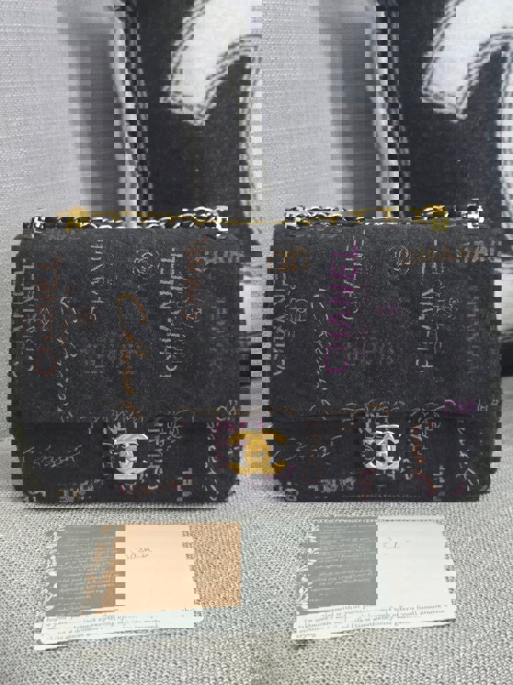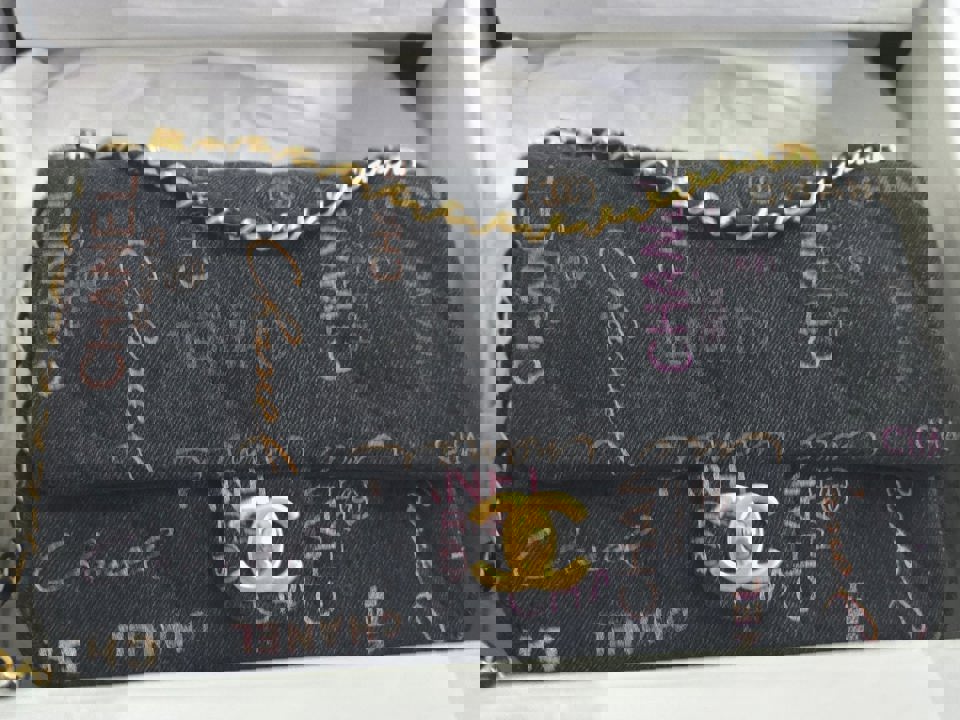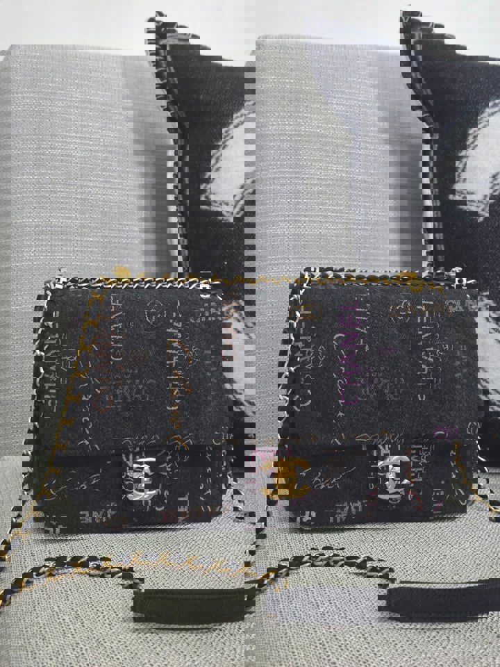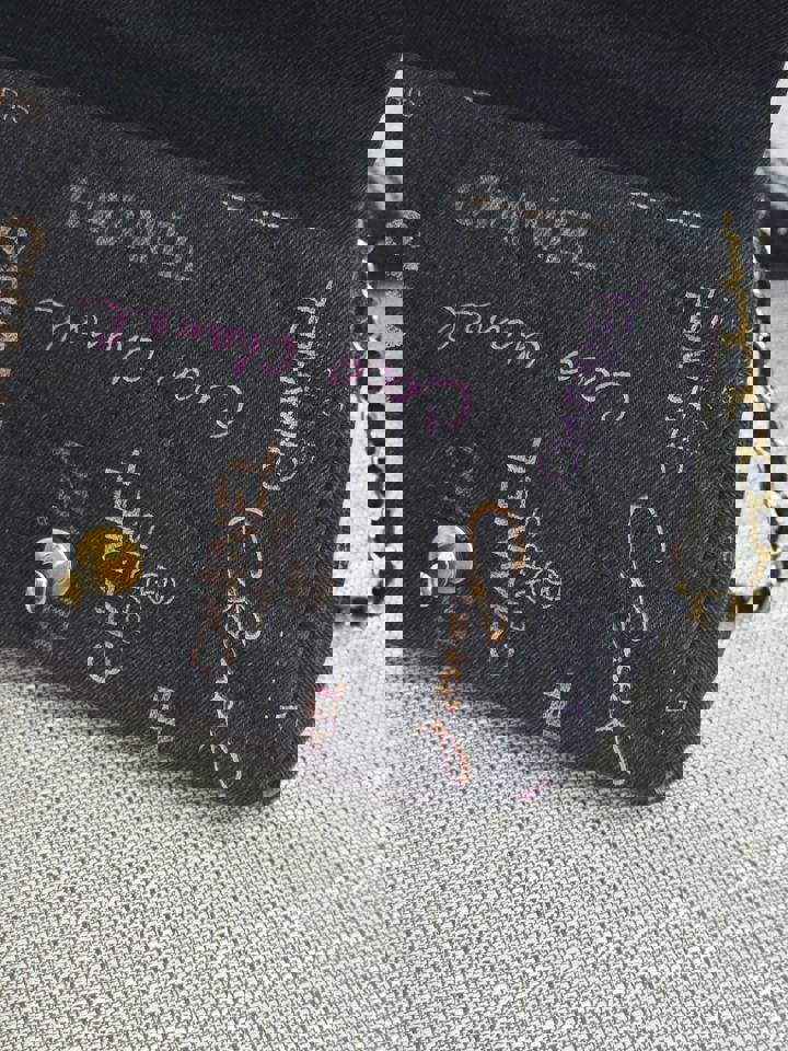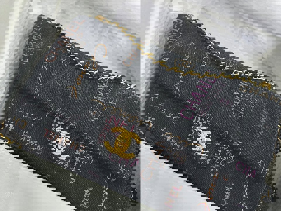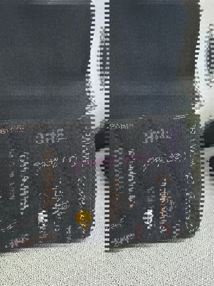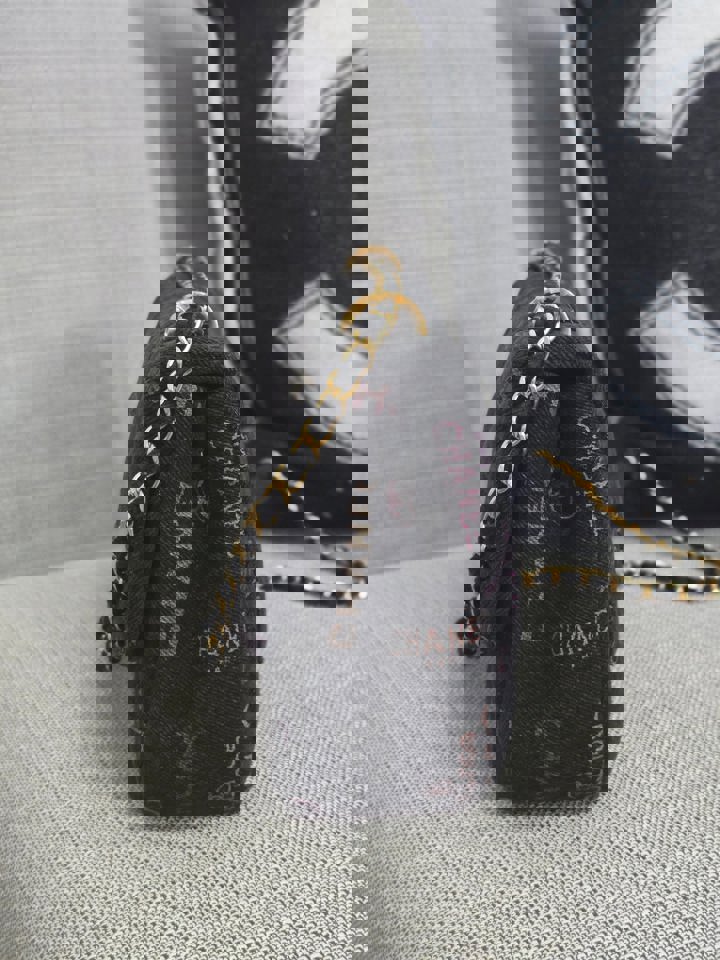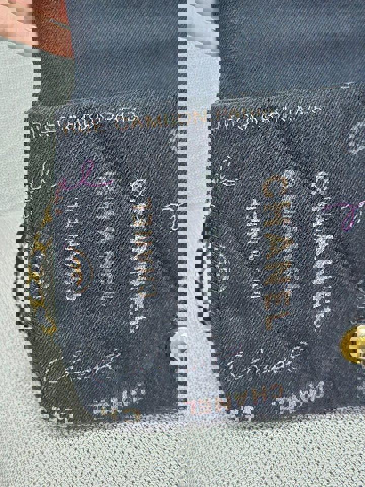 Chanel 22P collection Black Denim Mood Flap Bag with Aged GHW size Medium (25 cms)