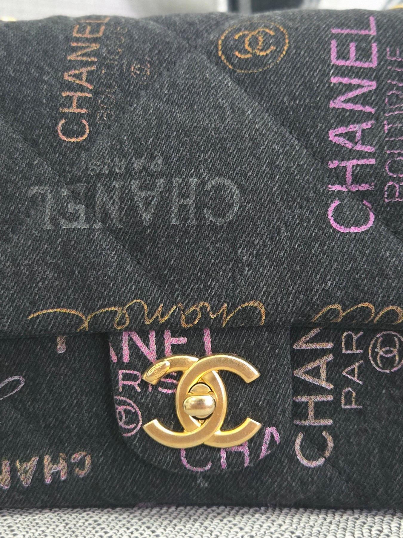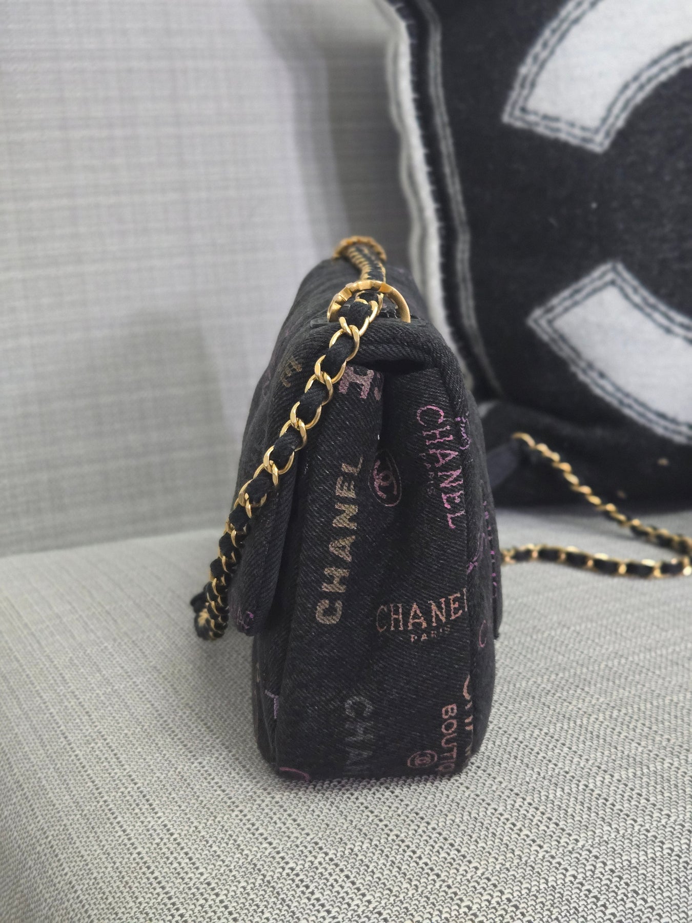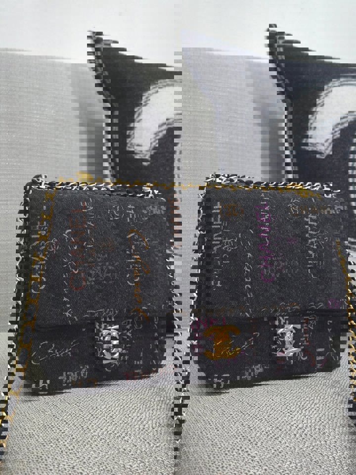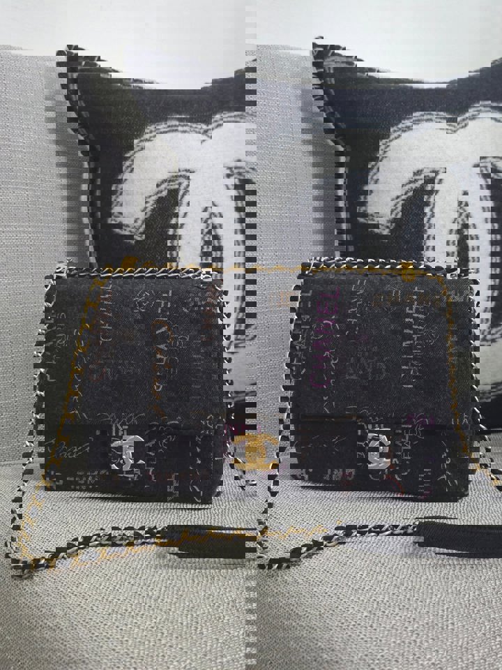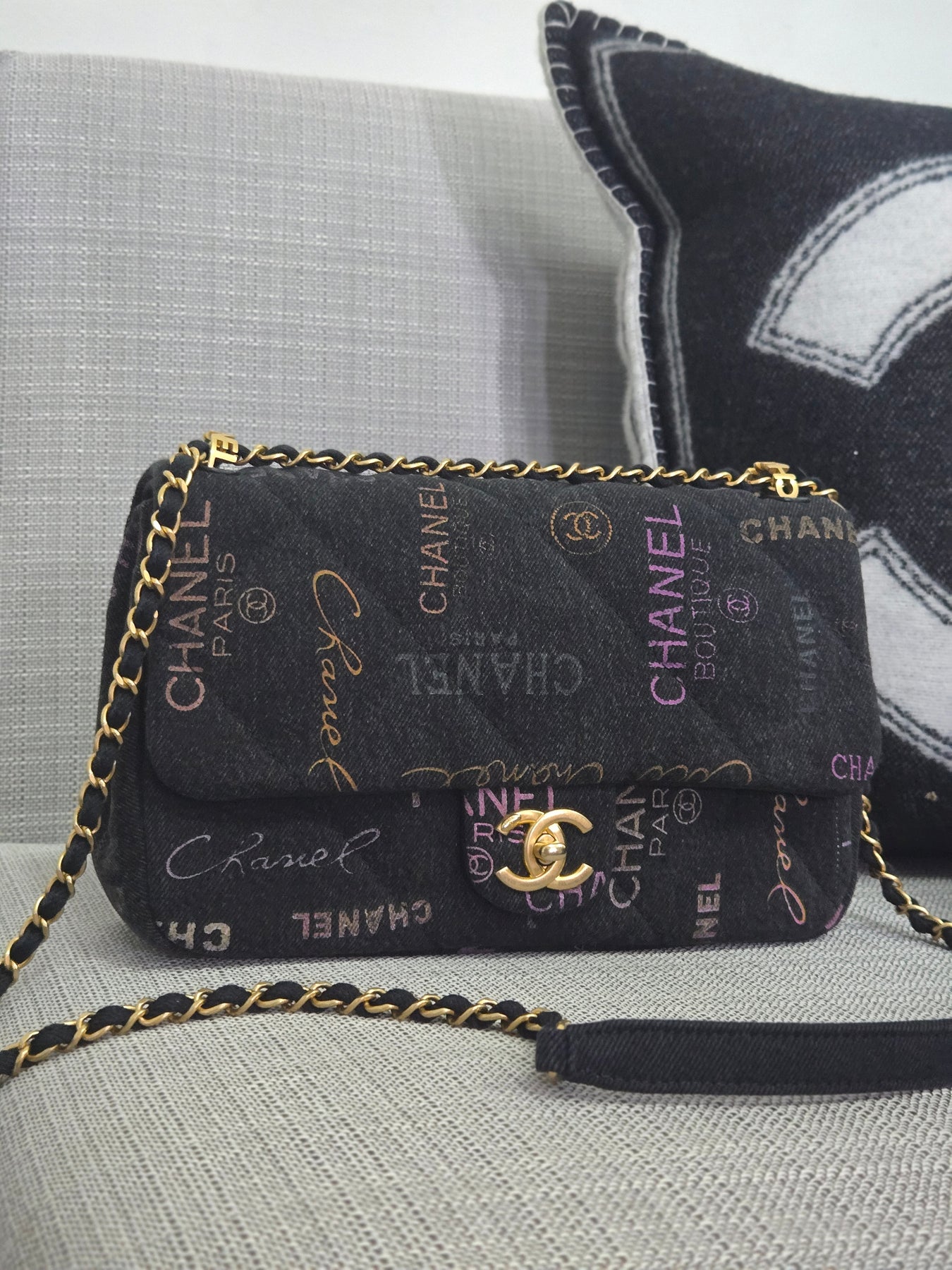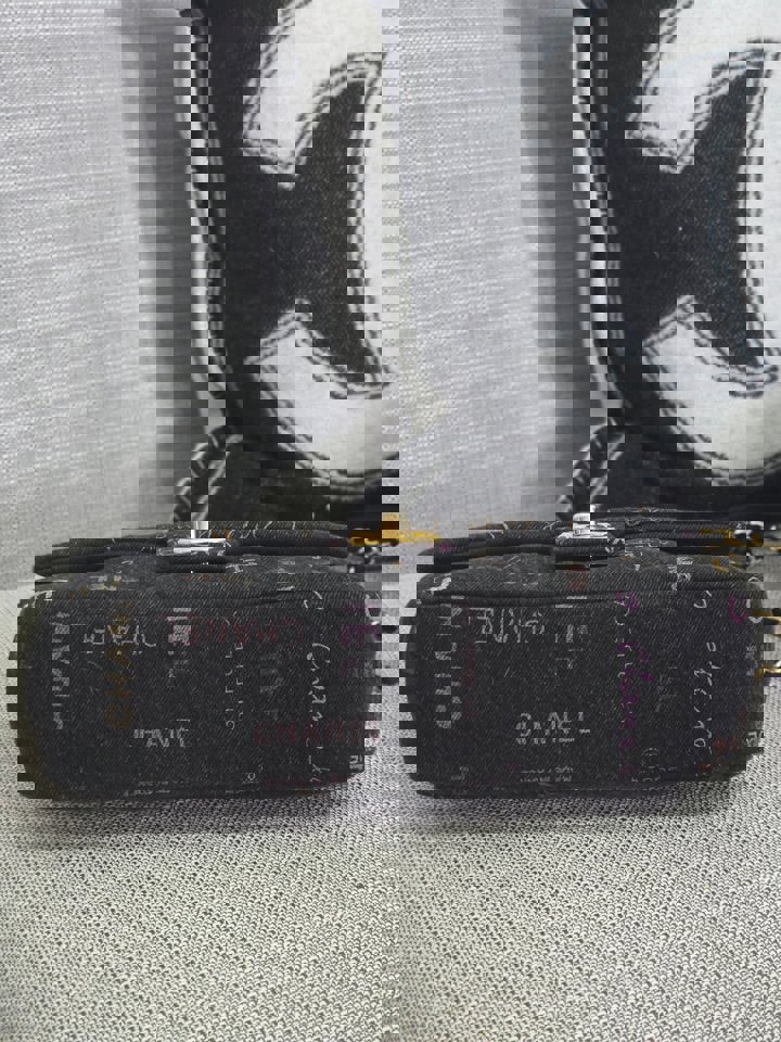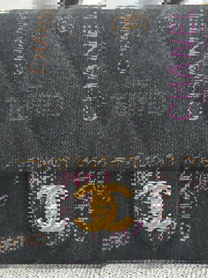 Chanel 22P collection Black Denim Mood Flap Bag with Aged GHW size Medium (25 cms)