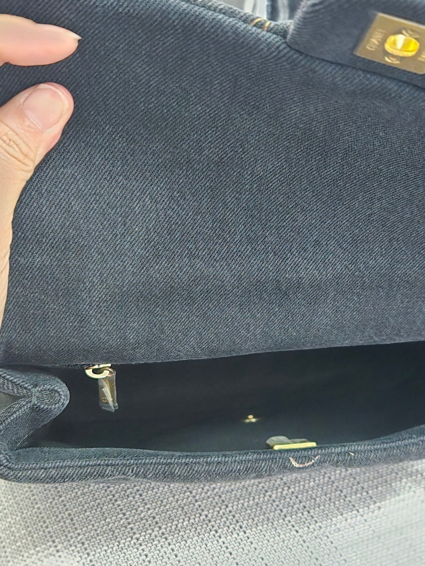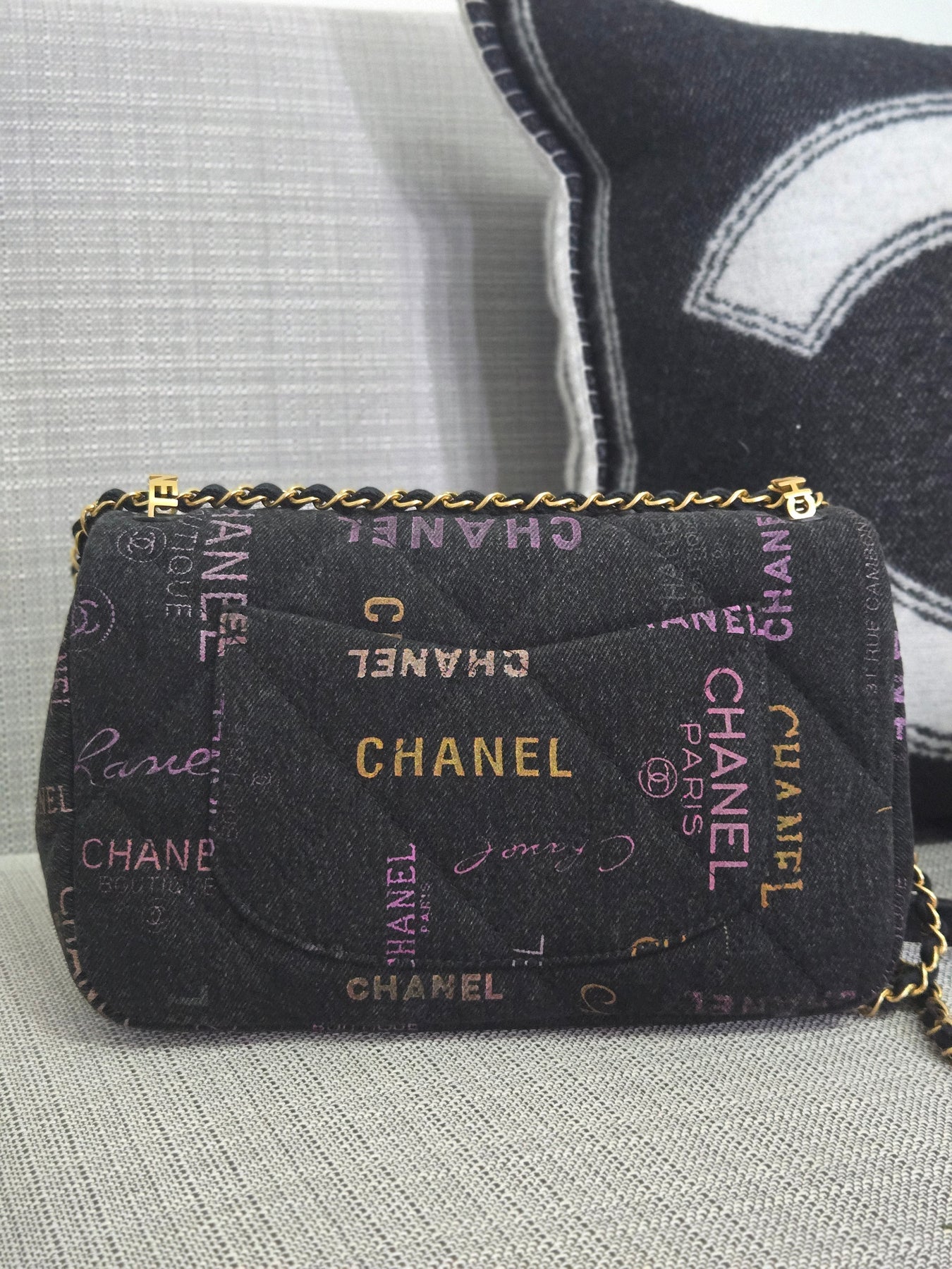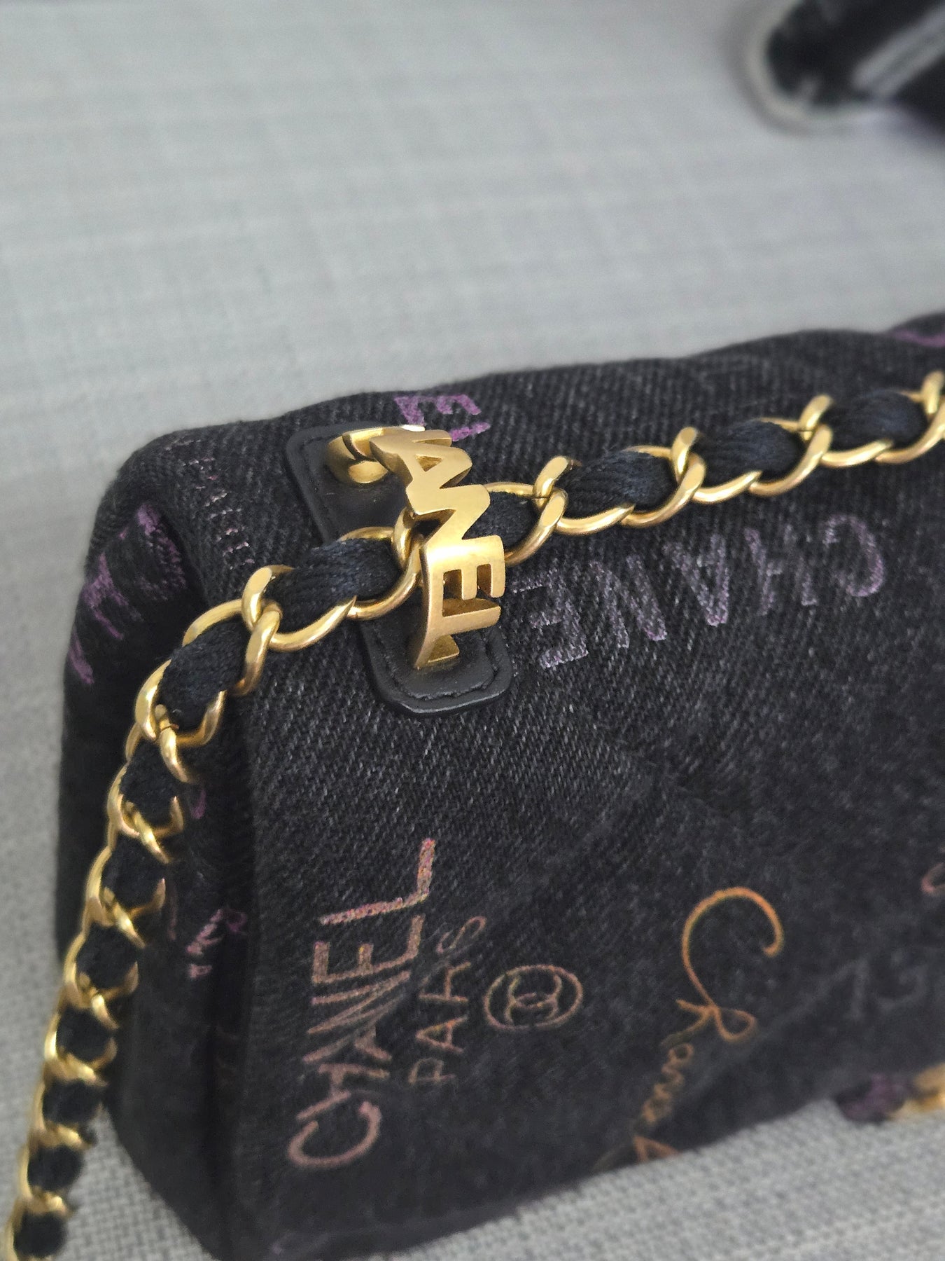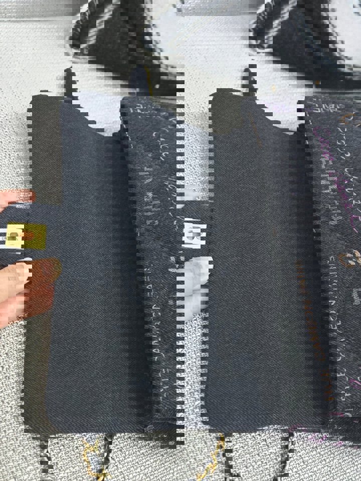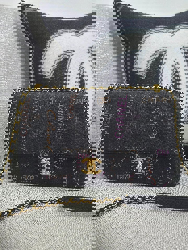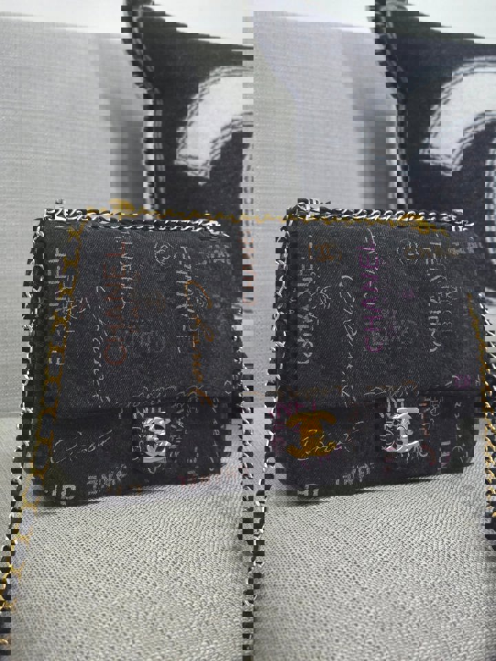 Chanel 22P collection Black Denim Mood Flap Bag with Aged GHW size Medium (25 cms)