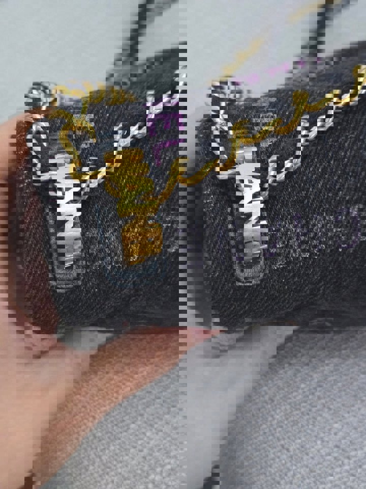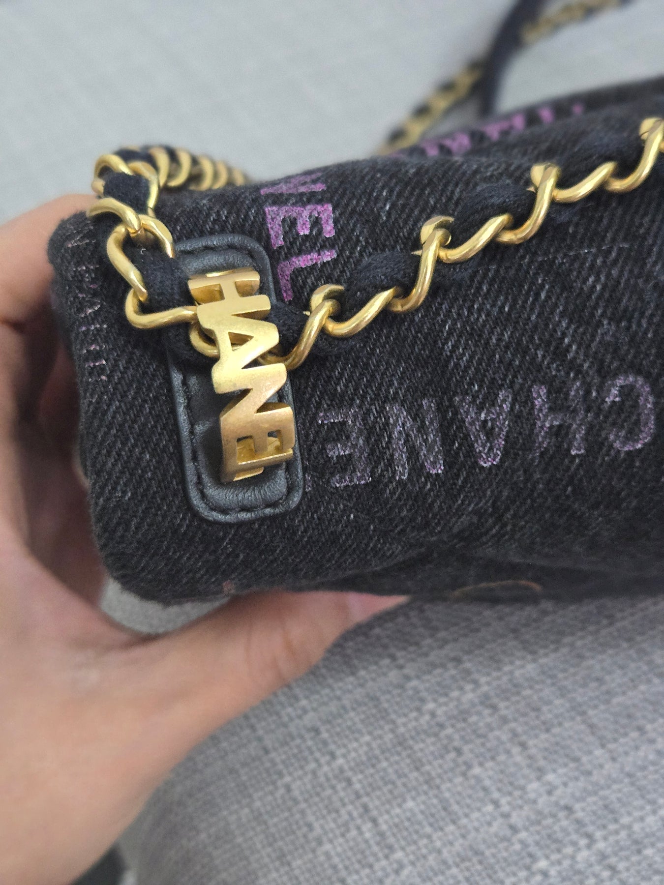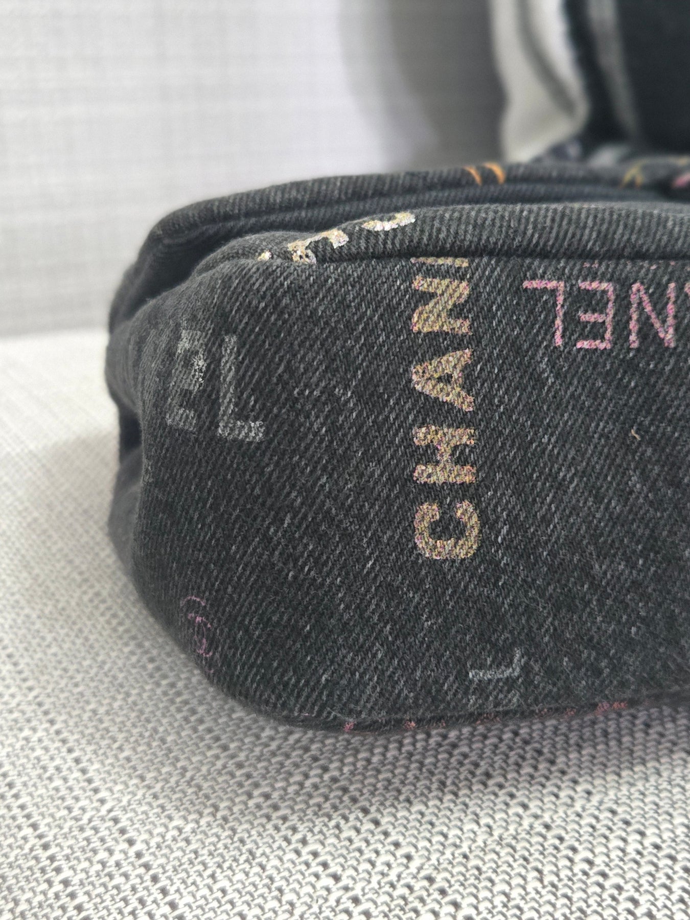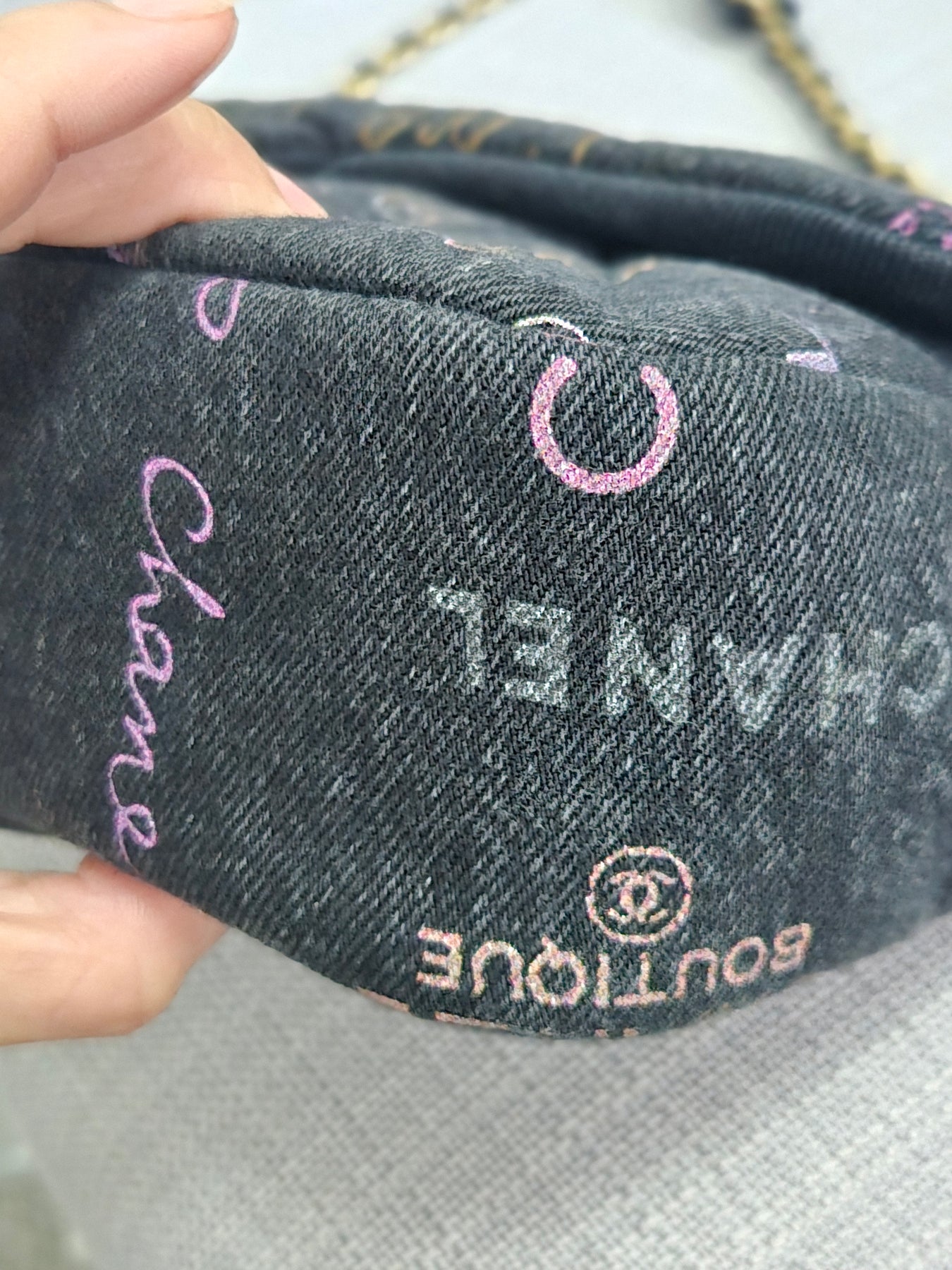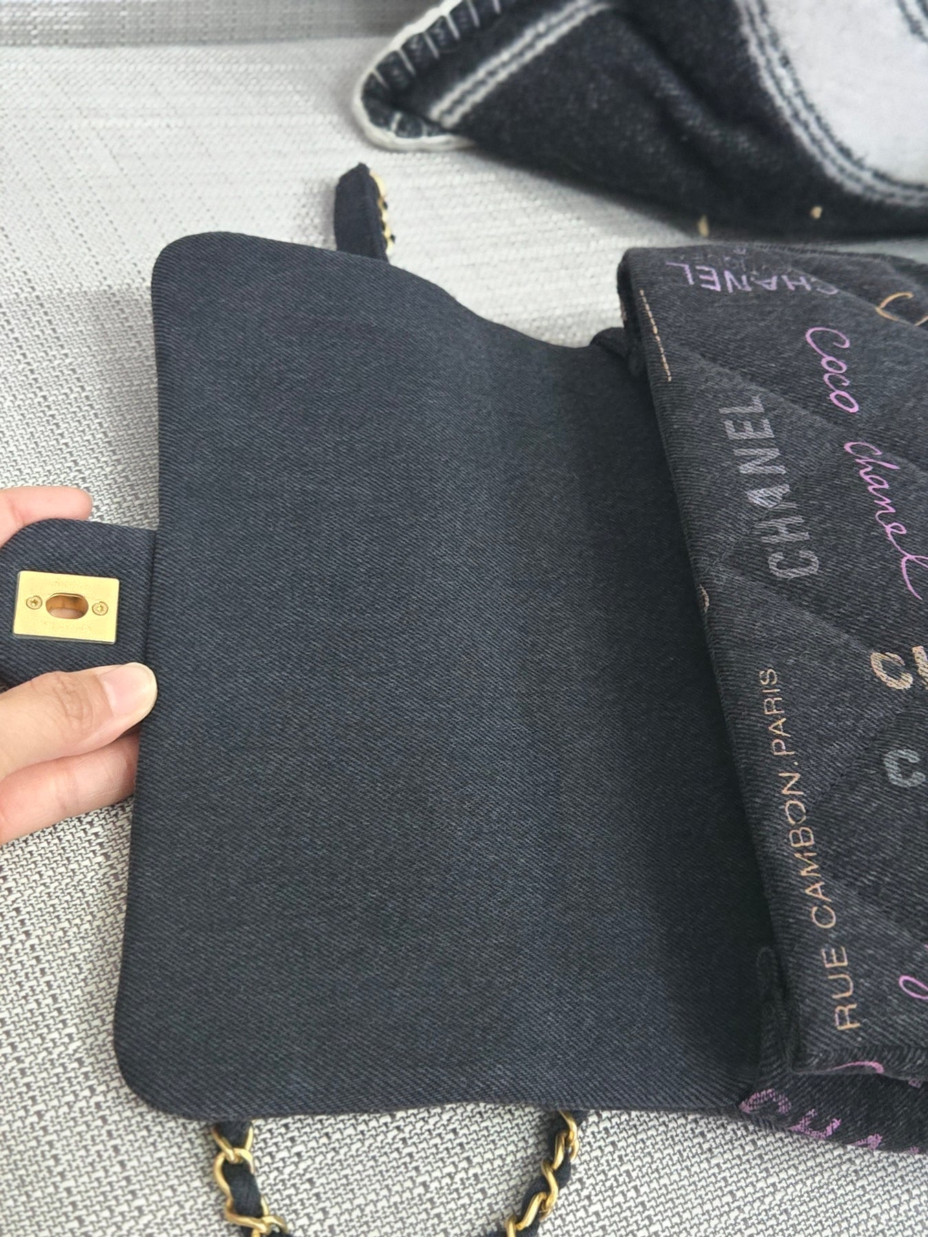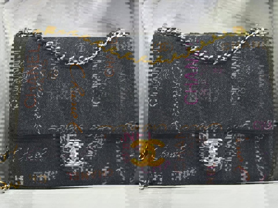 Chanel 22P collection Black Denim Mood Flap Bag with Aged GHW size Medium (25 cms)
