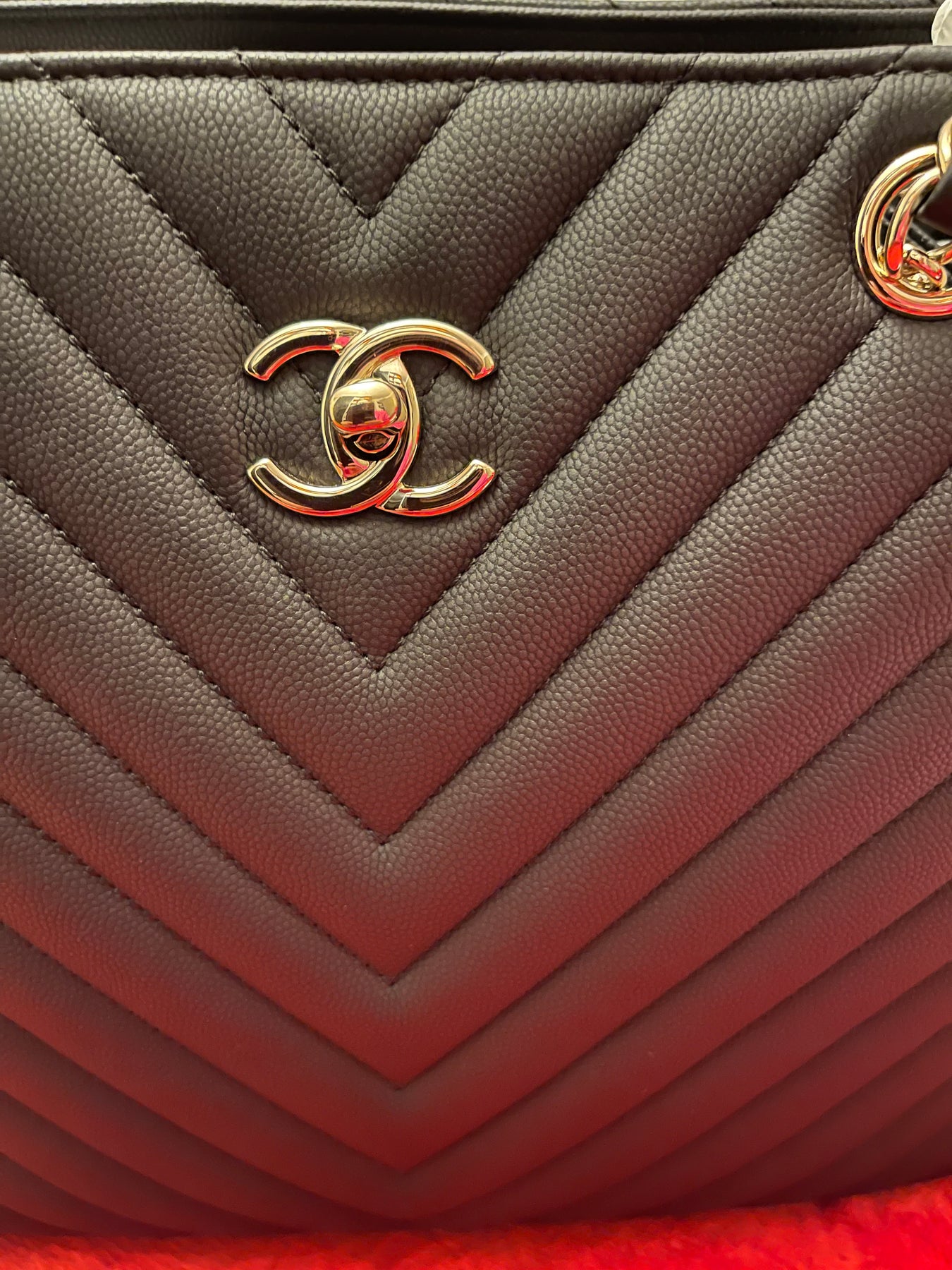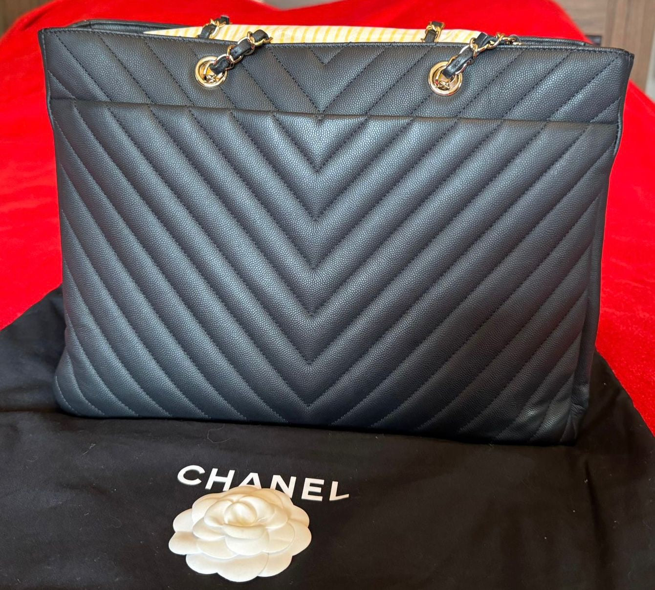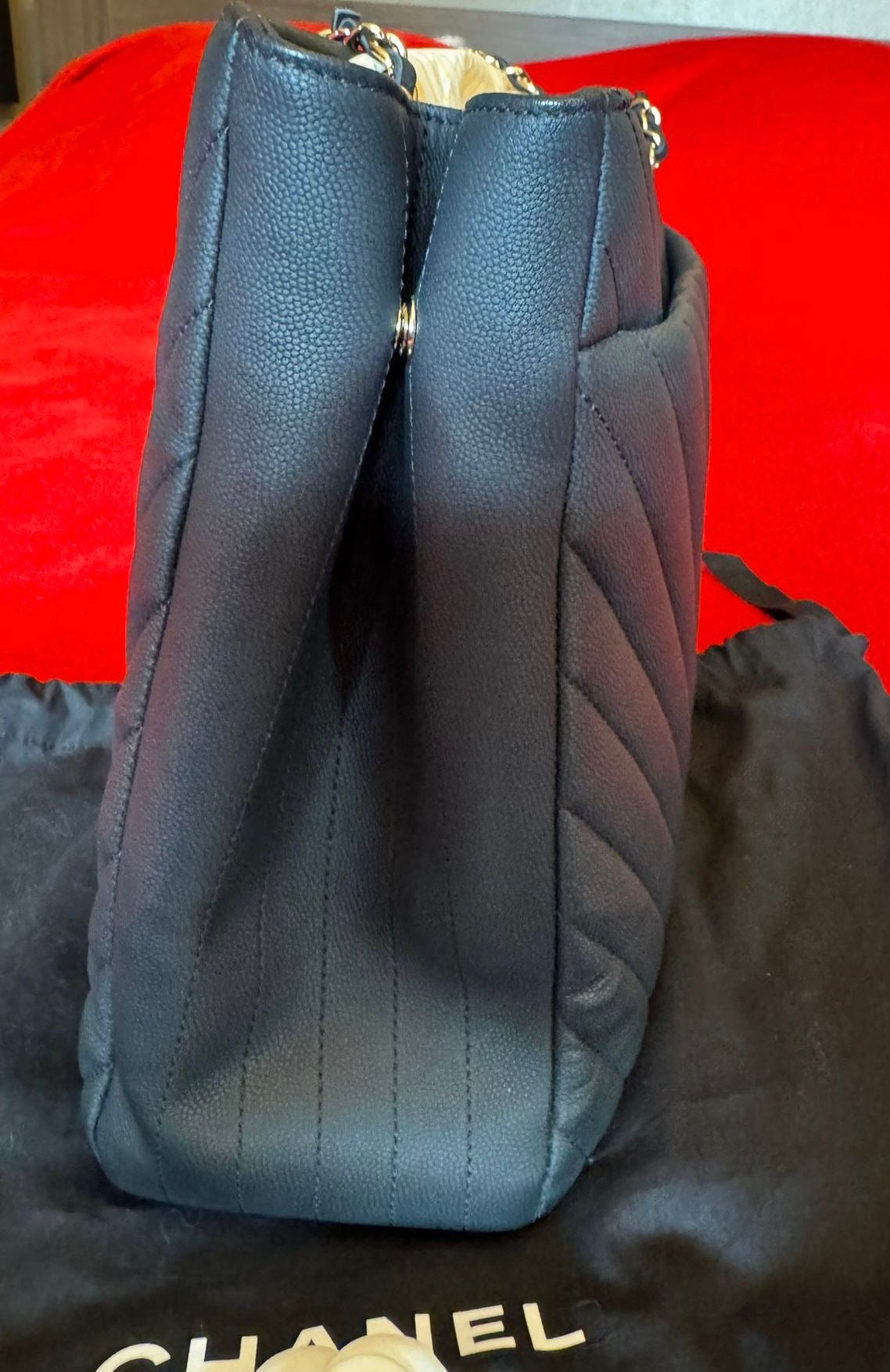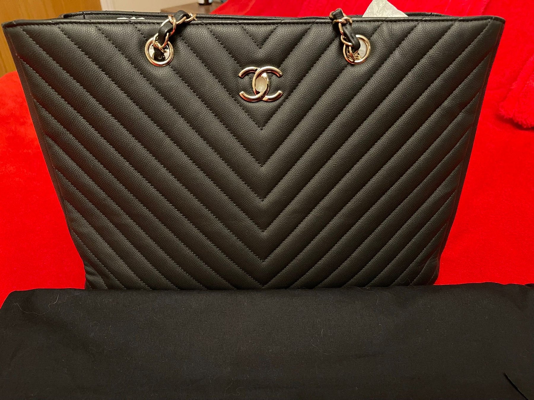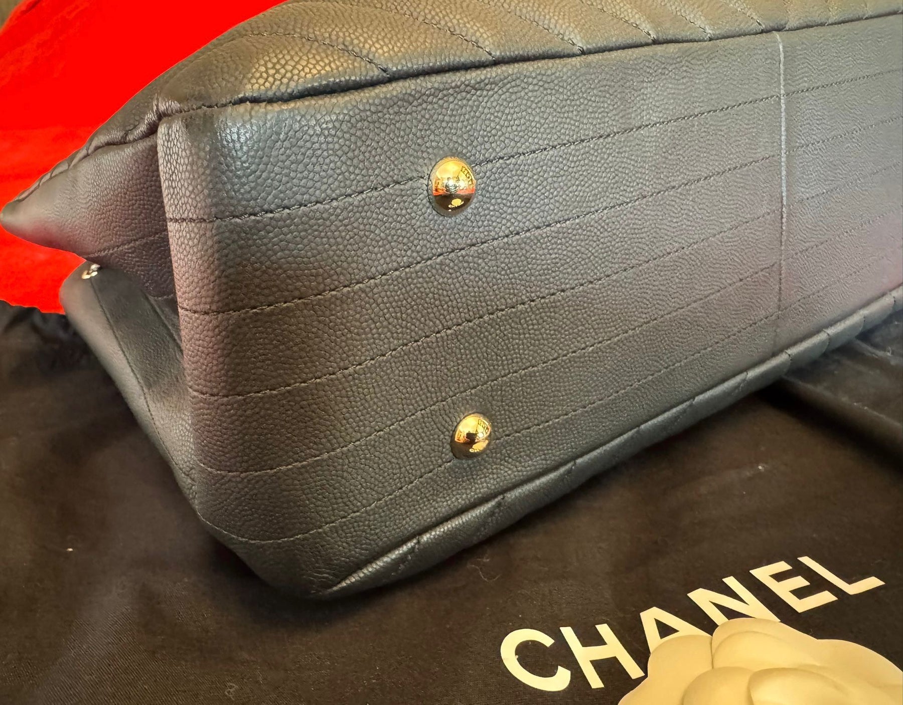 CHANEL Black Caviar LGHW Chevron Timeless Tote Bag