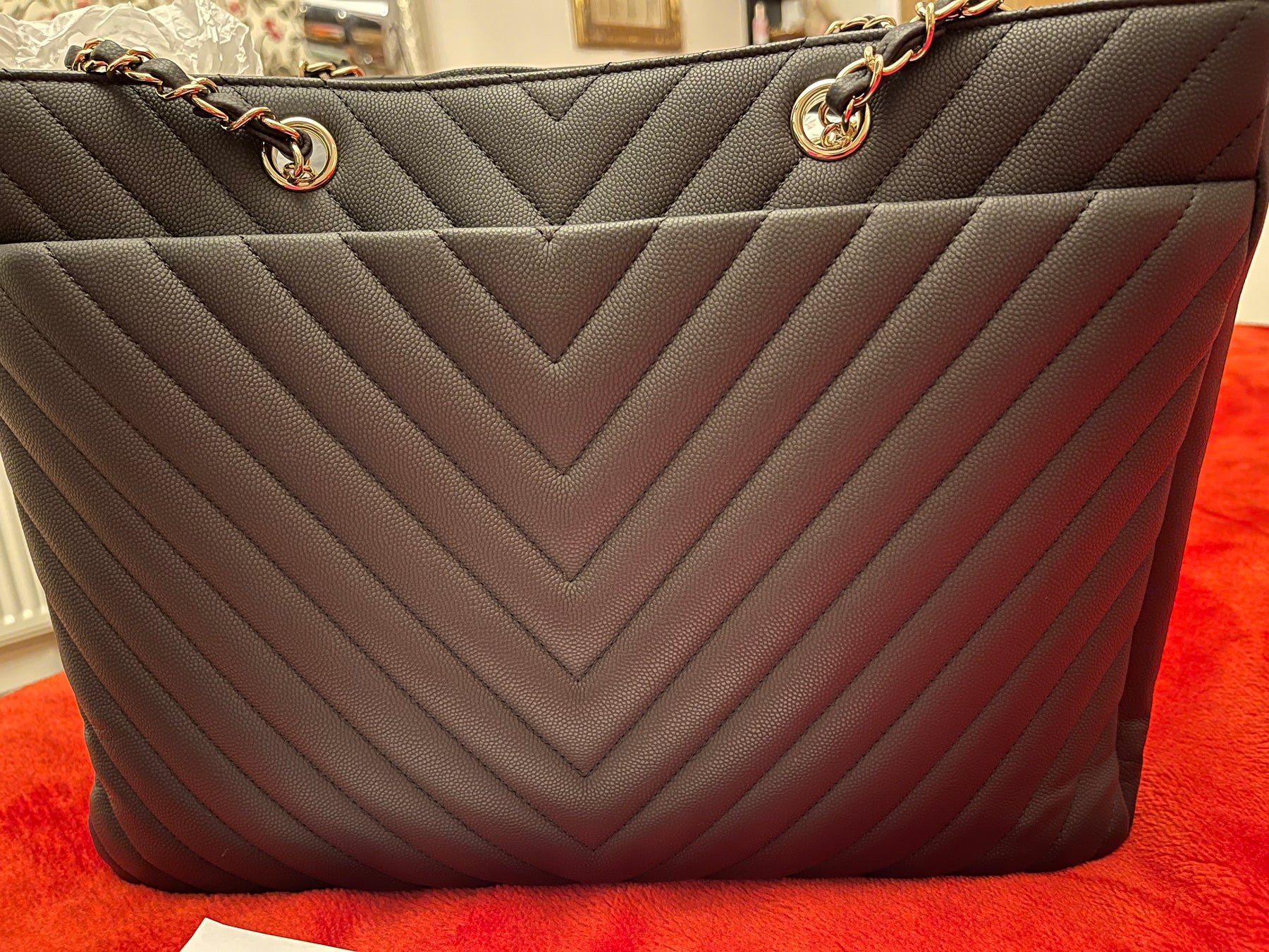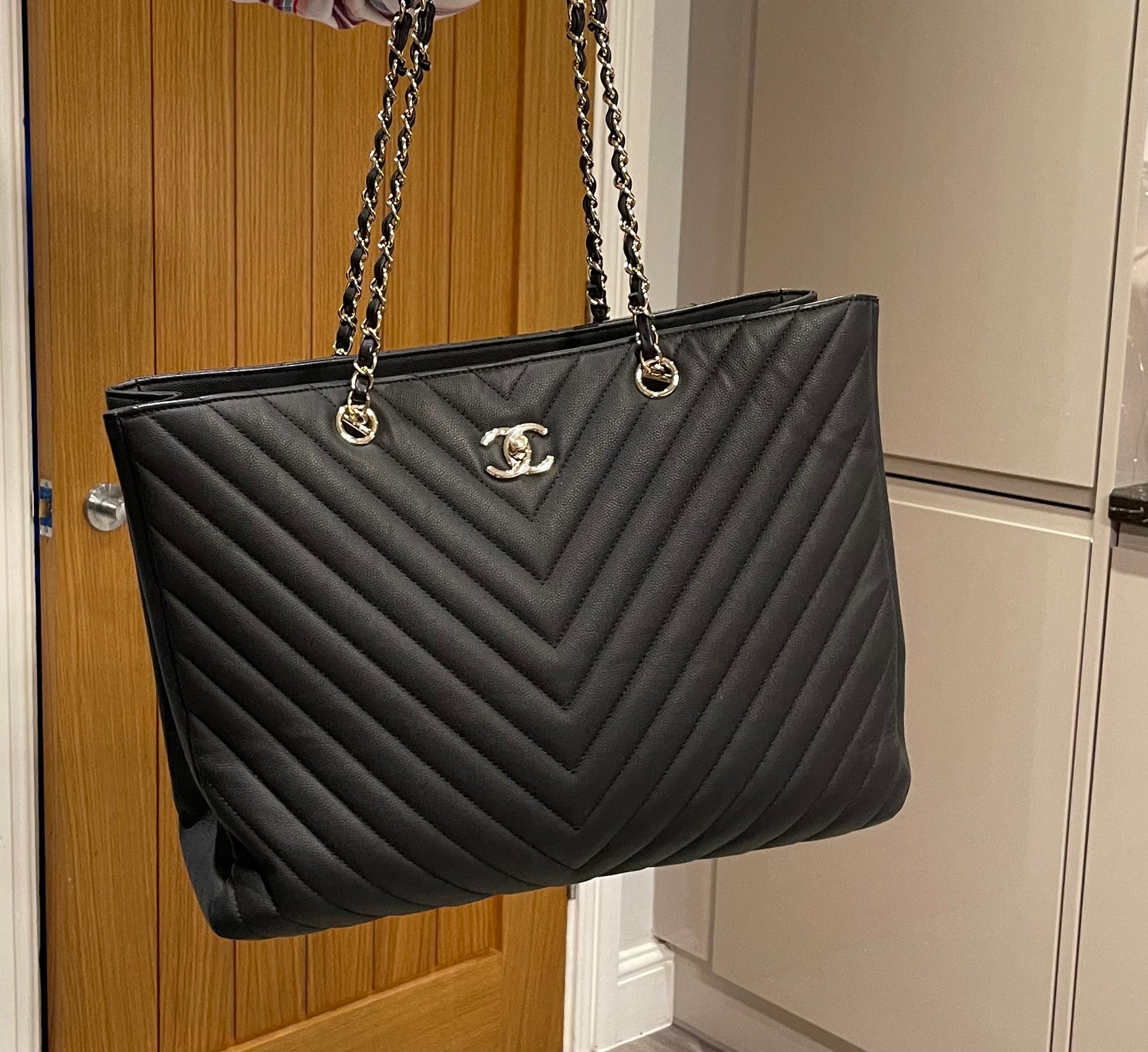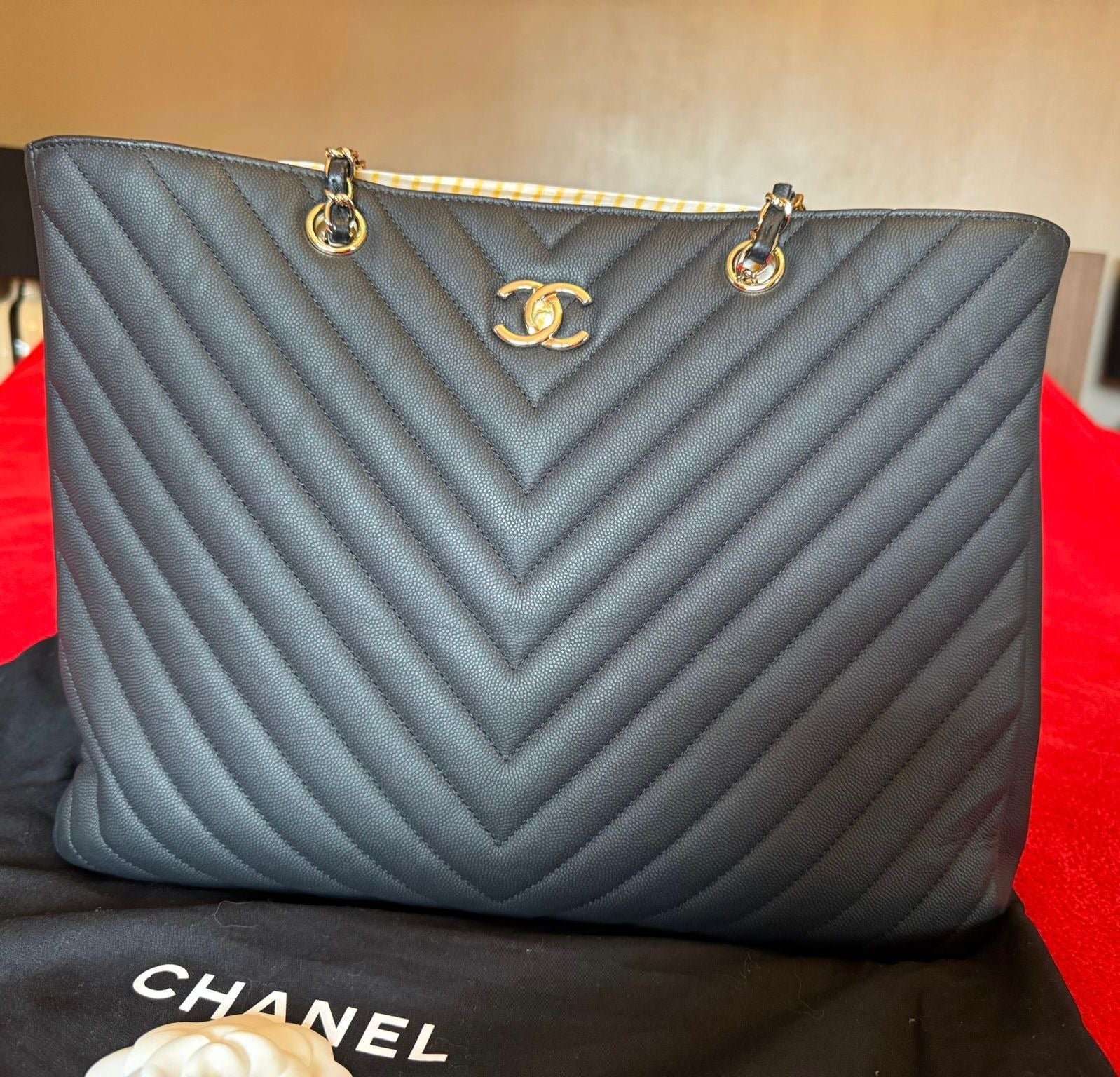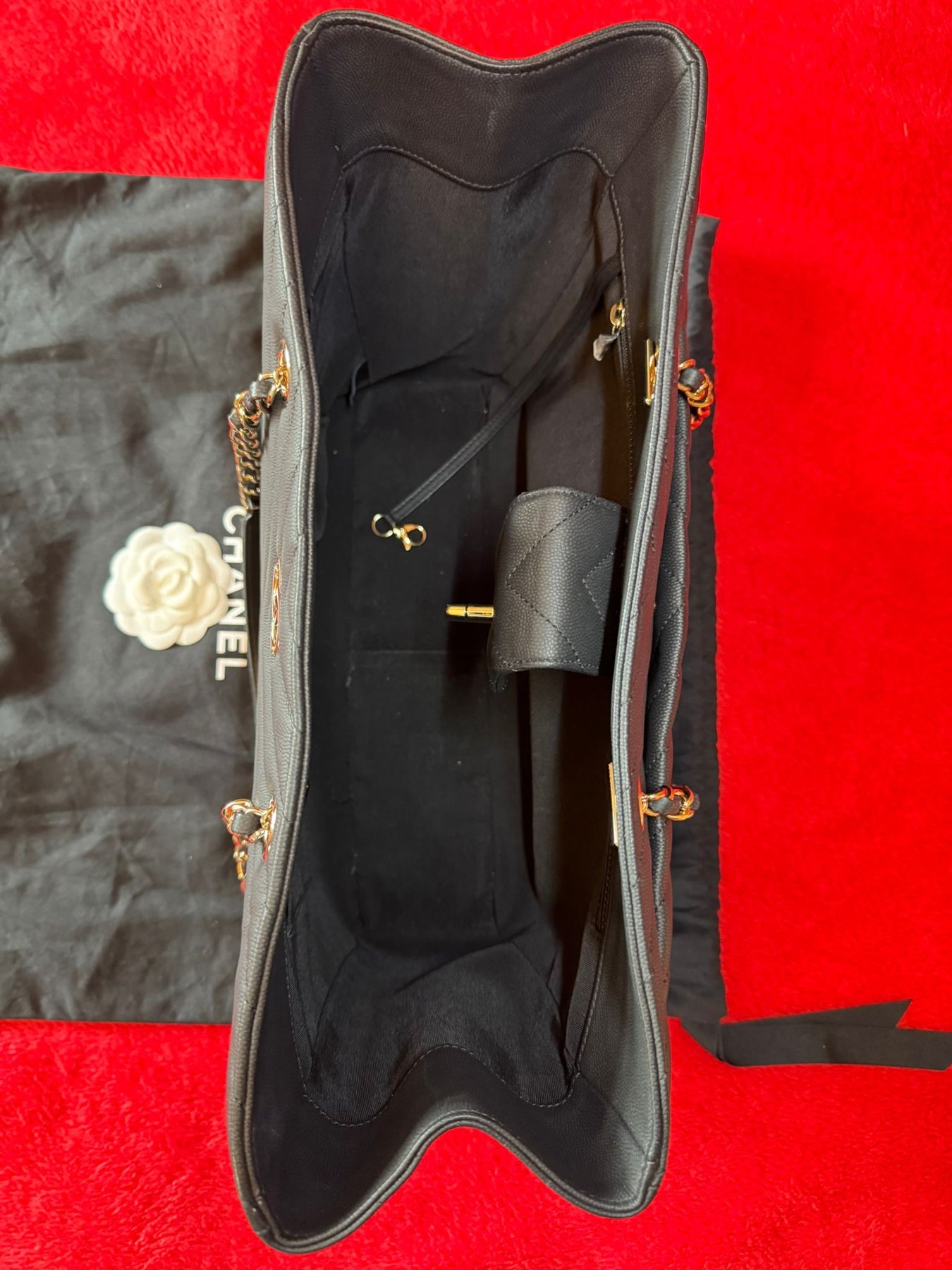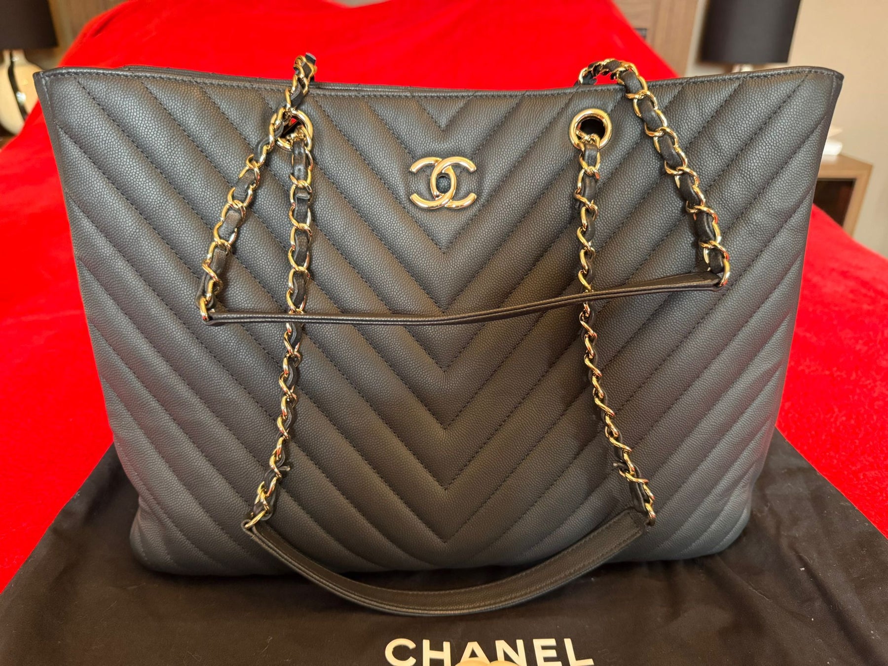 CHANEL Black Caviar LGHW Chevron Timeless Tote Bag