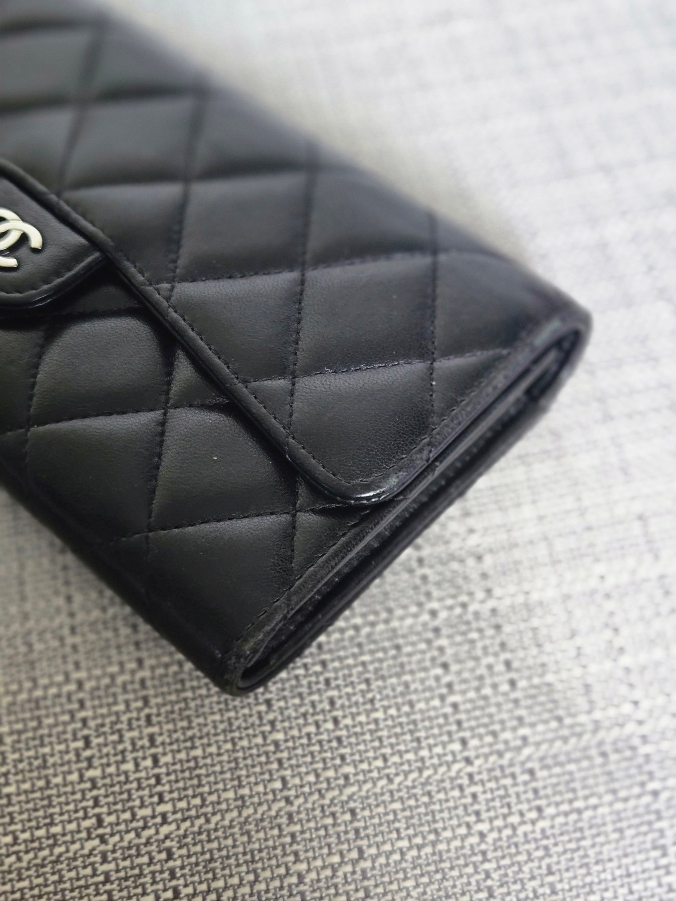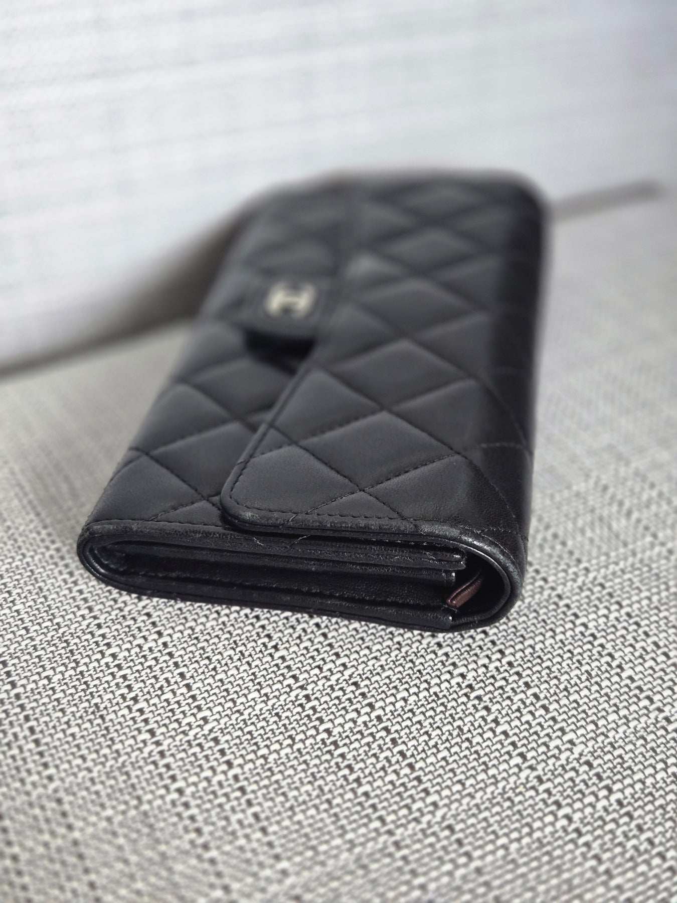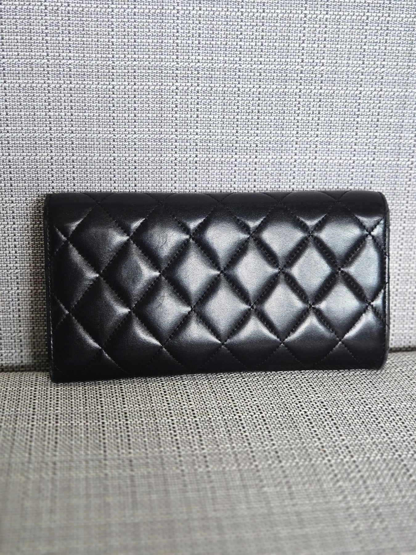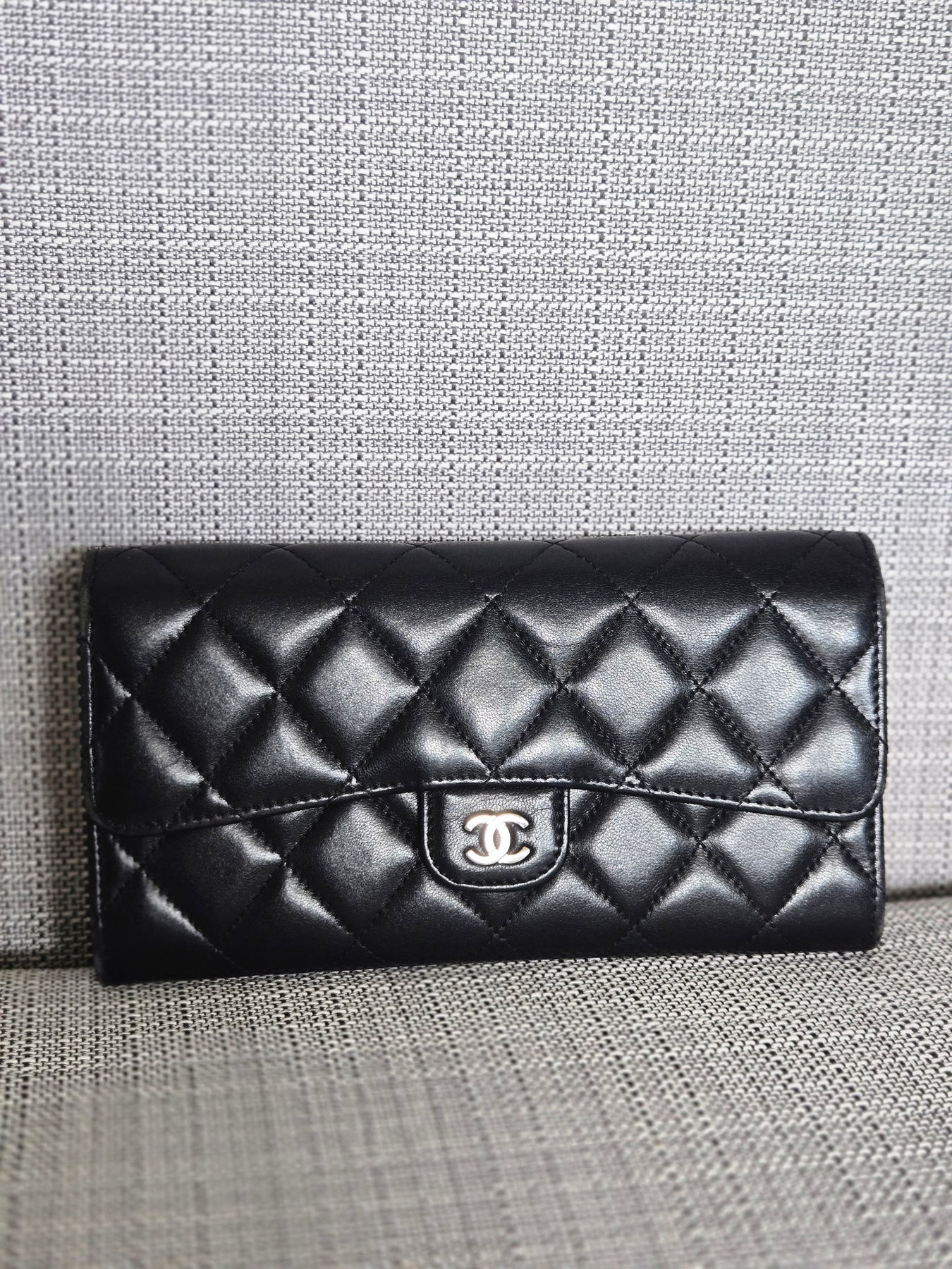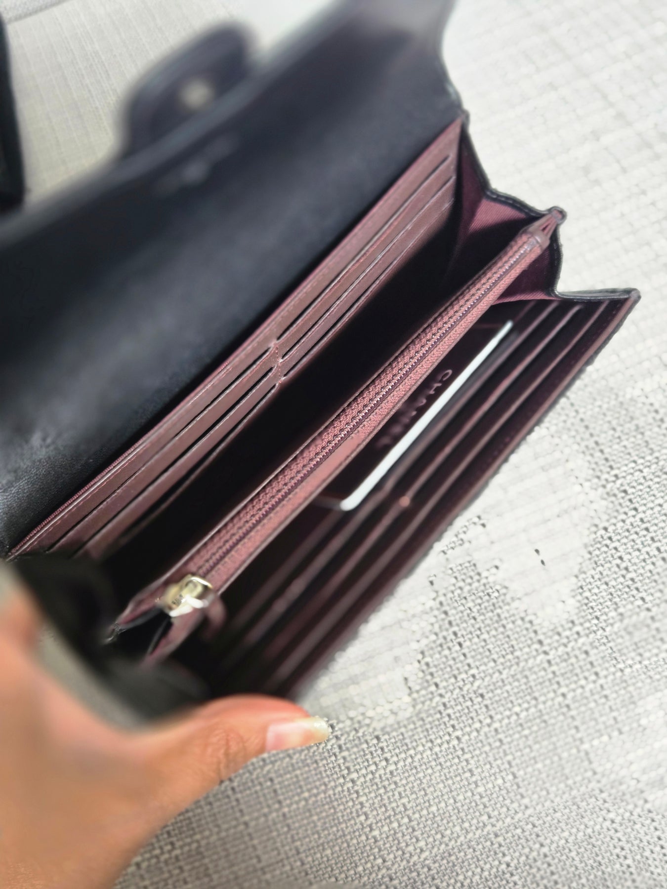 Chanel series 24 Black Lambskin SHW Full size Sarah Wallet